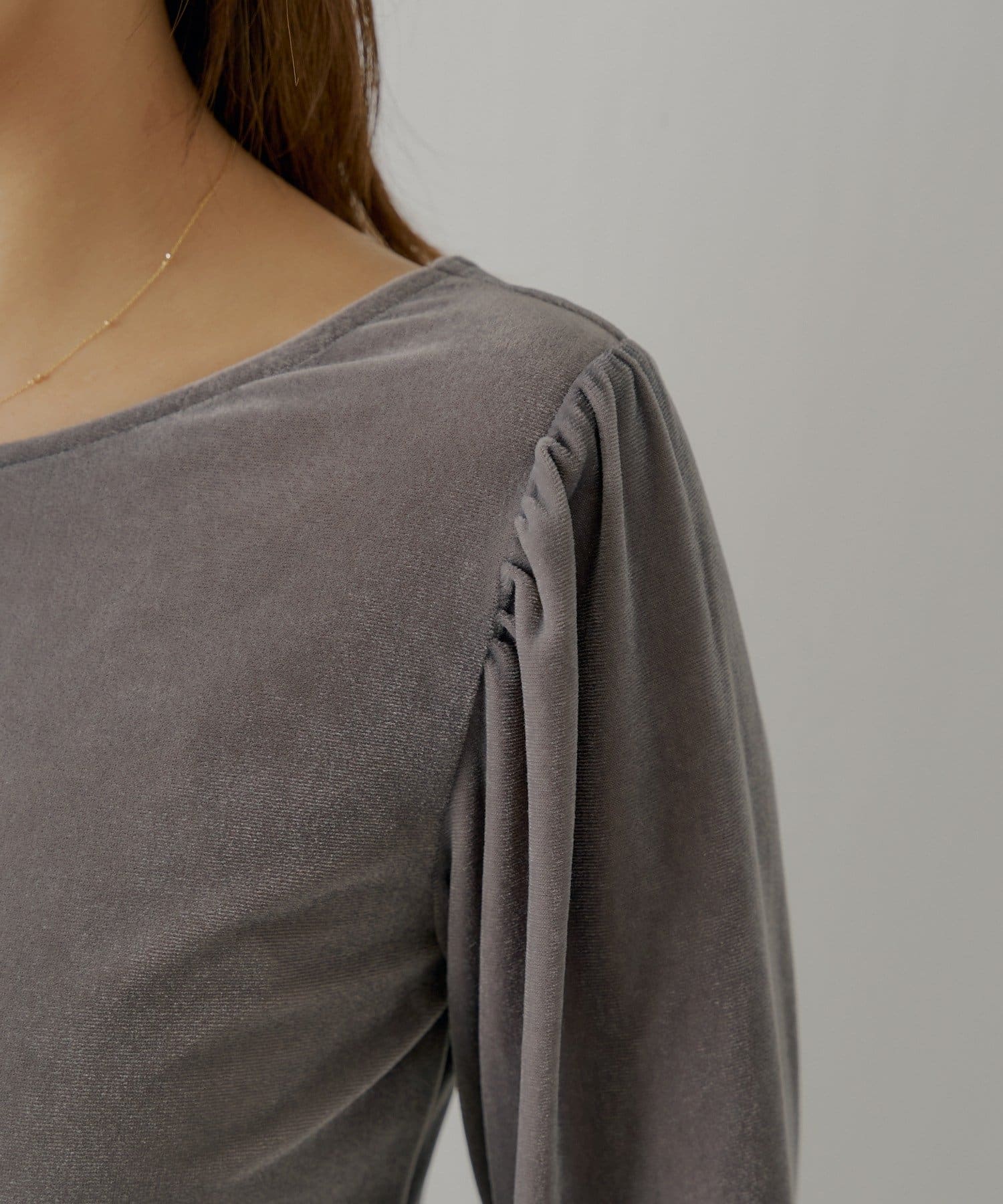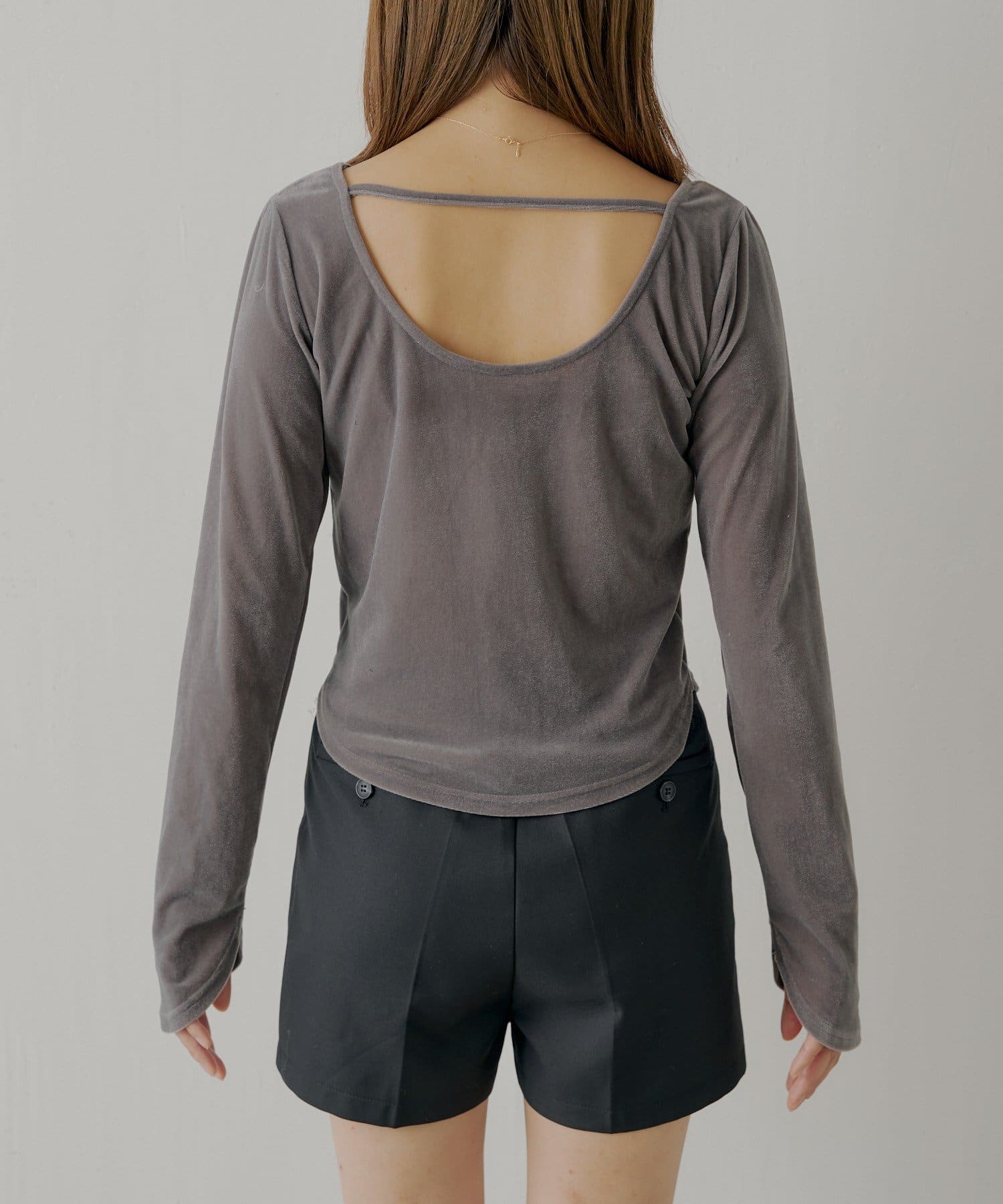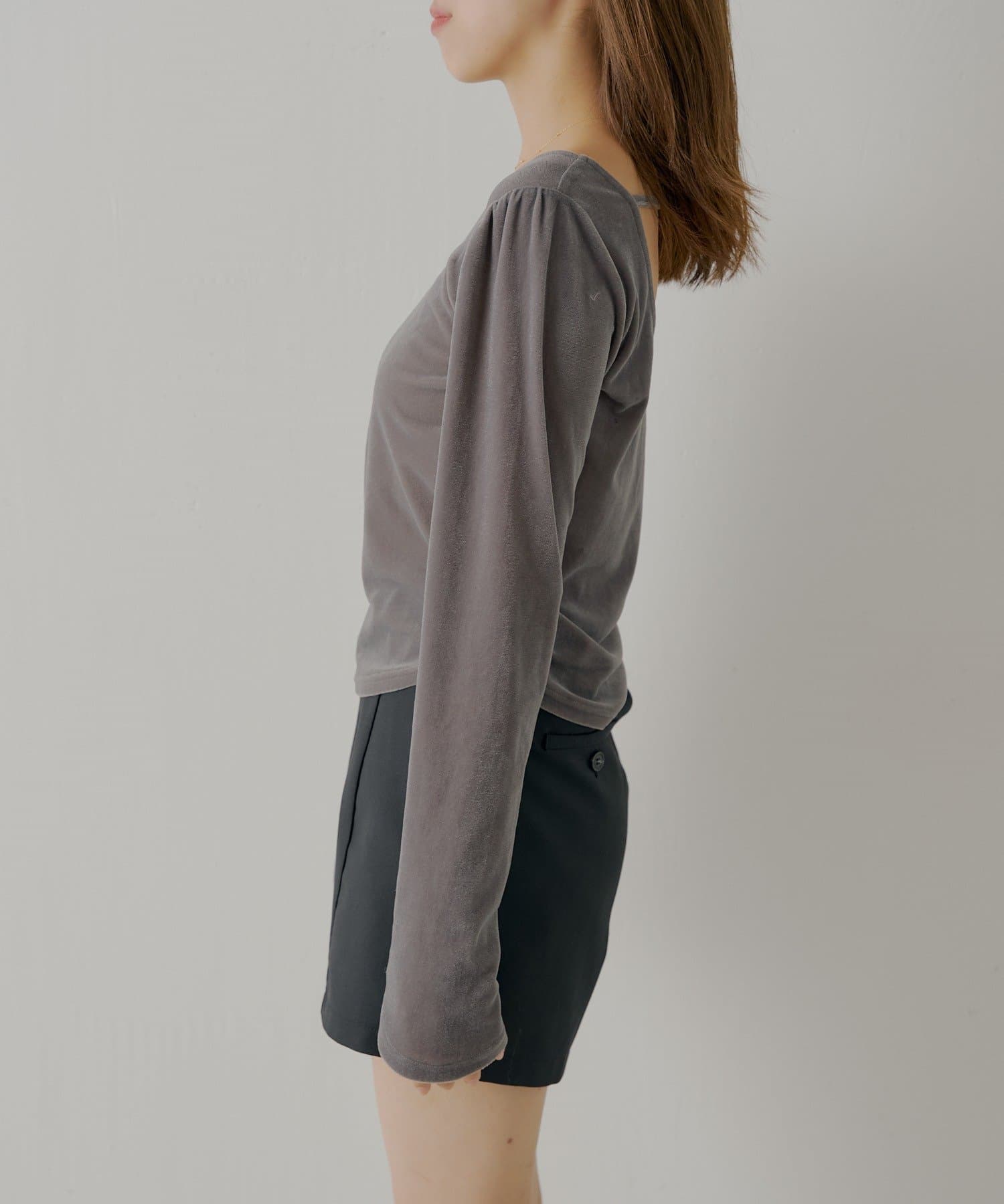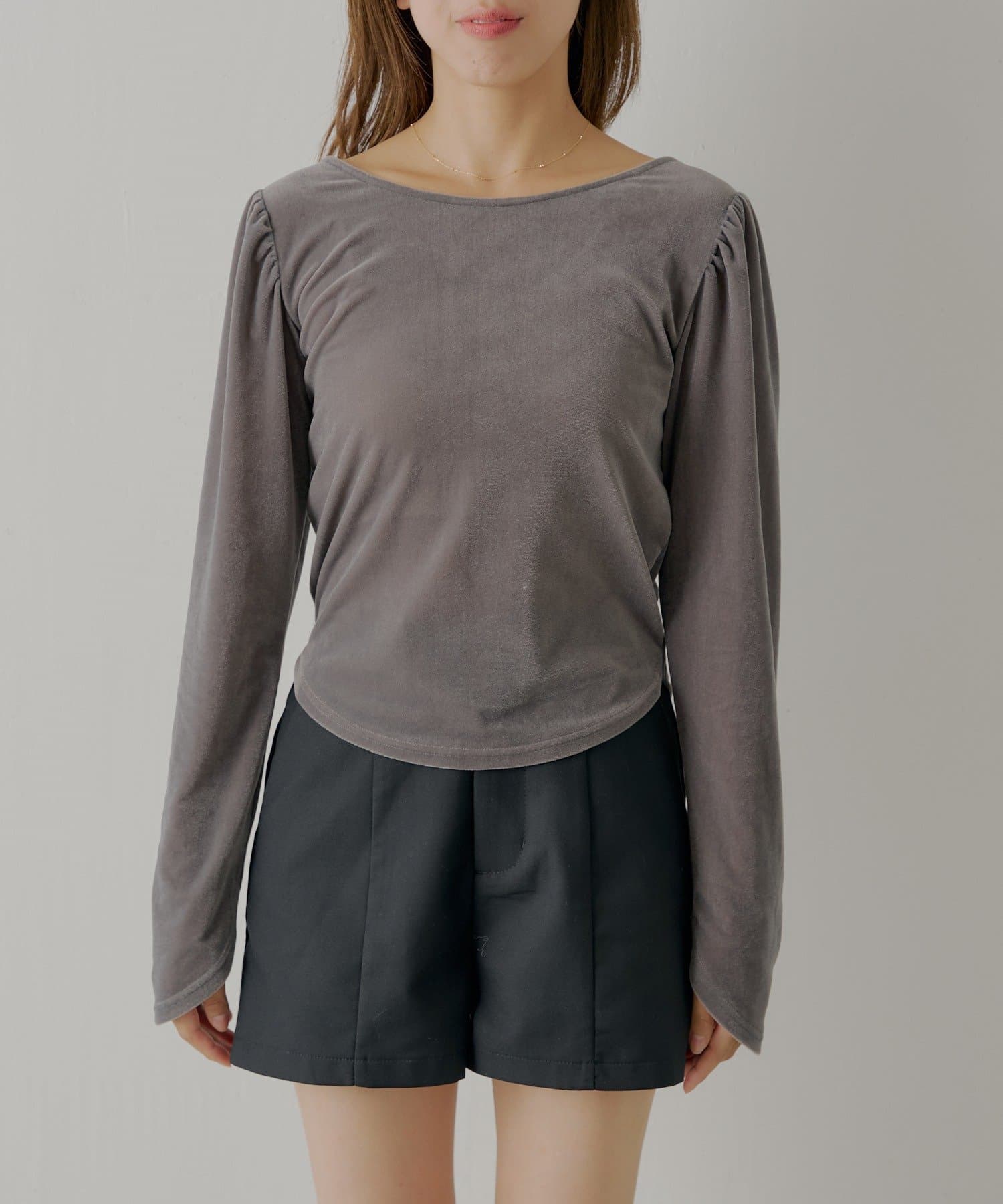 ・なめらかで光沢のあるベロア素材は、カジュアルながらも上品な印象に。