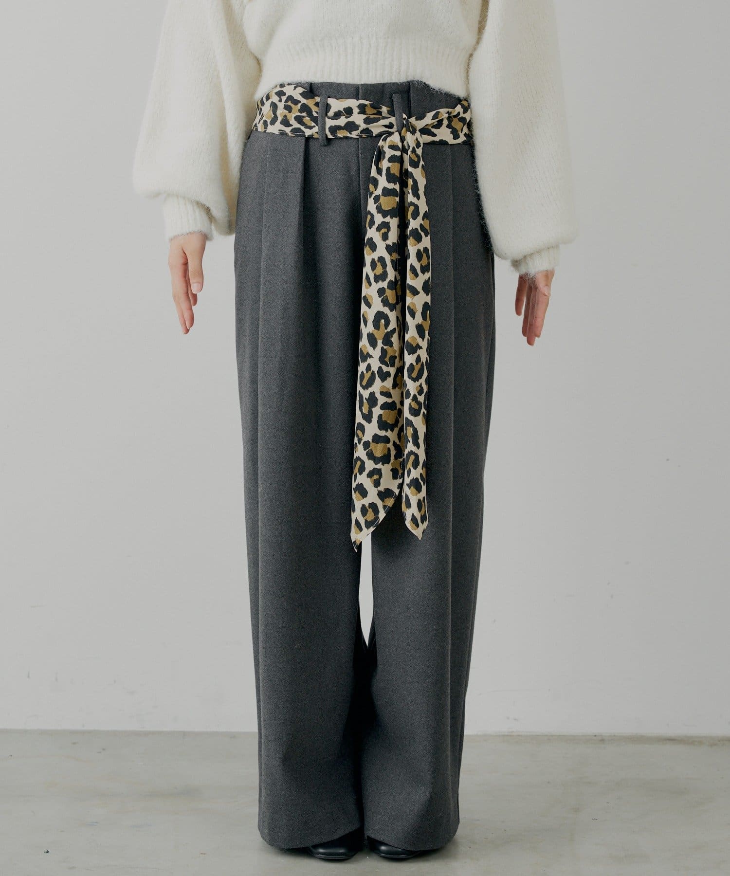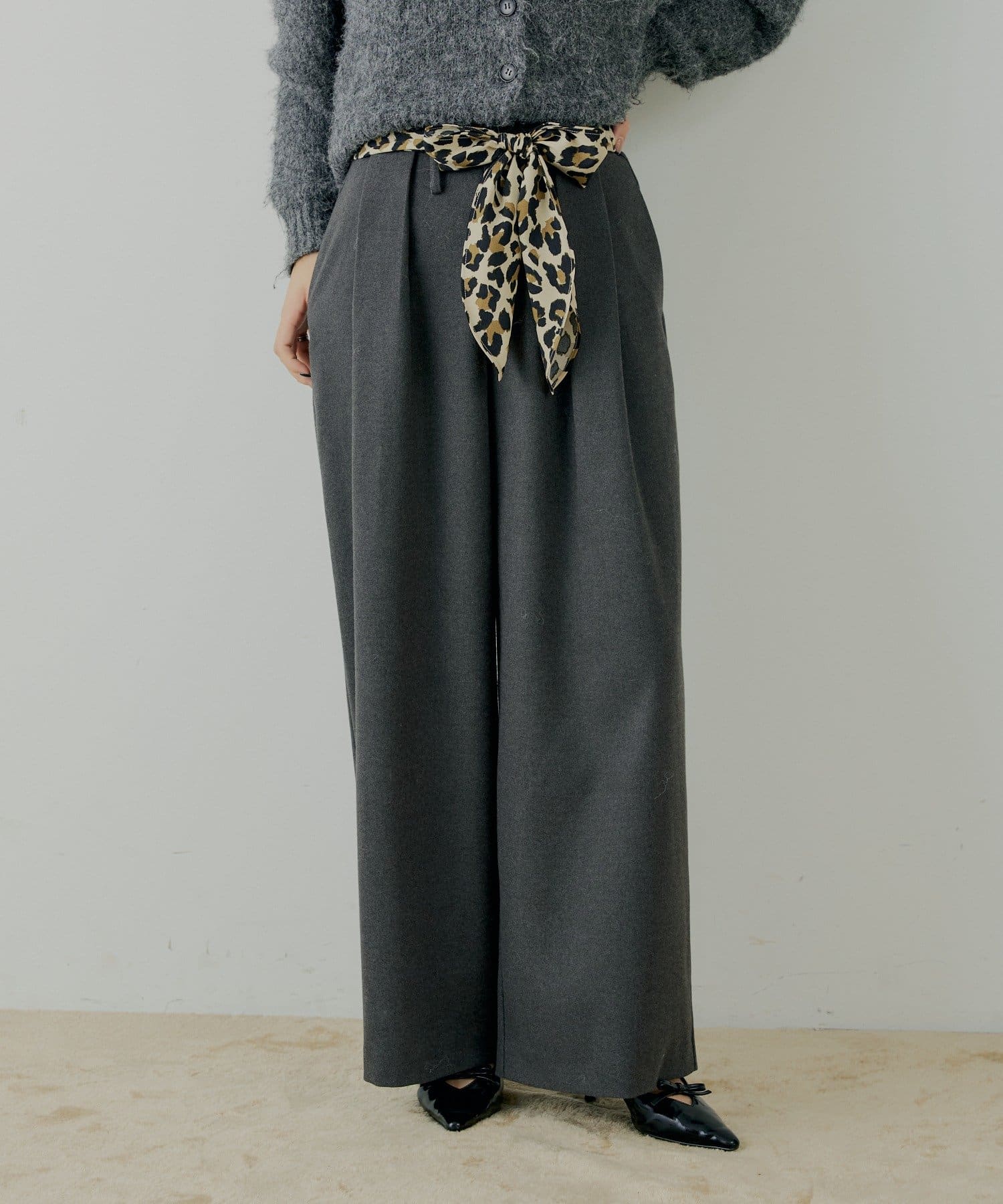 ・スカーフベルトがセットになったダブルタックウールスラックス。