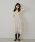 繊細なチュールを贅沢に使用した、ドッキングデザインのロングワンピース登場!