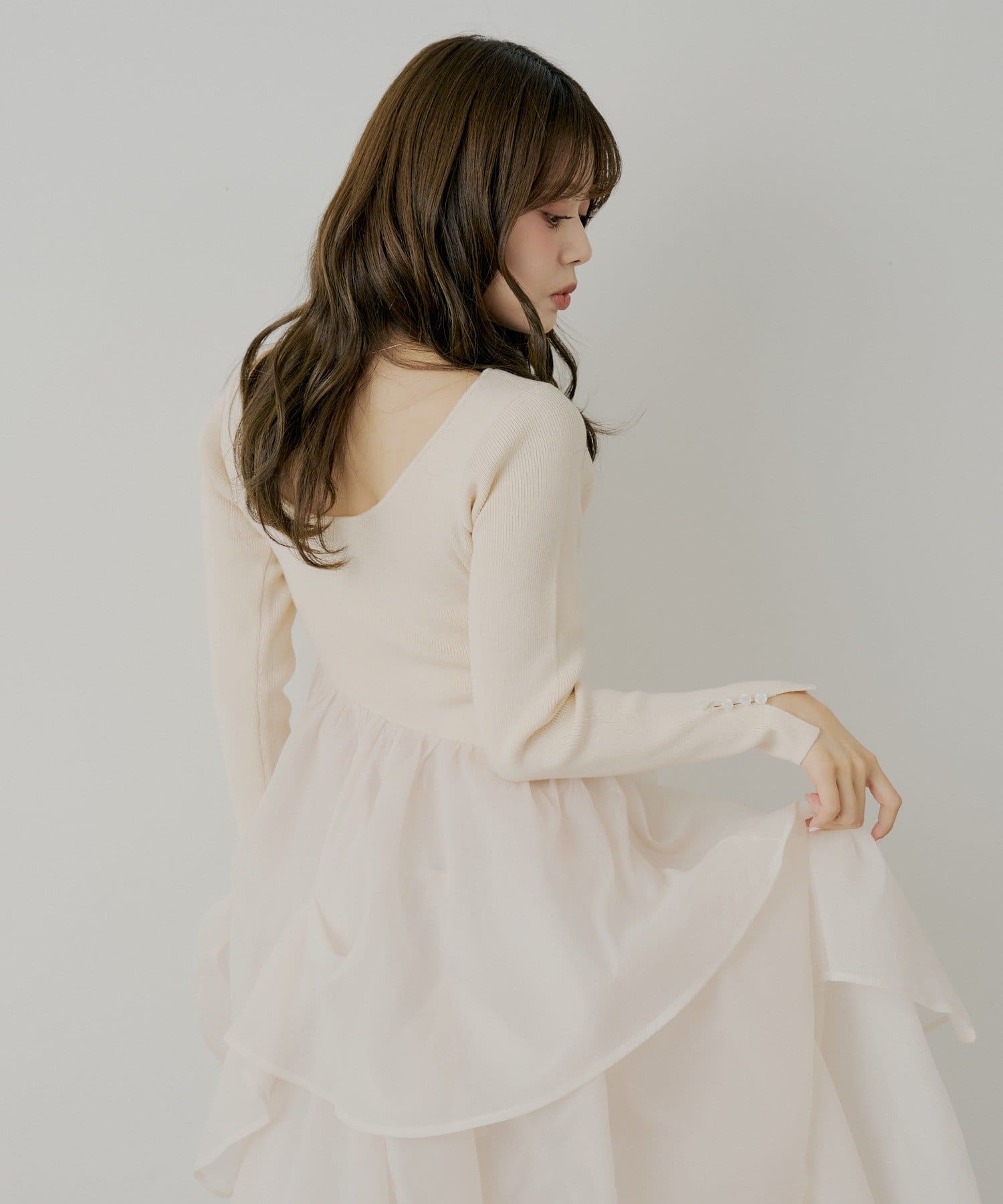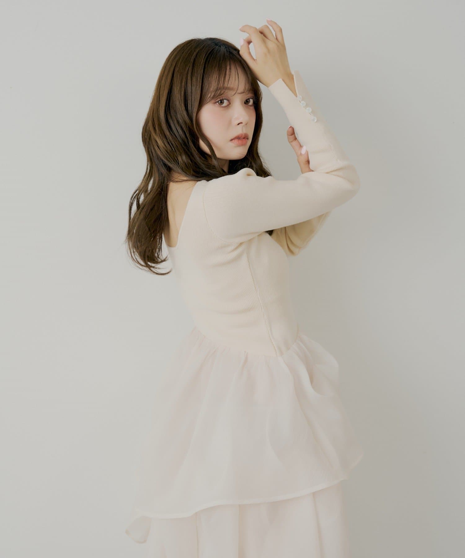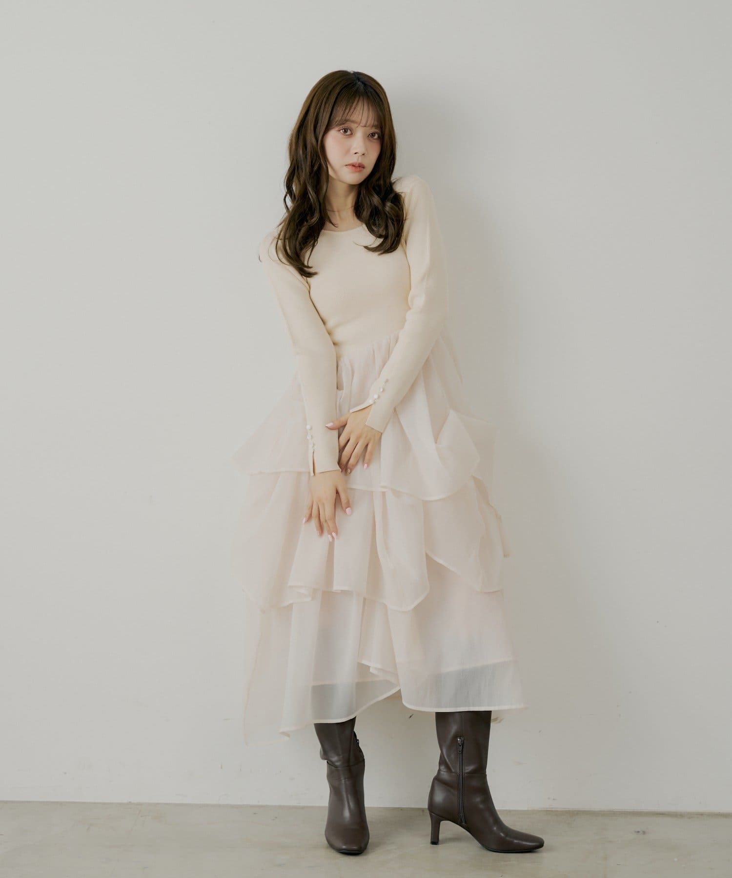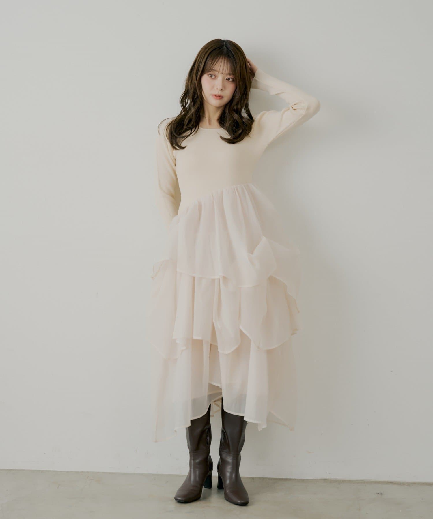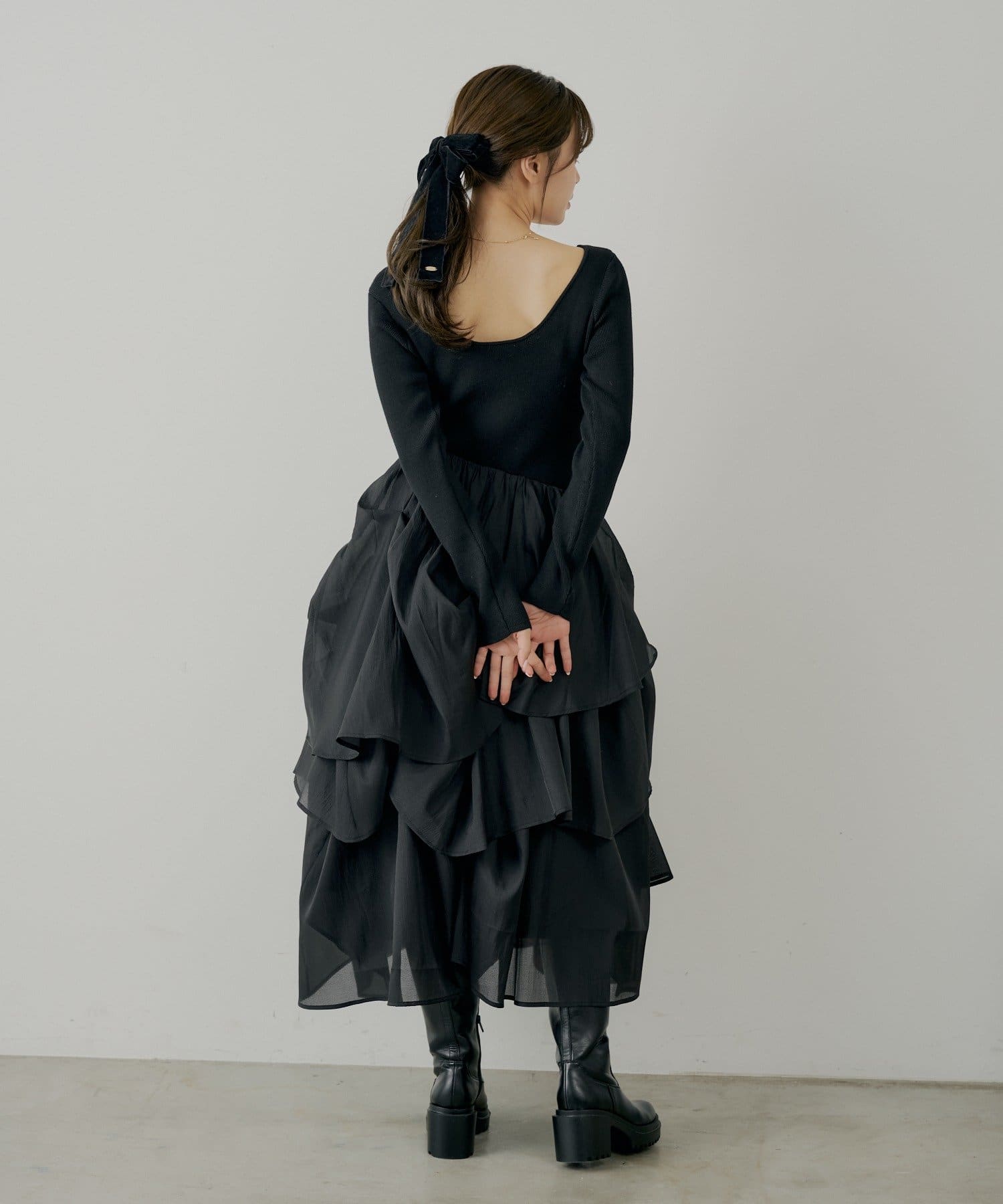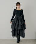 ・スカート部分のアシンメトリーなティアードデザインが、動きのある表情に。