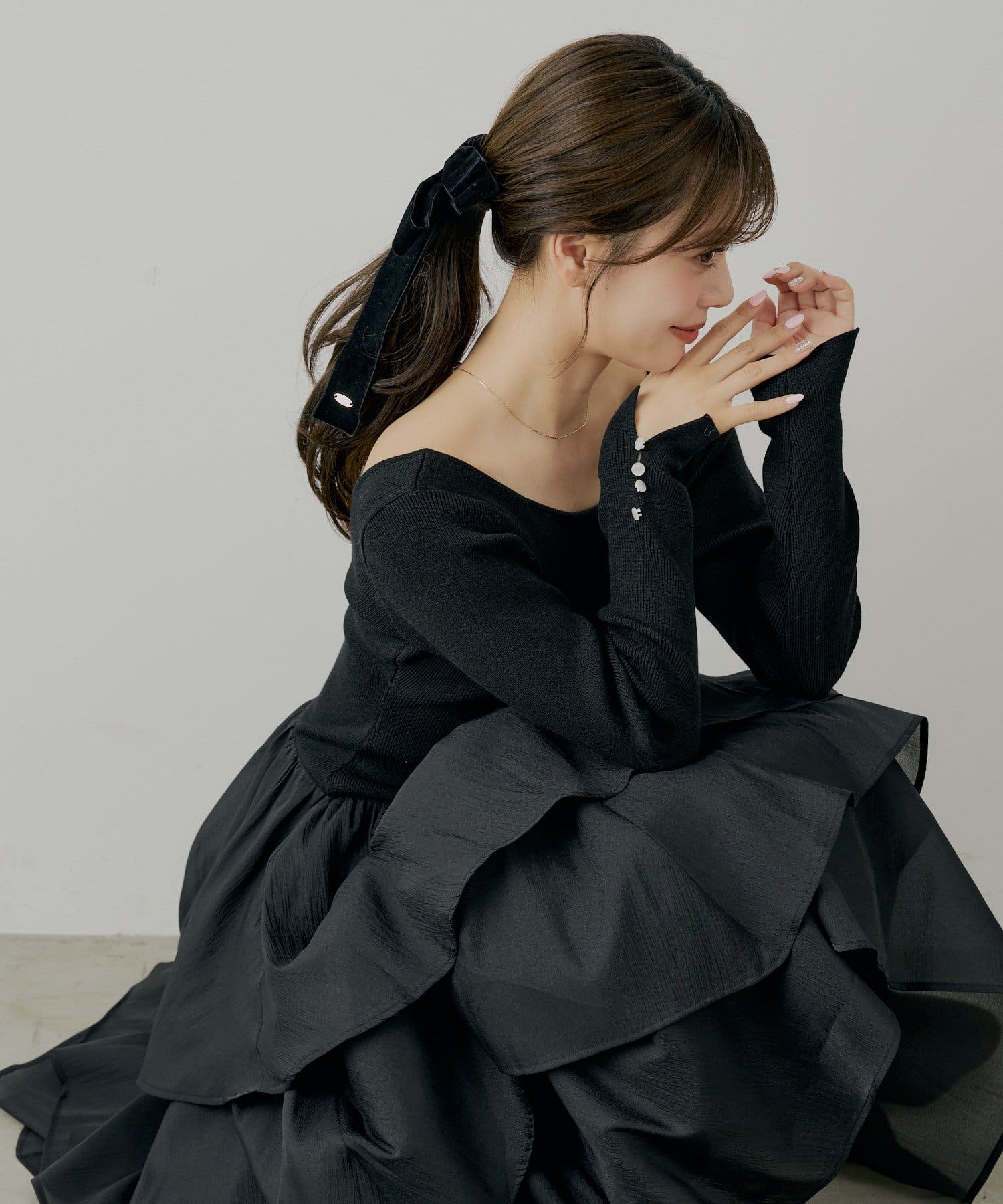 ・スカート部分のアシンメトリーなティアードデザインが、動きのある表情に。