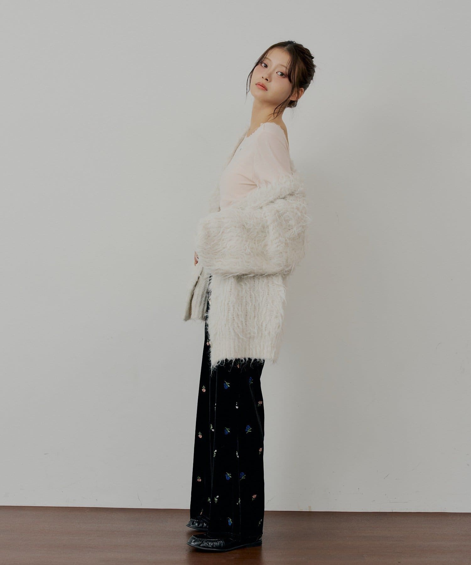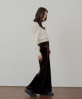 ・ベロア素材ならではの、深みのある色合いと上品な光沢感が、コーディネートに奥行きと高級感をプラスします。