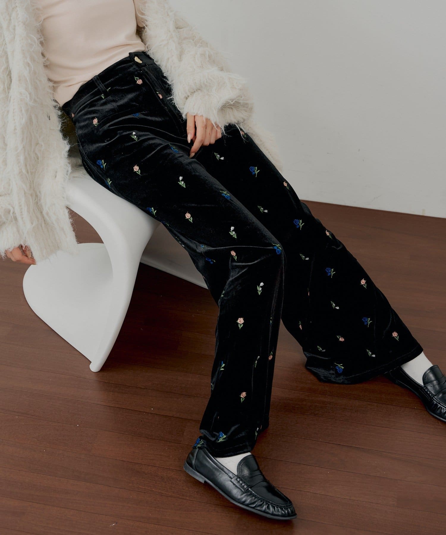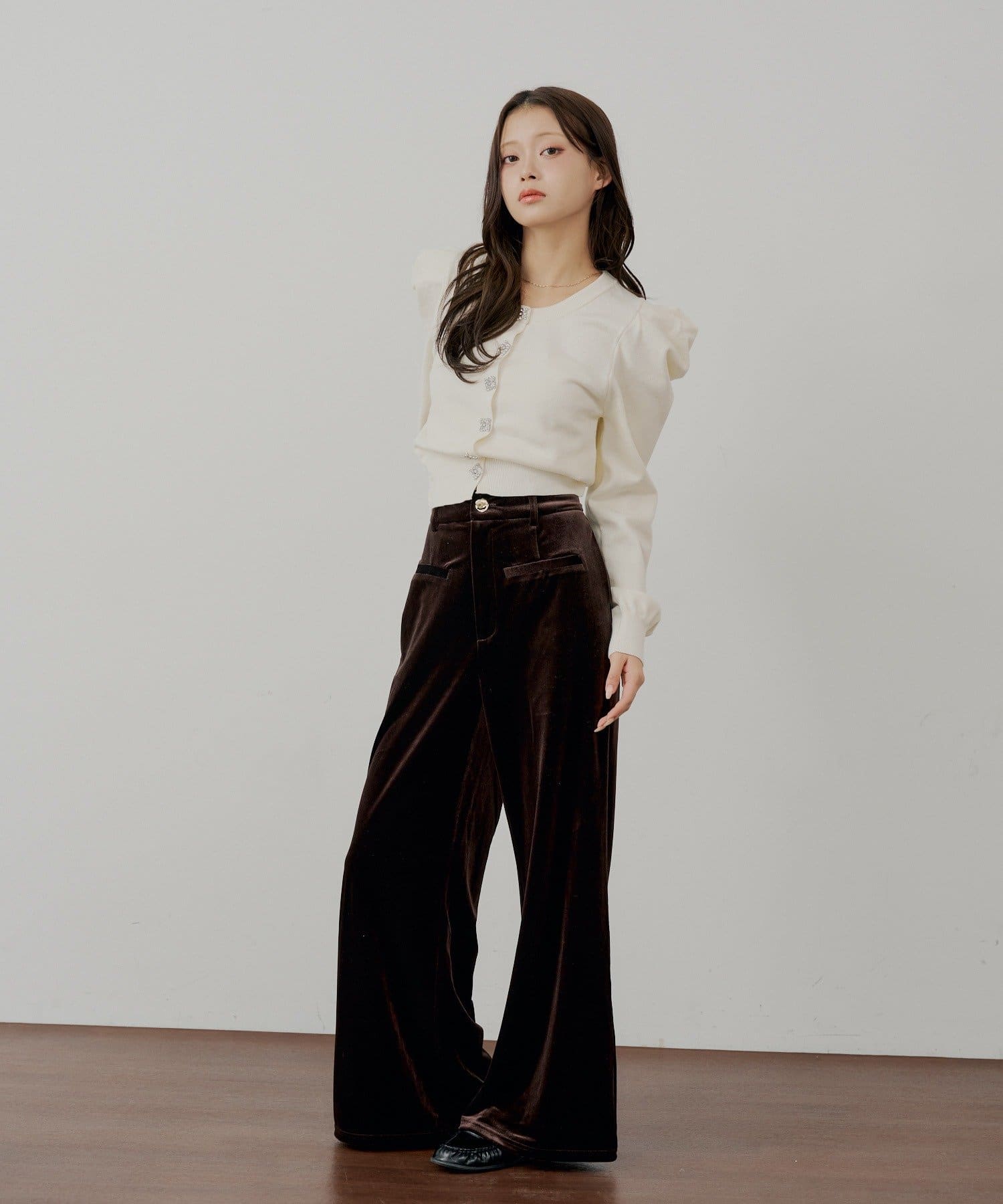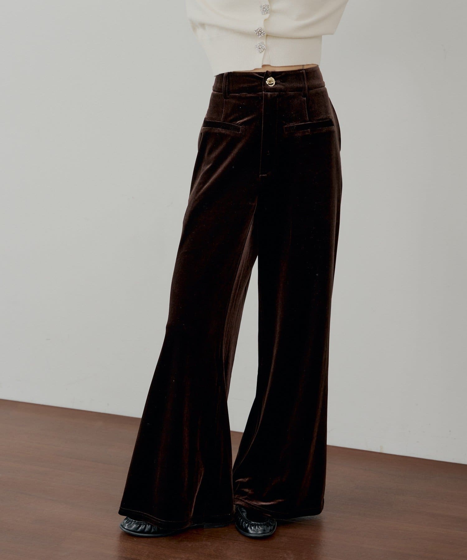 【SALON by Chico】金釦ベロアスラックスパンツ