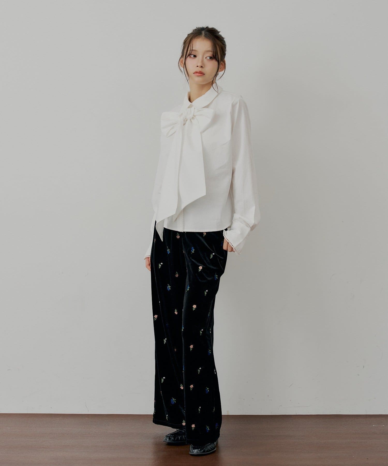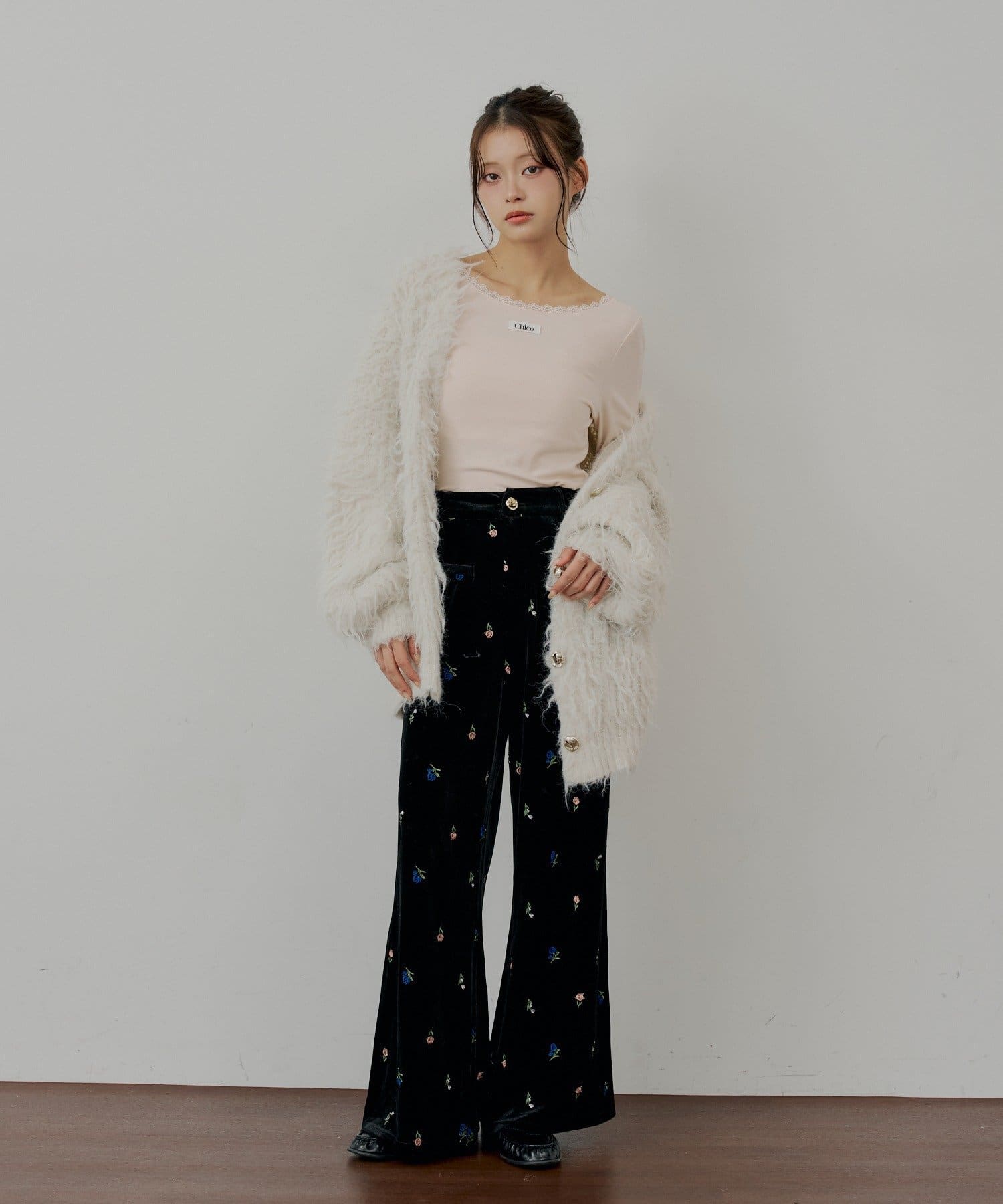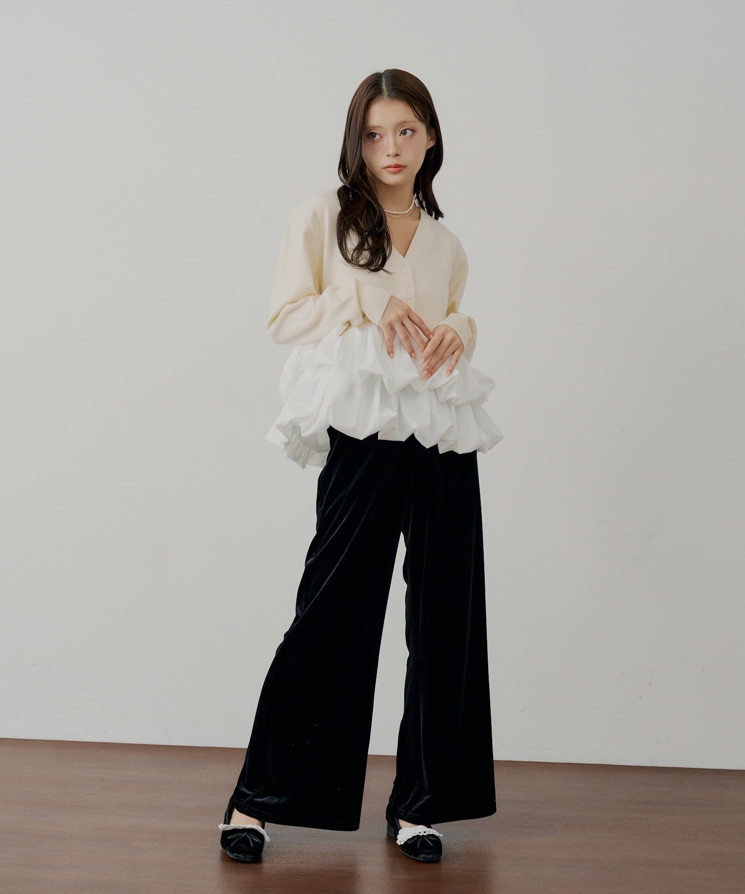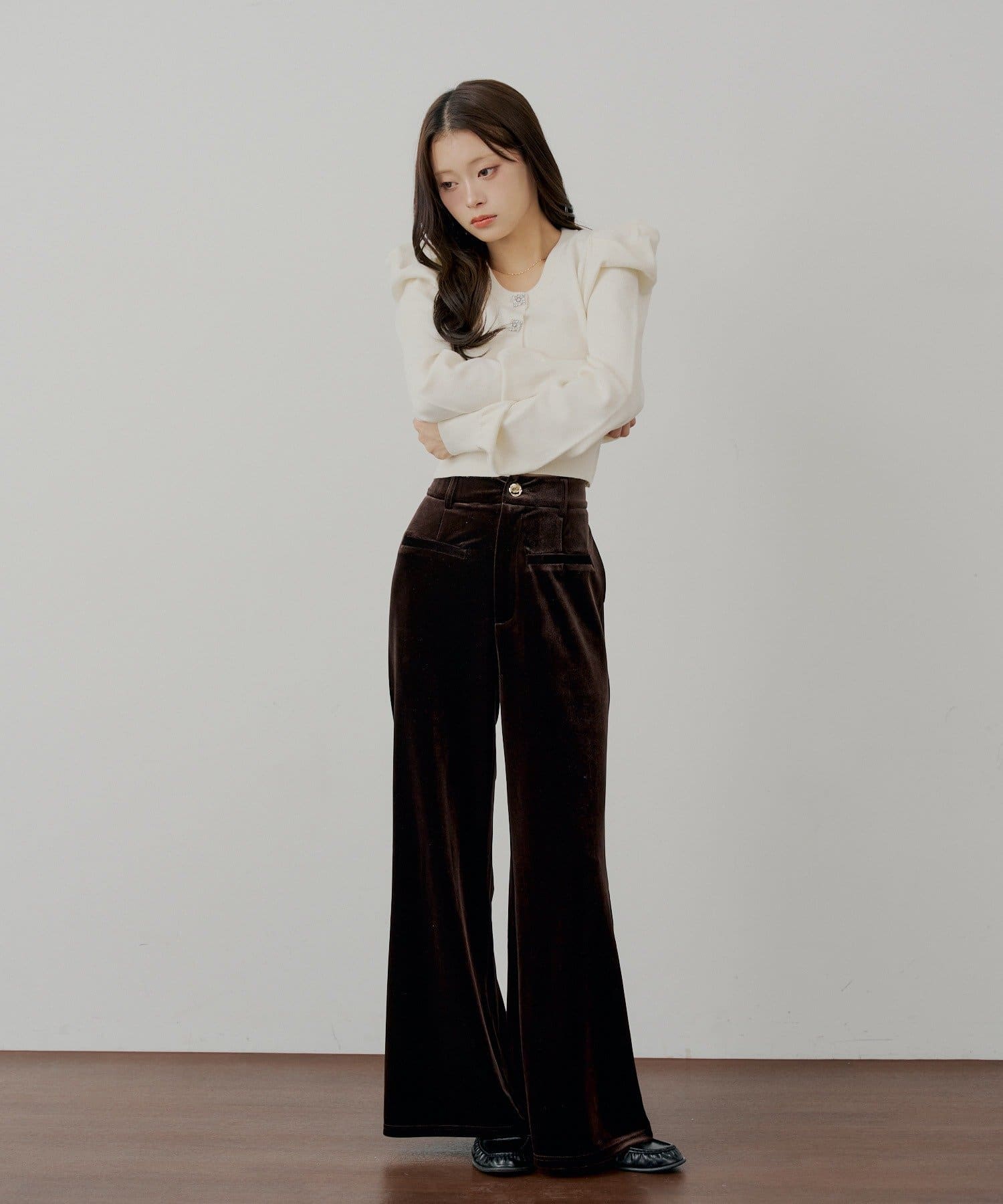 【SALON by Chico】金釦ベロアスラックスパンツ