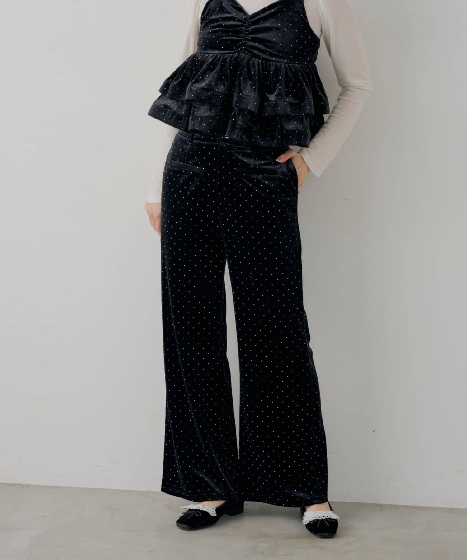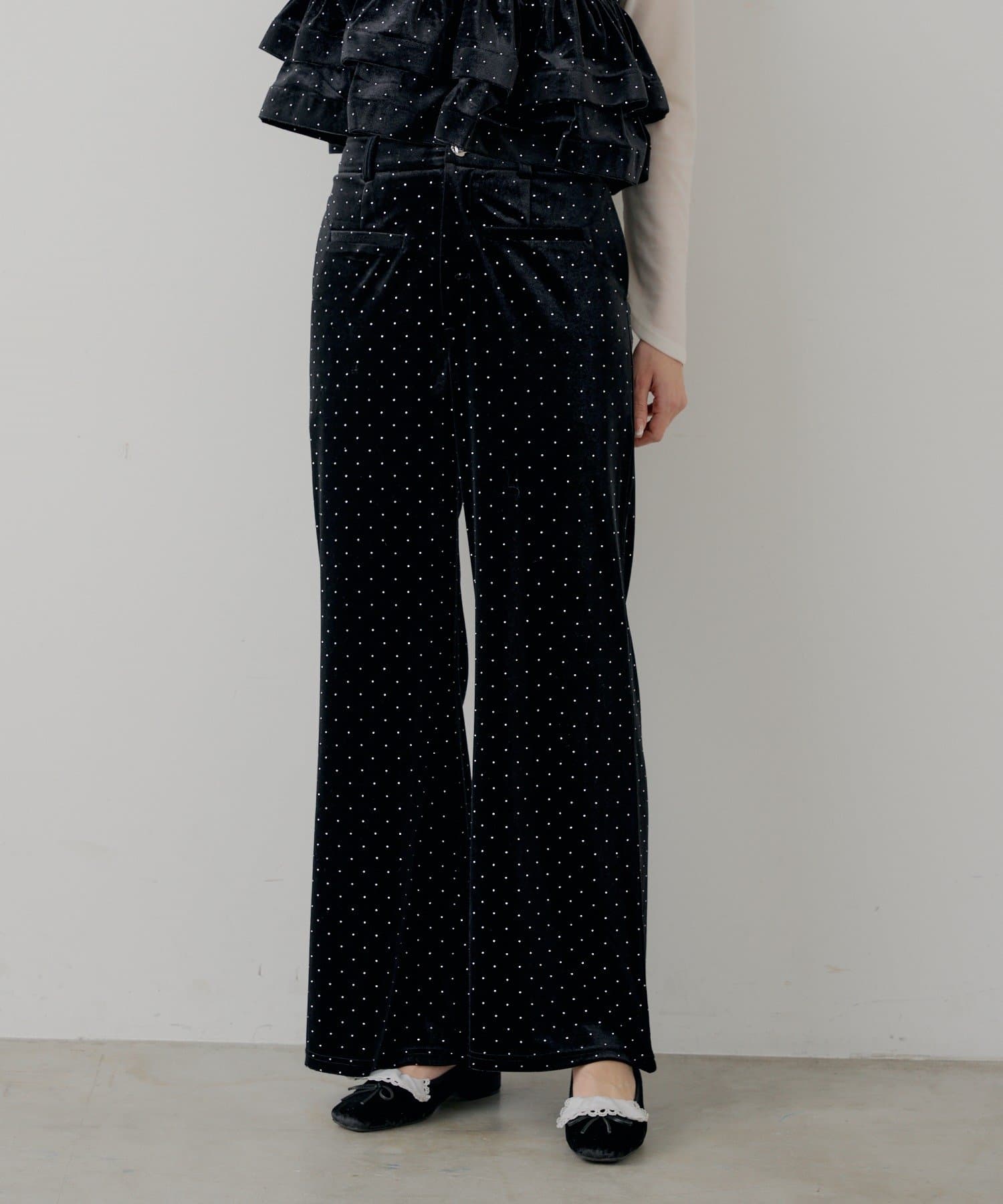 【SALON by Chico】金釦ベロアスラックスパンツ