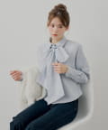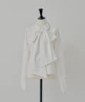 ・胸元のリボンと袖口の繊細なレースが、クラシカルで上品な印象を演出するデザインシャツ。