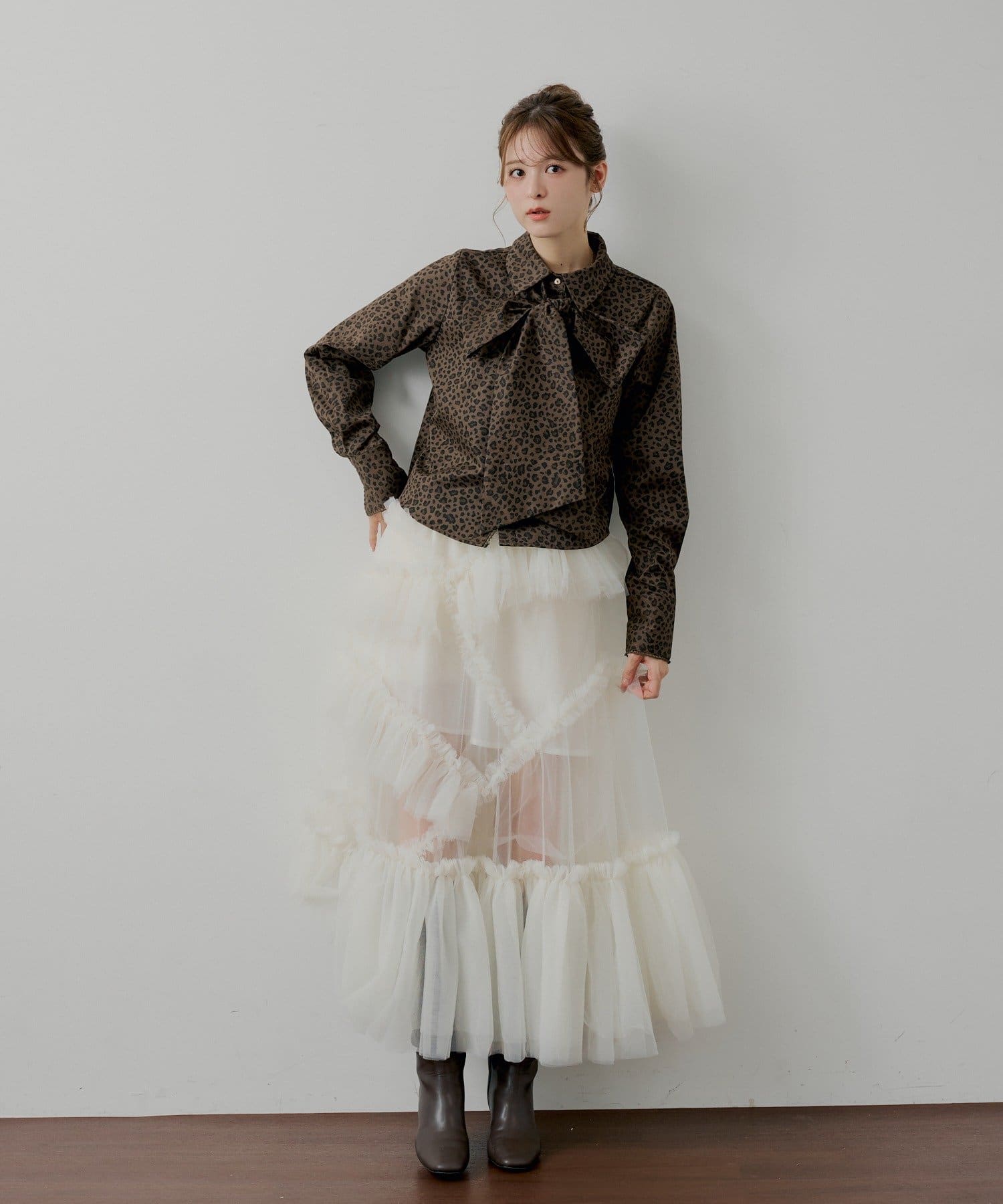 ・ヒョウ柄は、チュールやレースアイテムとも好相性です◎
