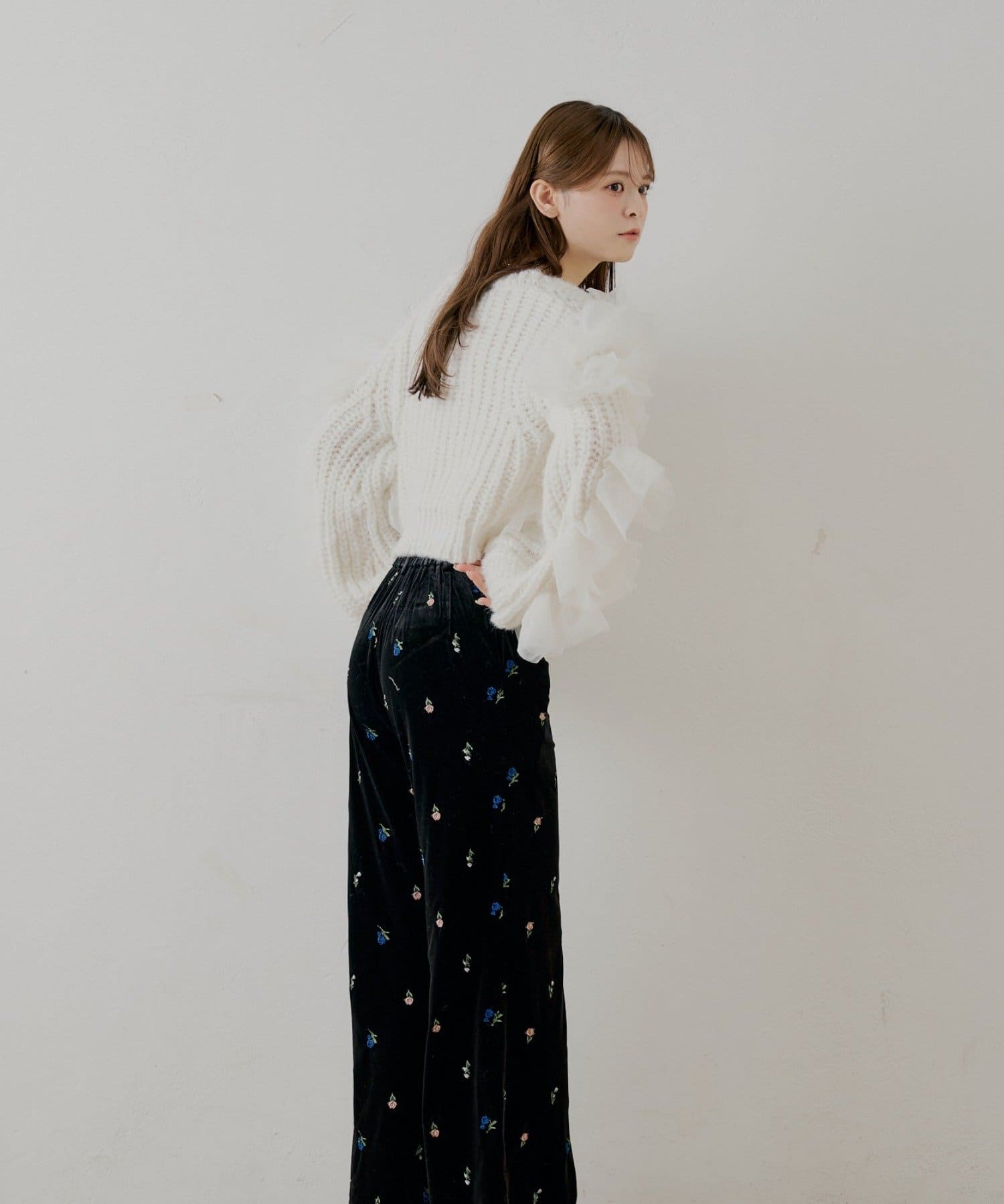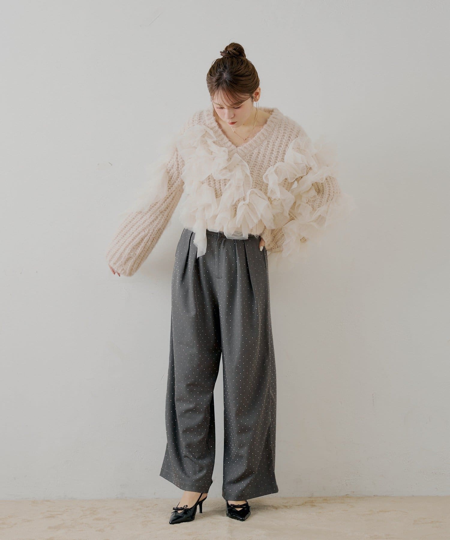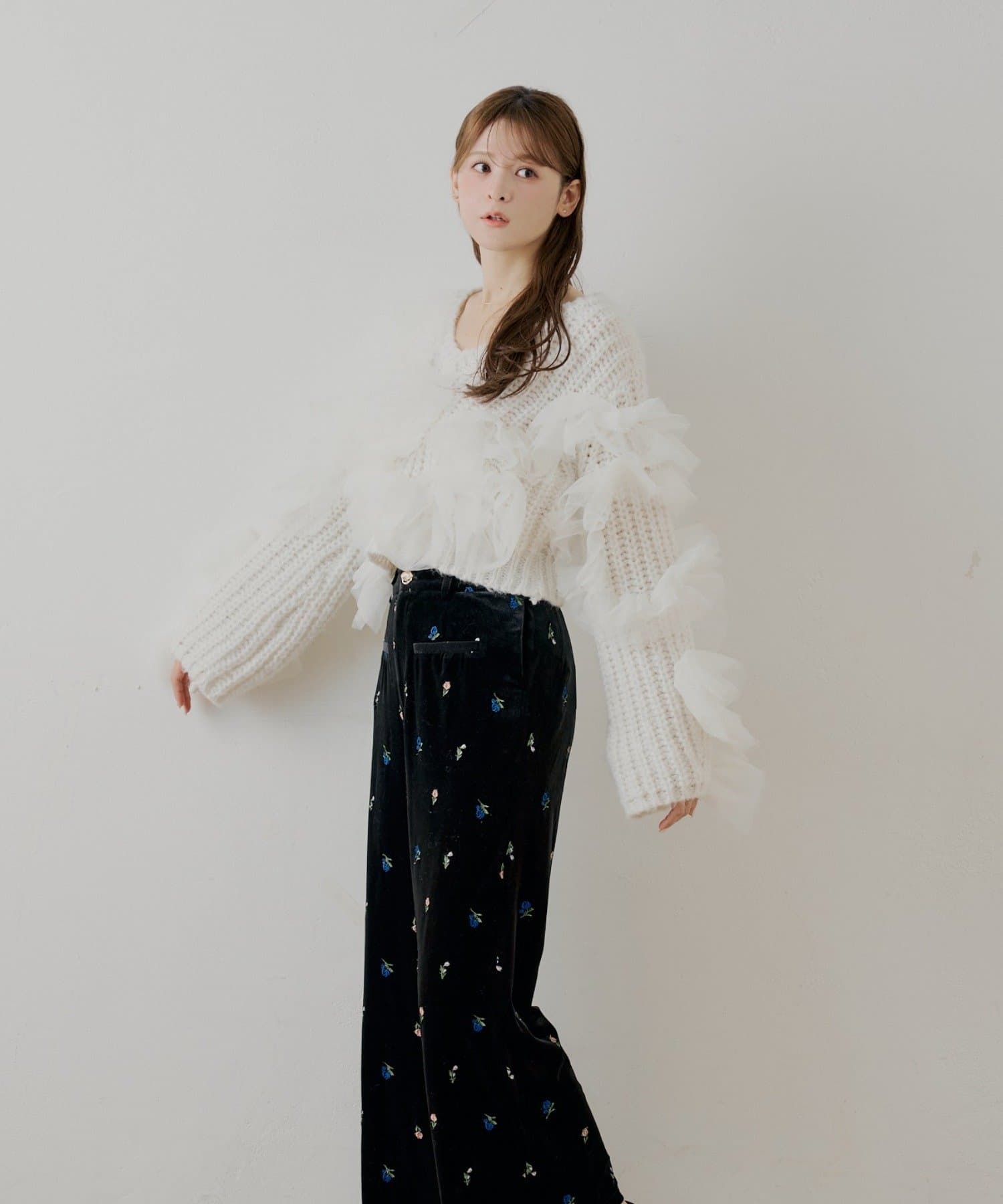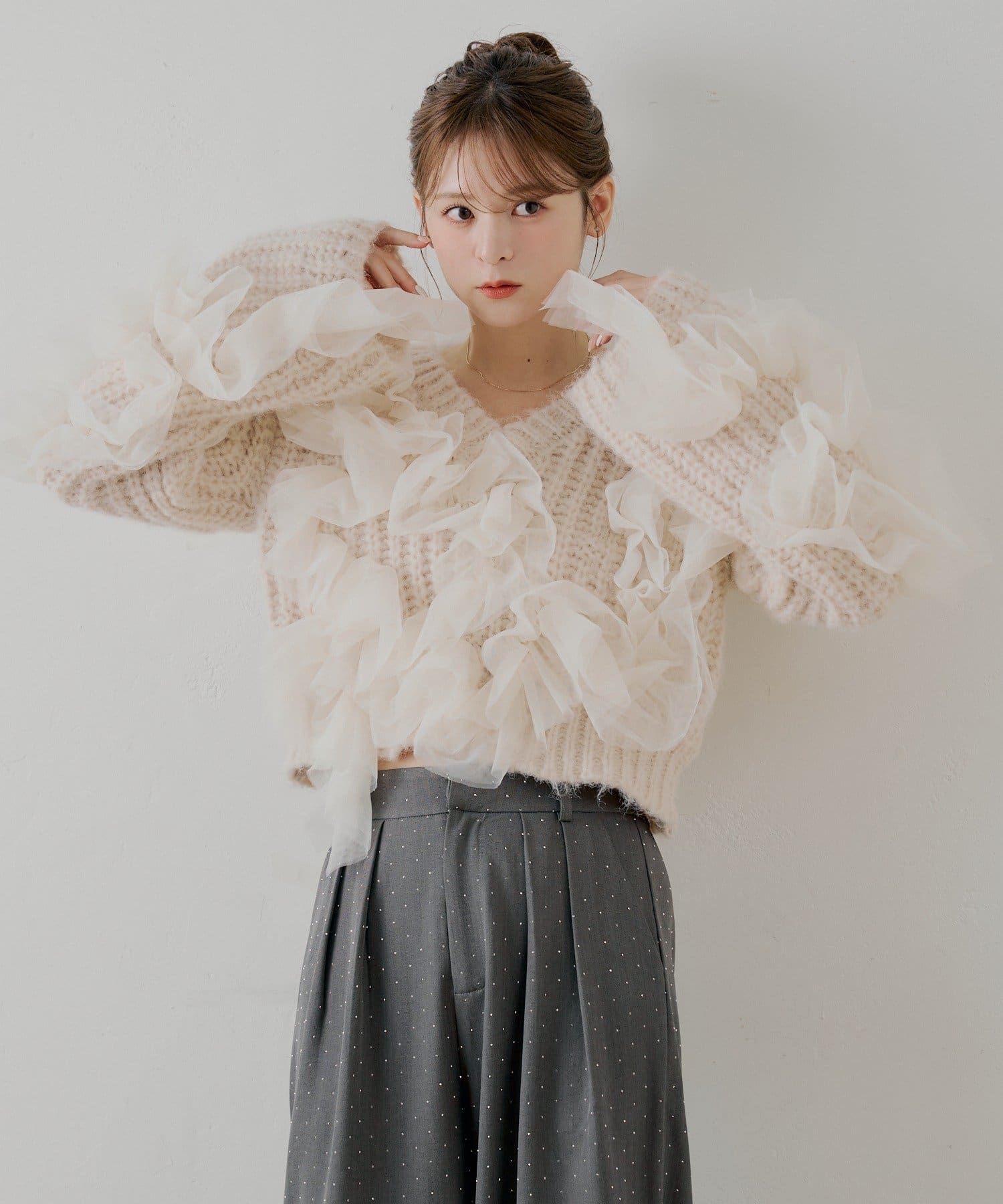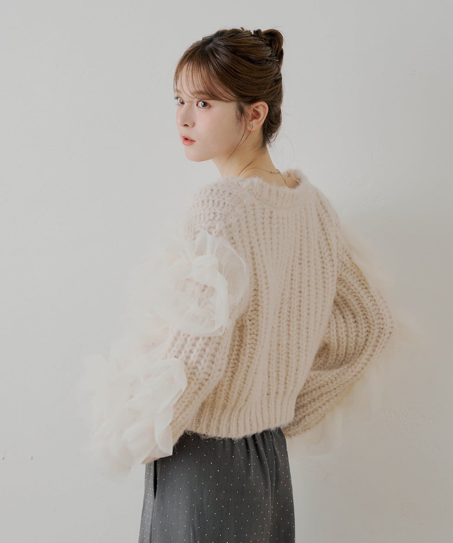 贅沢にあしらわれたランダムなチュールが目を惹くニット登場!