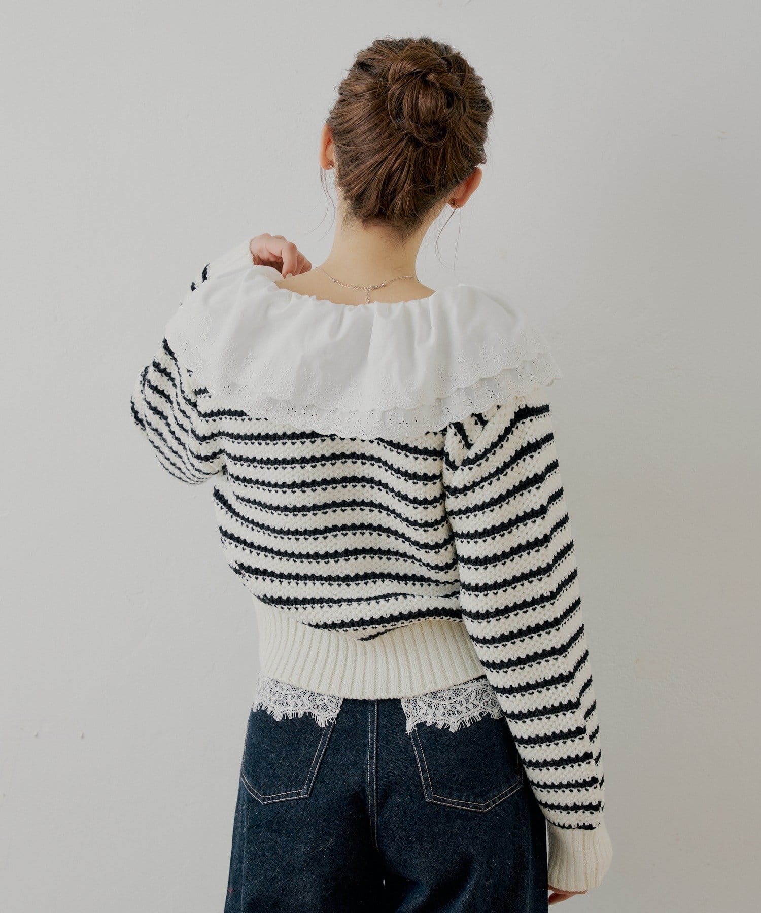 ・目を惹くダブルフリルカラーが、顔周りを華やかに彩ります。