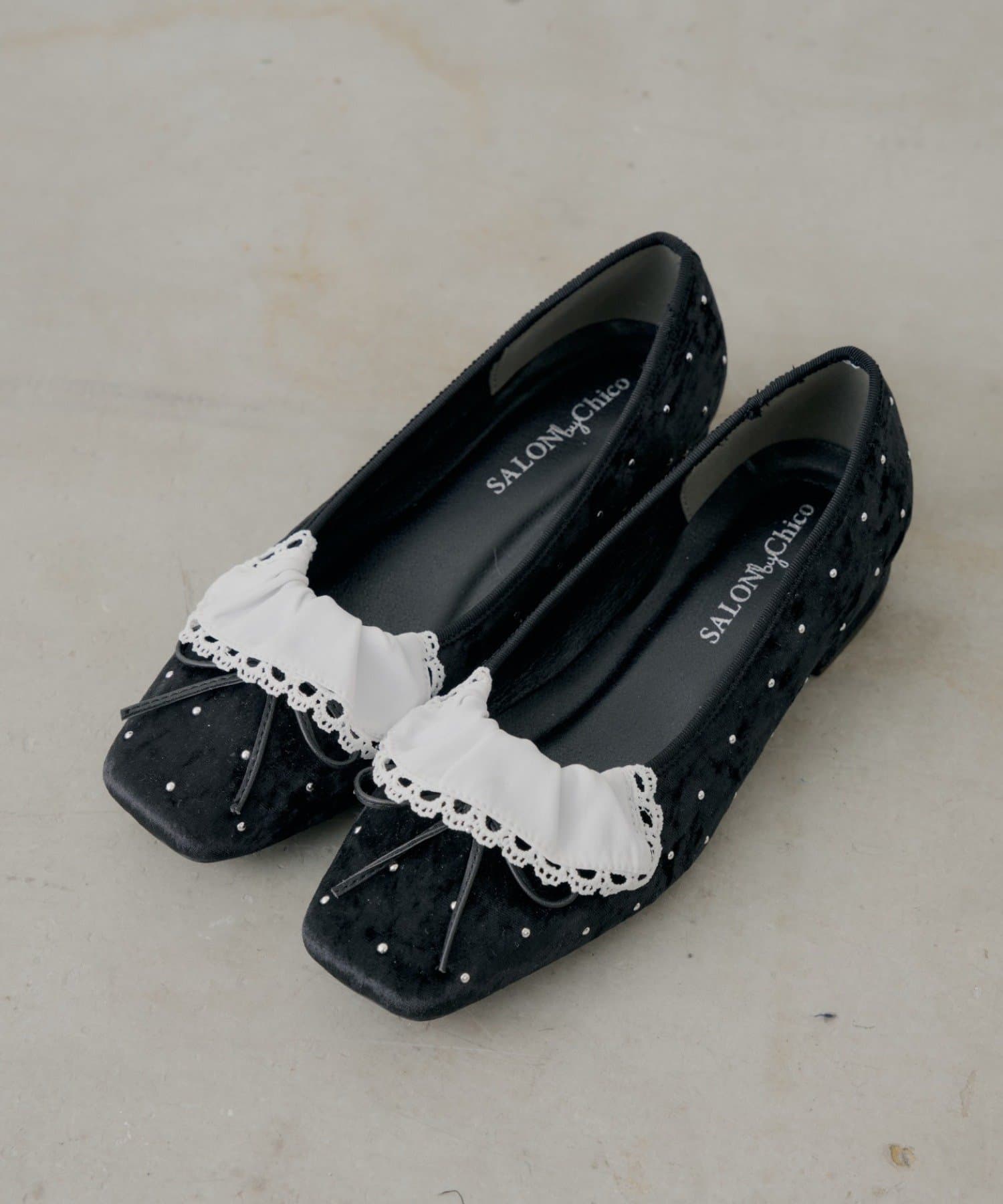 【SALON by Chico】フリルデザインリボンバレエシューズ