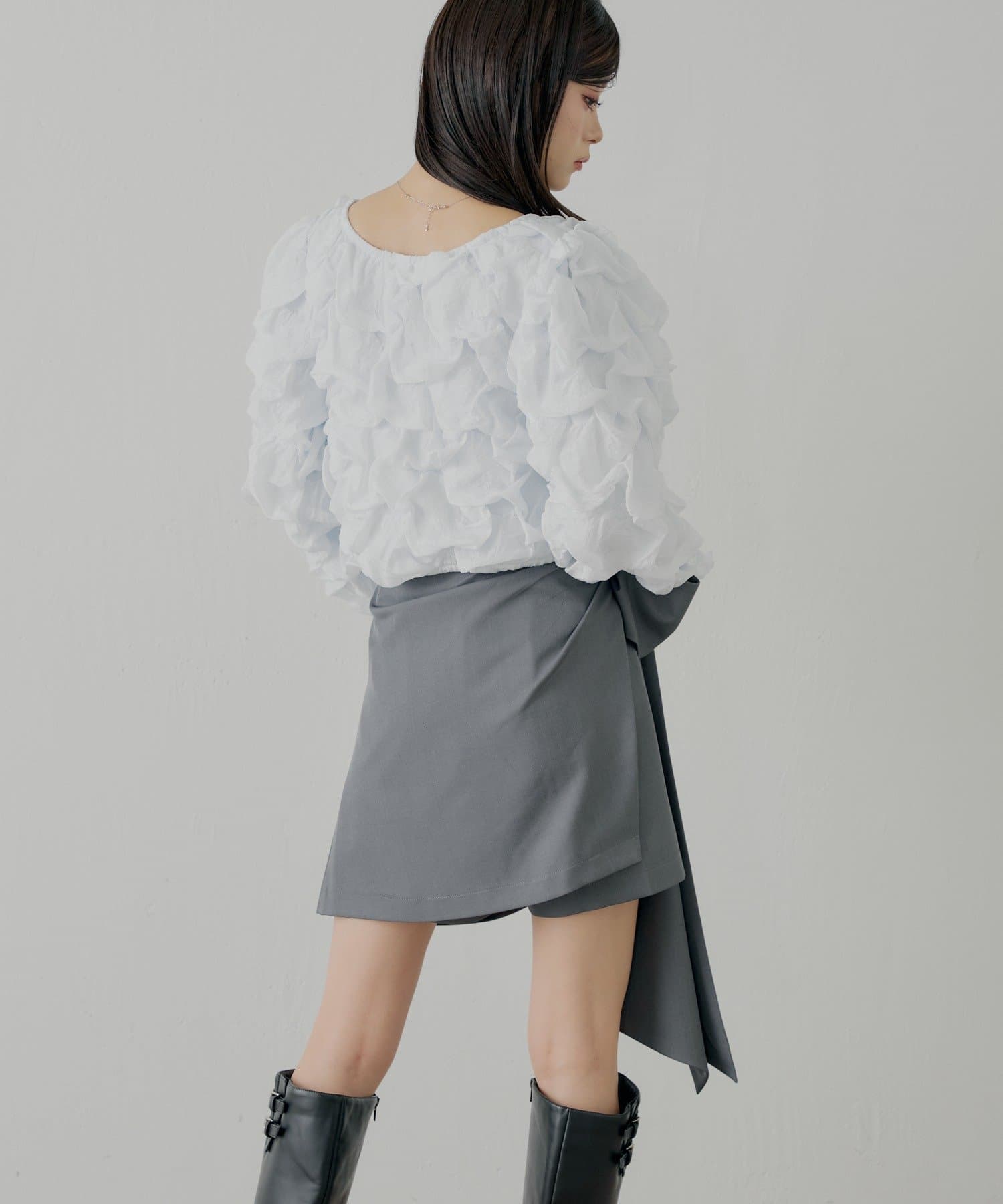 ・リボンラップデザインが目を惹くスカートとハーフパンツのセットアイテム。