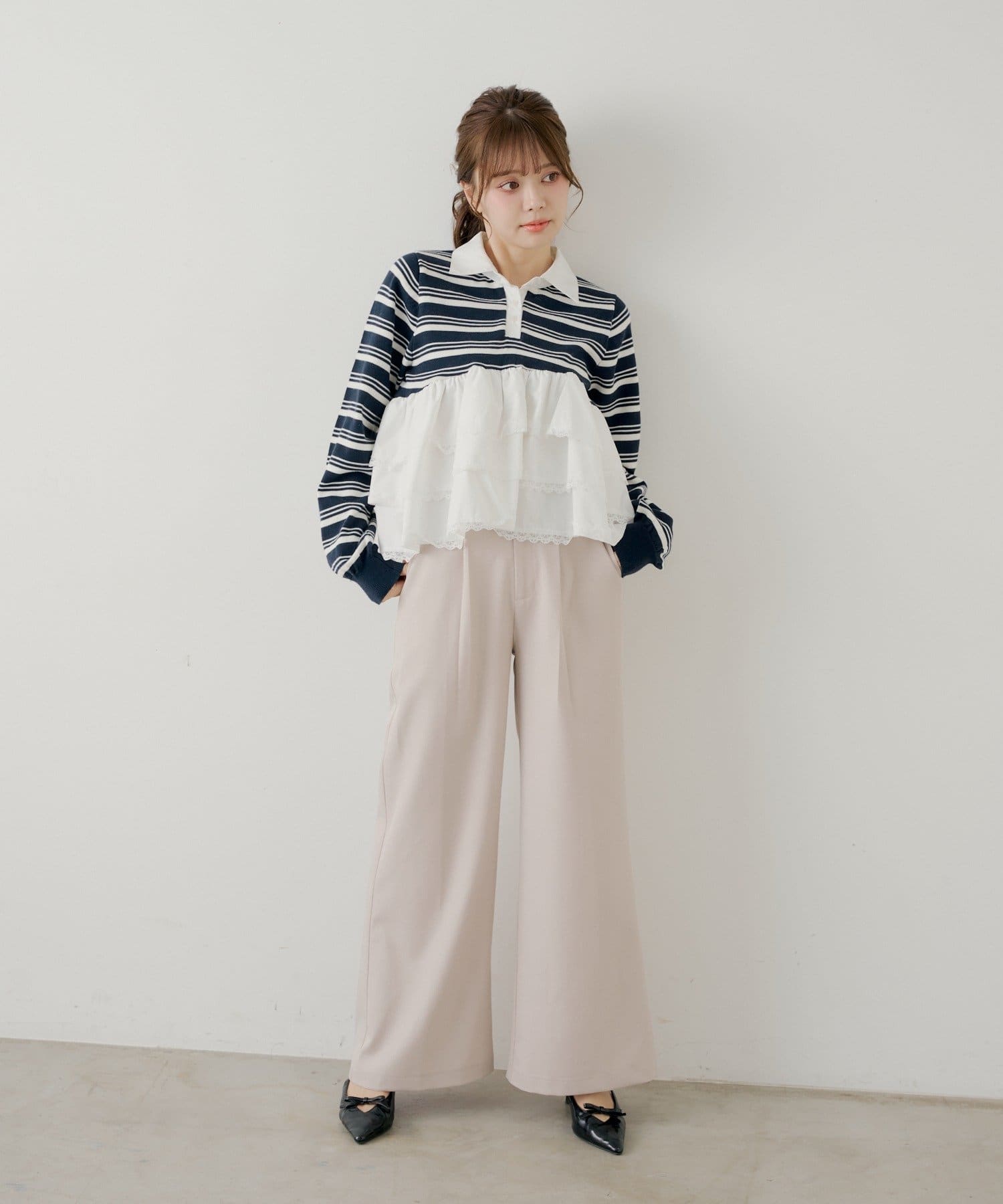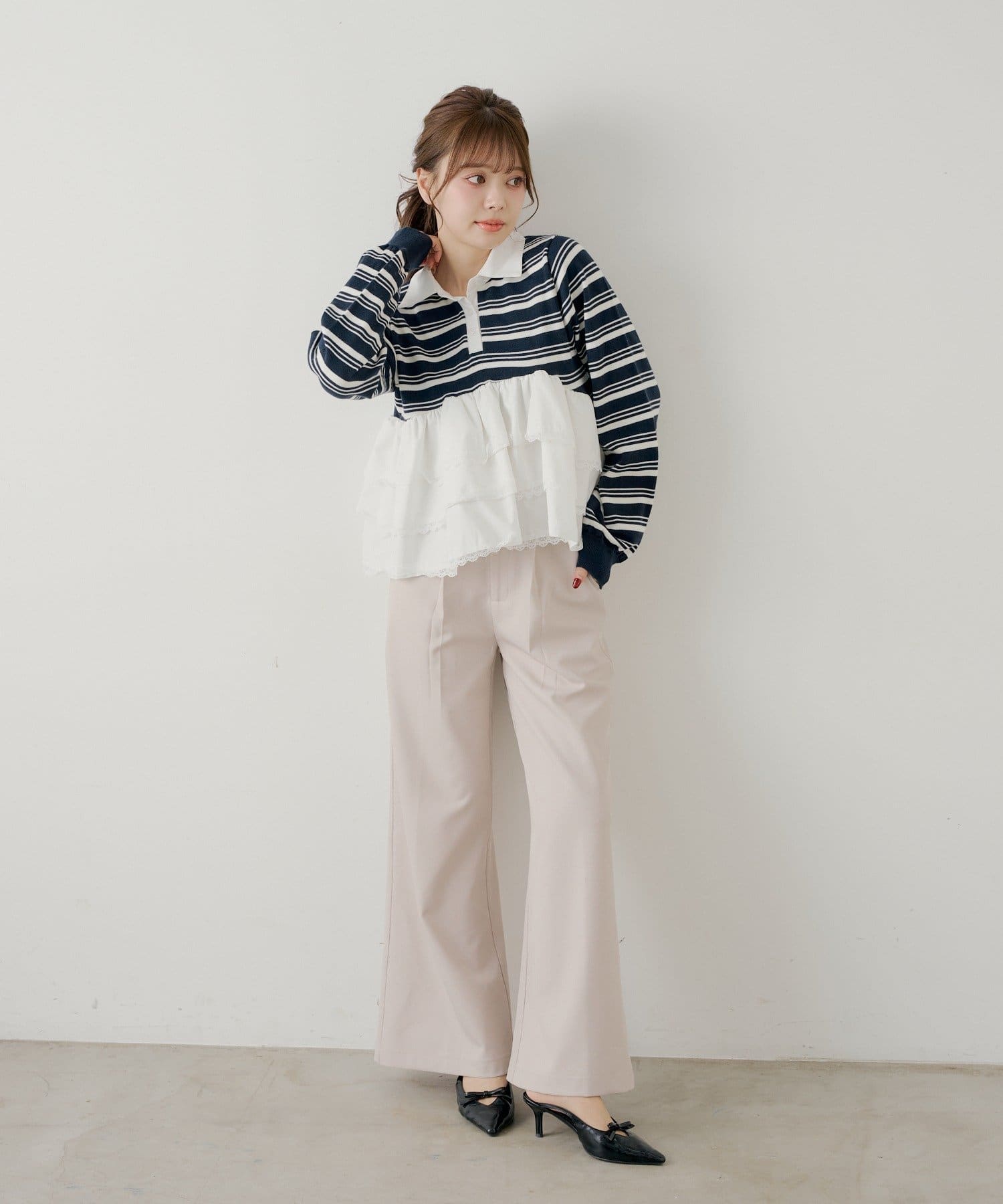 ・ミニボトムと合わせるとフェミニンなスタイルに仕上がります。