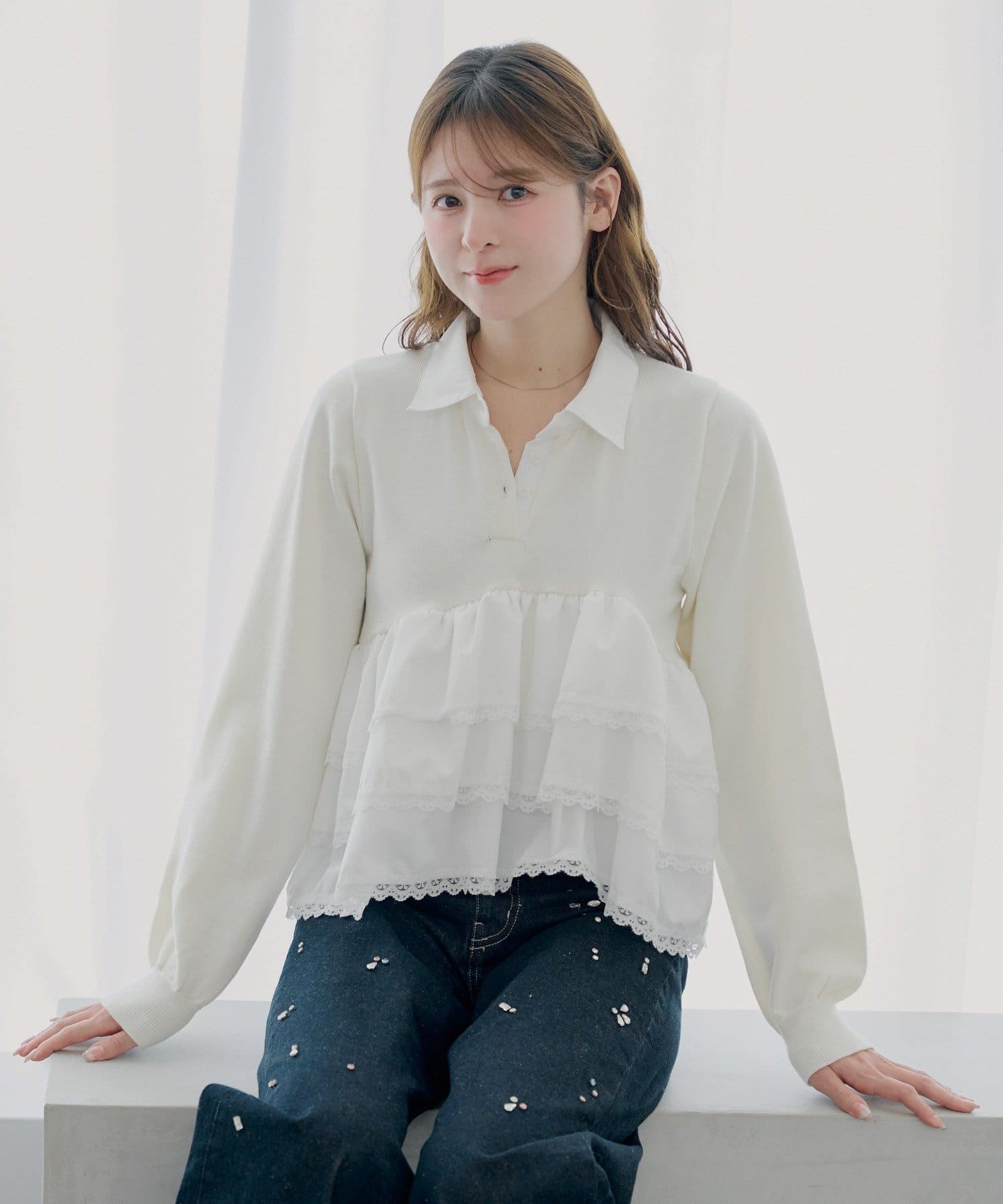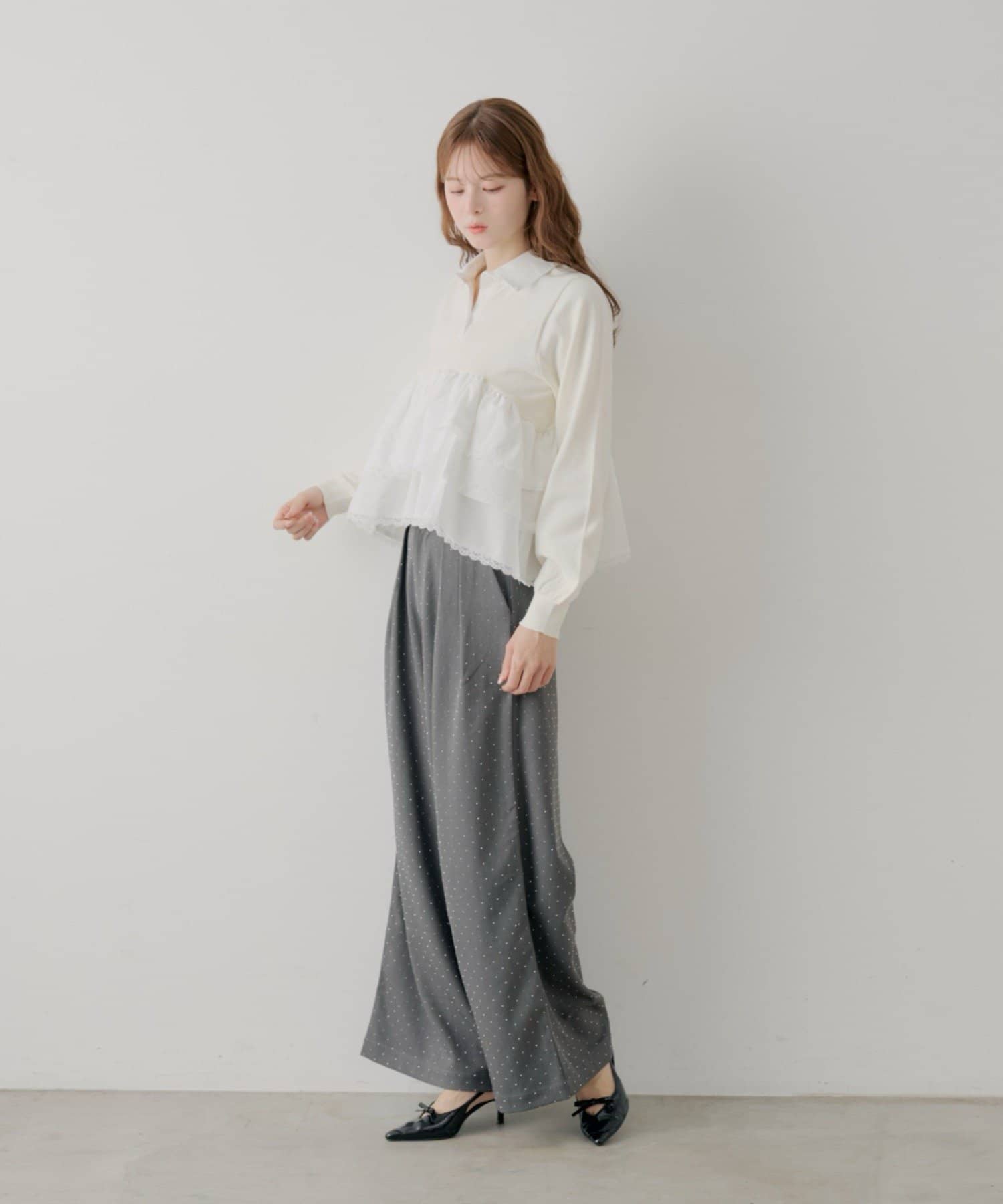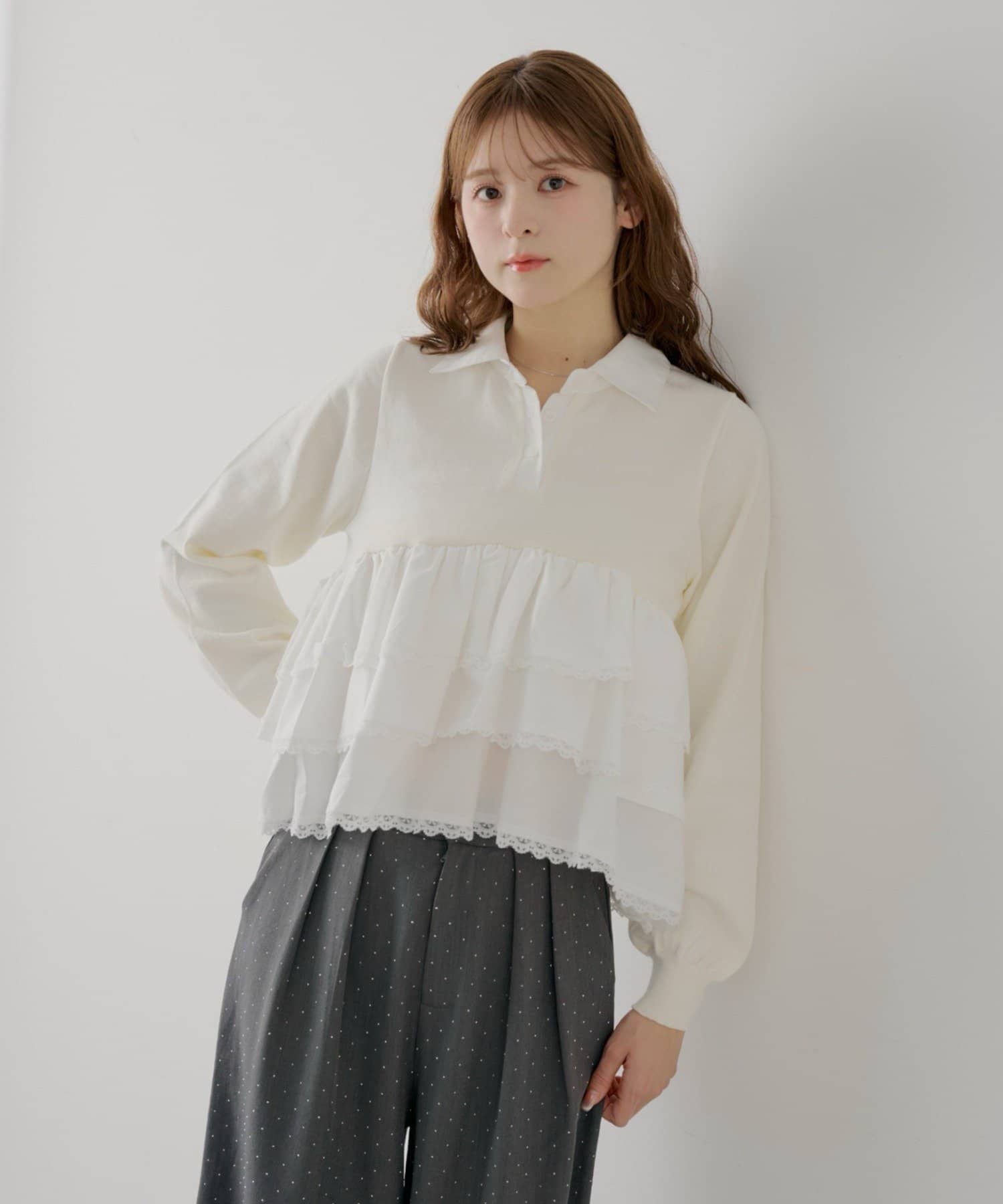 ・目を惹くレースティアードが、着こなしに華やかさをプラスしてくれます。