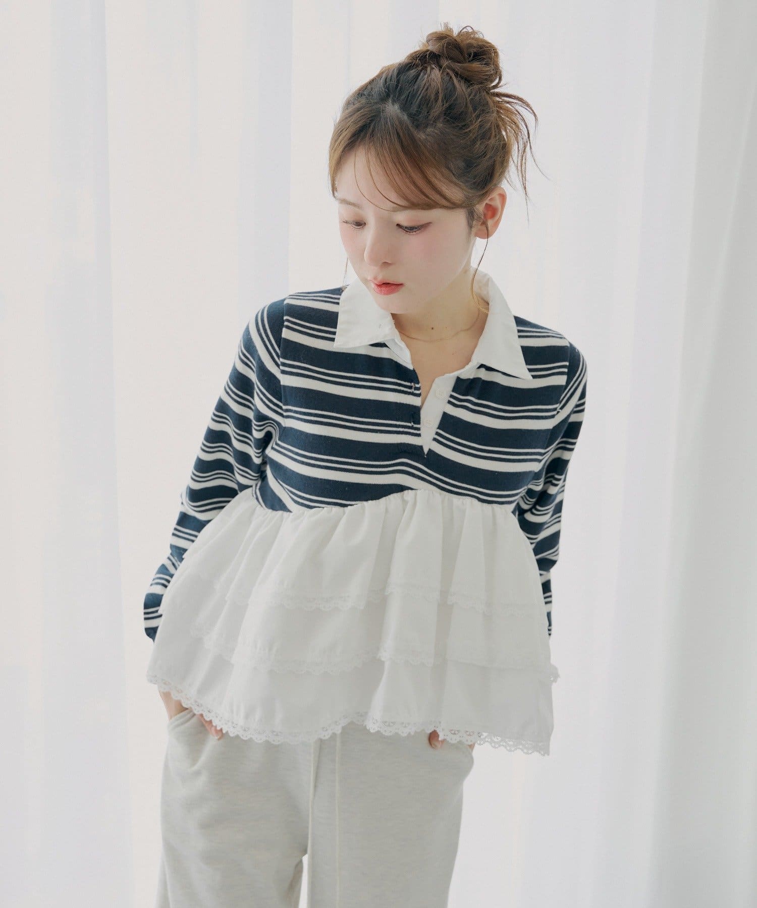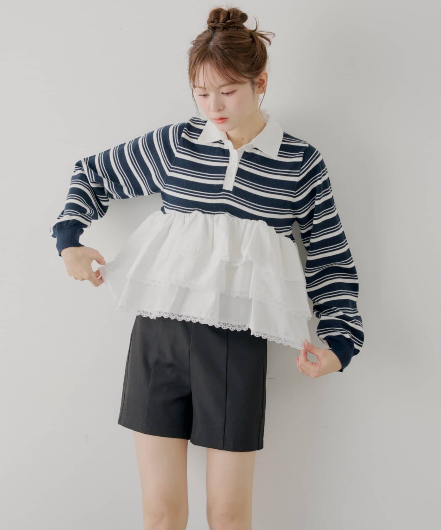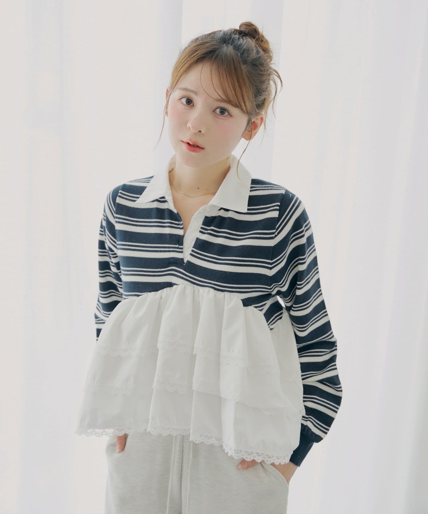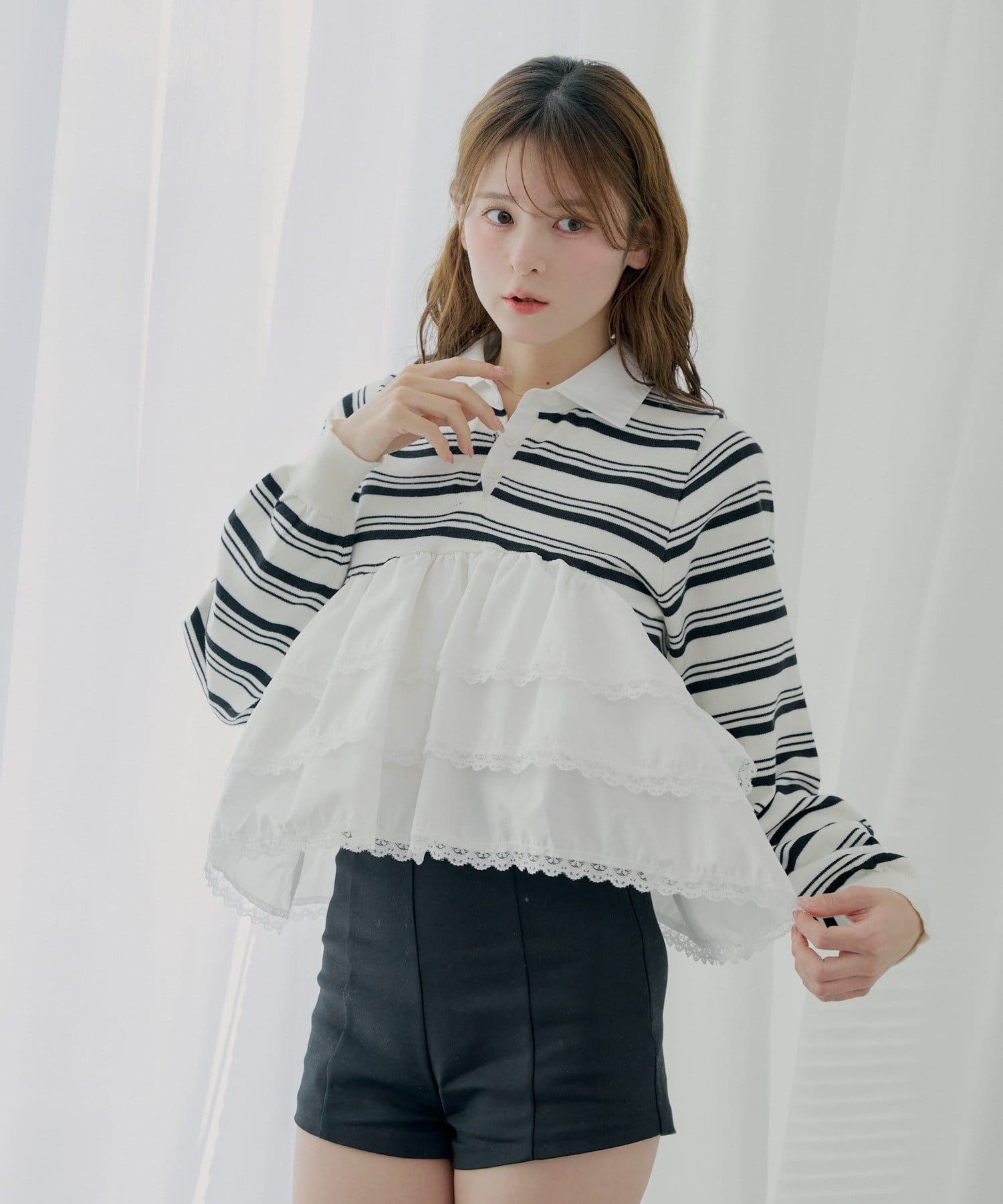 ・目を惹くレースティアードが、着こなしに華やかさをプラスしてくれます。