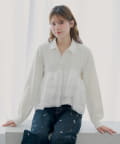 ・レースティアードのペプラムが、女性らしさを引き立て、気になるウエスト周りもカバーしてくれます。