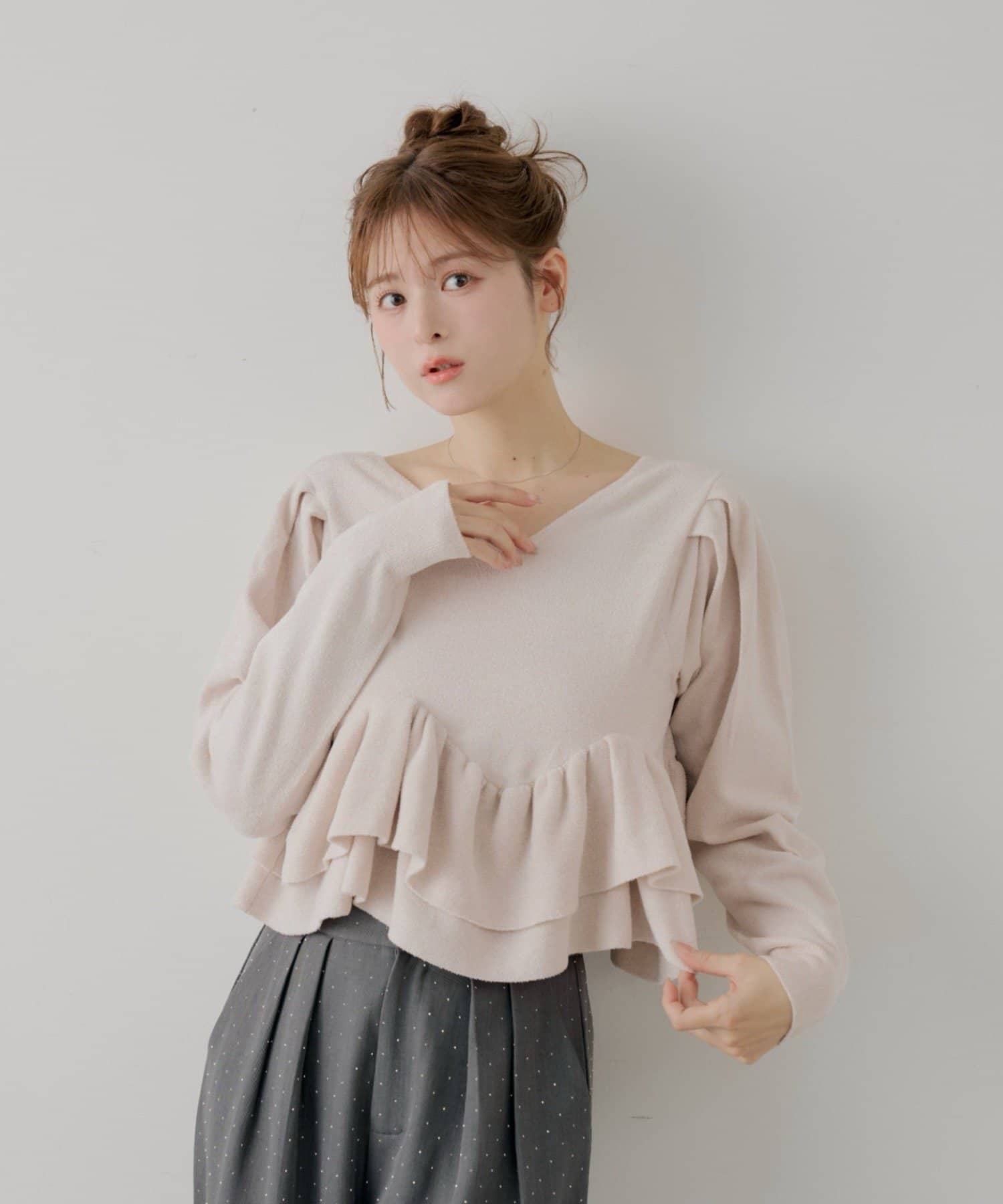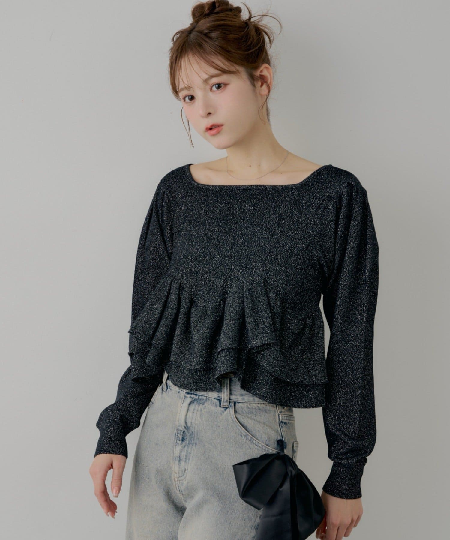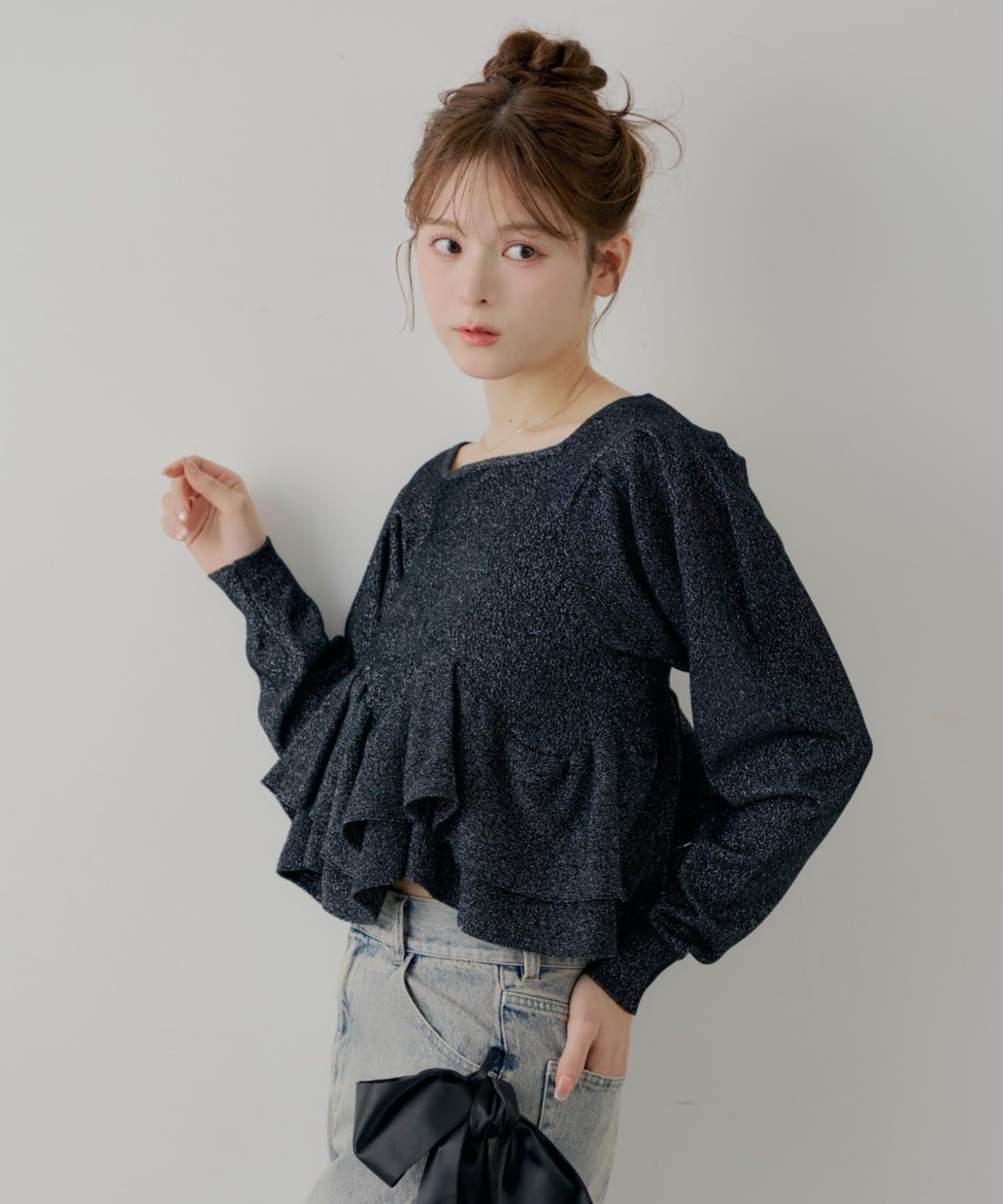 TOP > OUTLET > レディース > トップス > ニット/セーター > 【Chico】ラメベロアモールスクエアパフペプラム