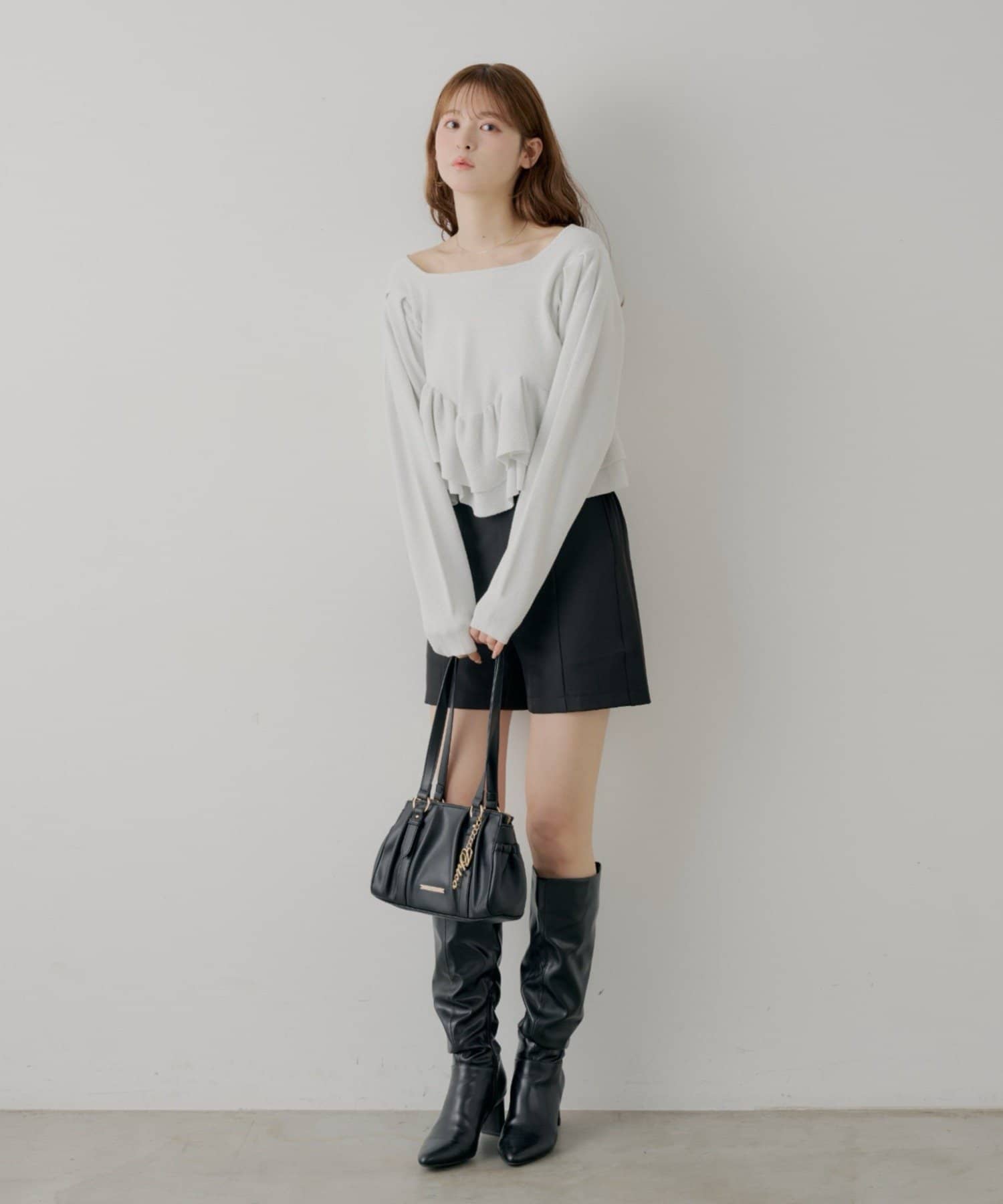 ・ミニボトムと合わせるとフェミニンなスタイルに仕上がります。