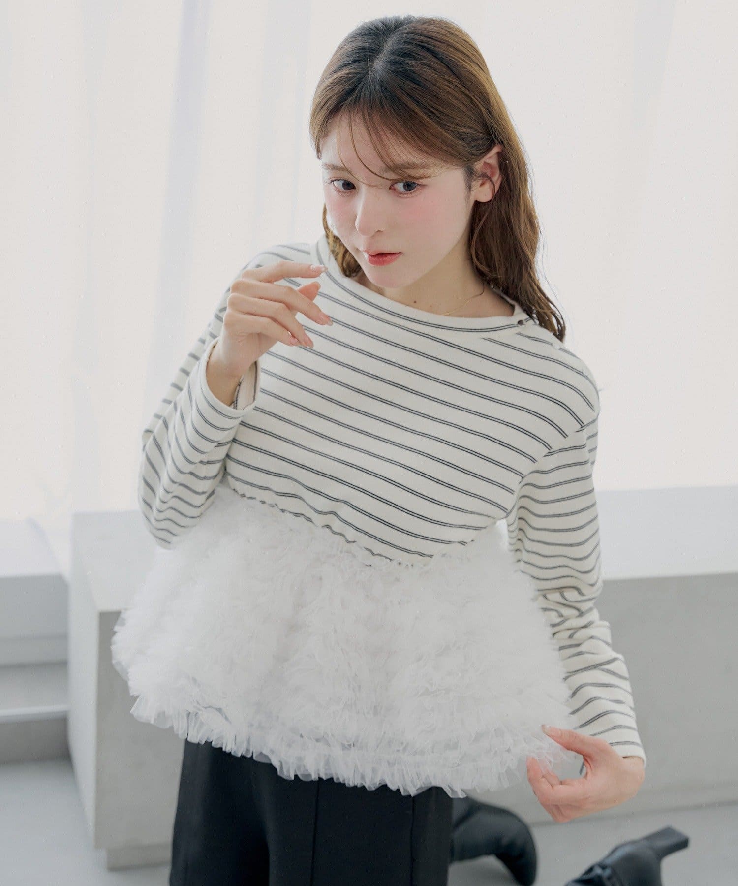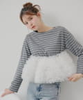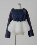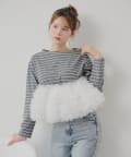 【SALON by Chico】ボリュームチュールドッキングボーダーペプラムトップス