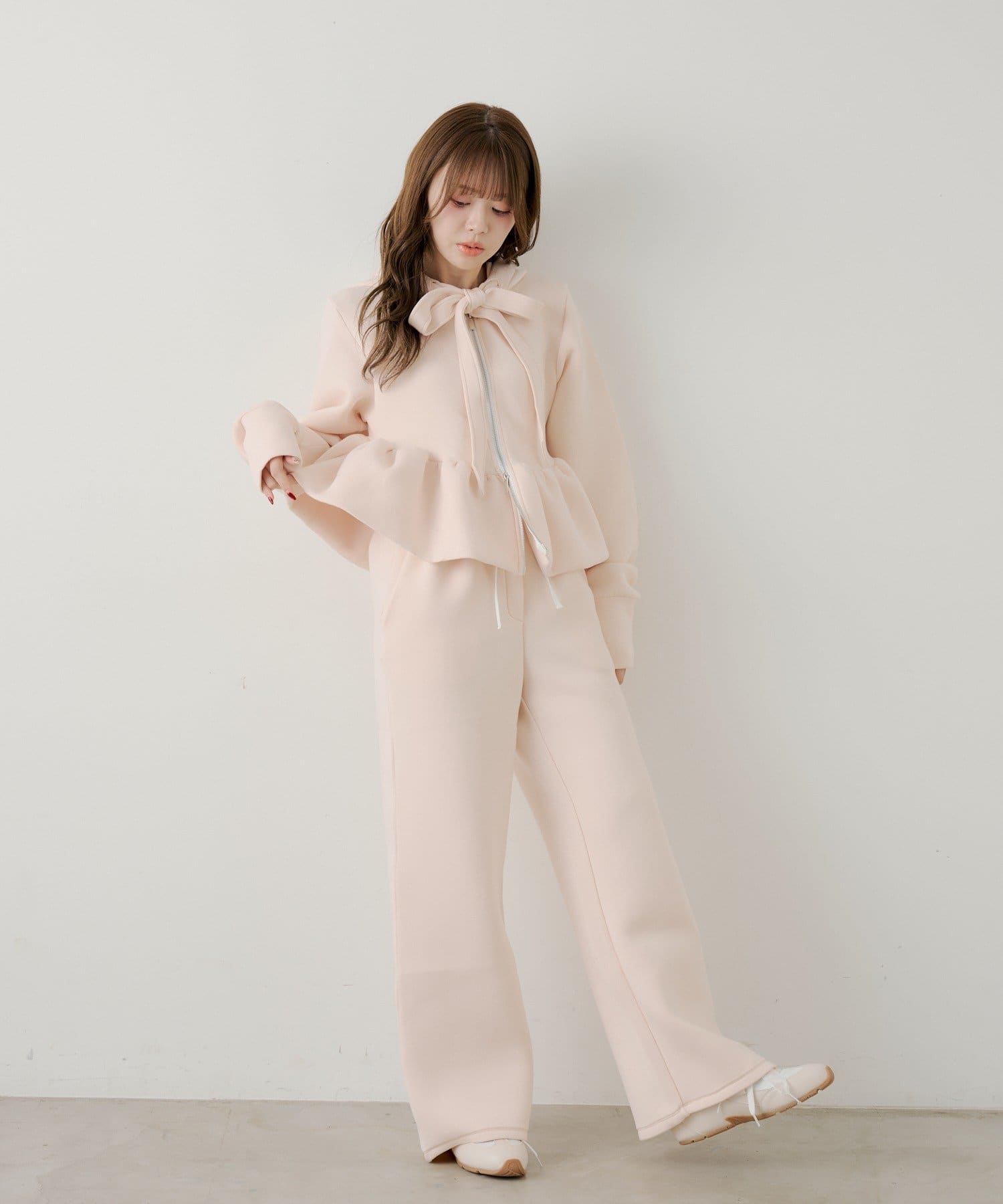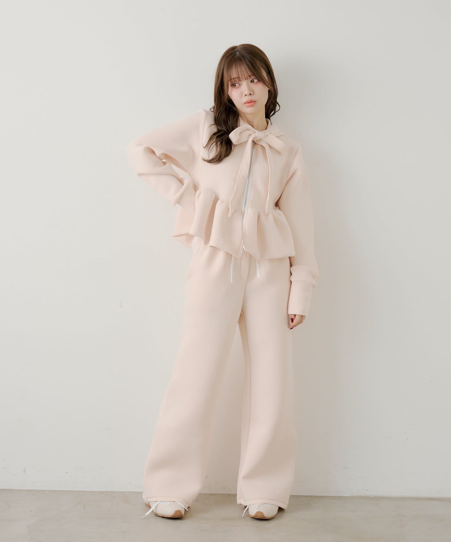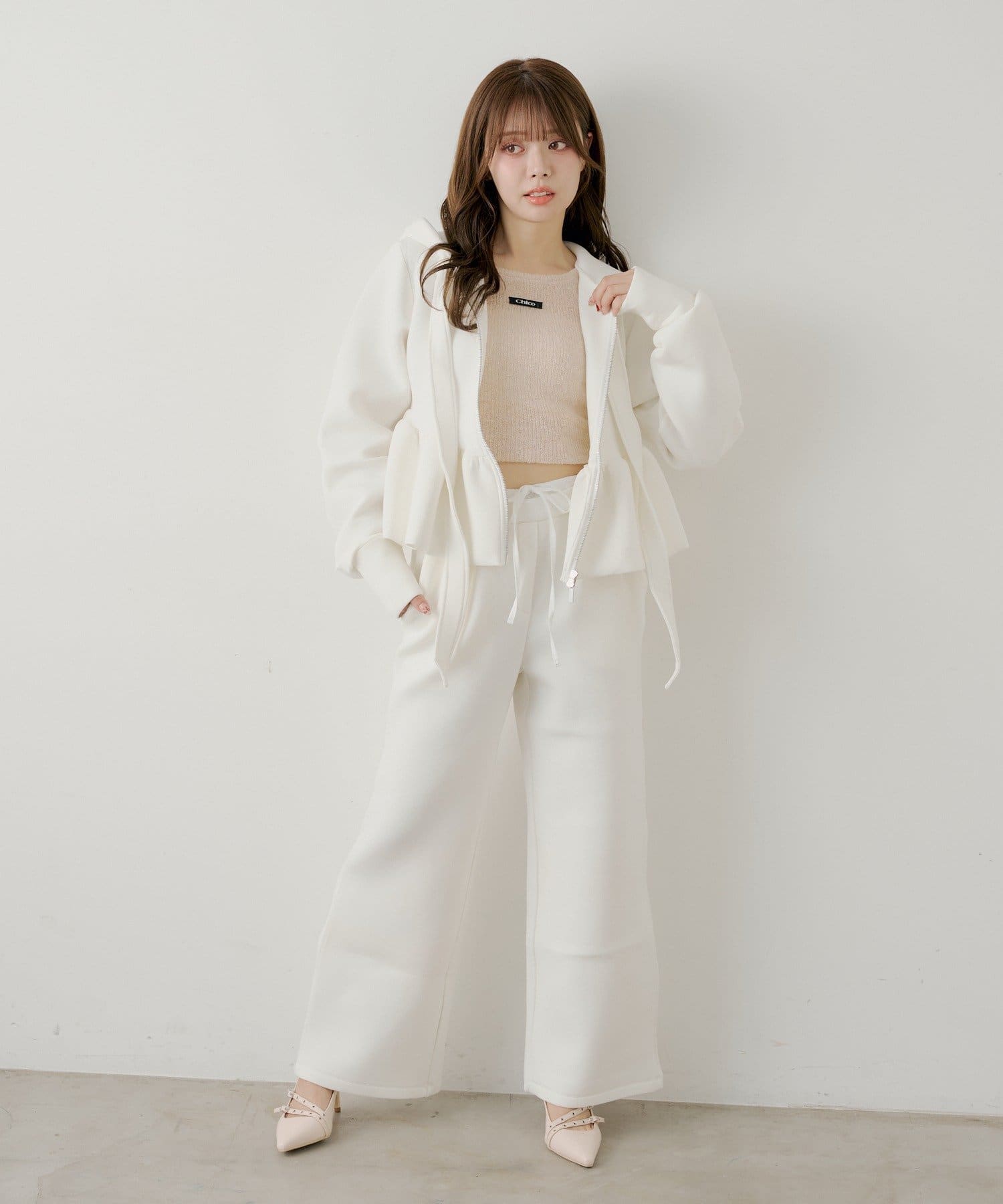 ・同素材のジップスウェットと合わせてセットアップで着るのが可愛くておすすめです。