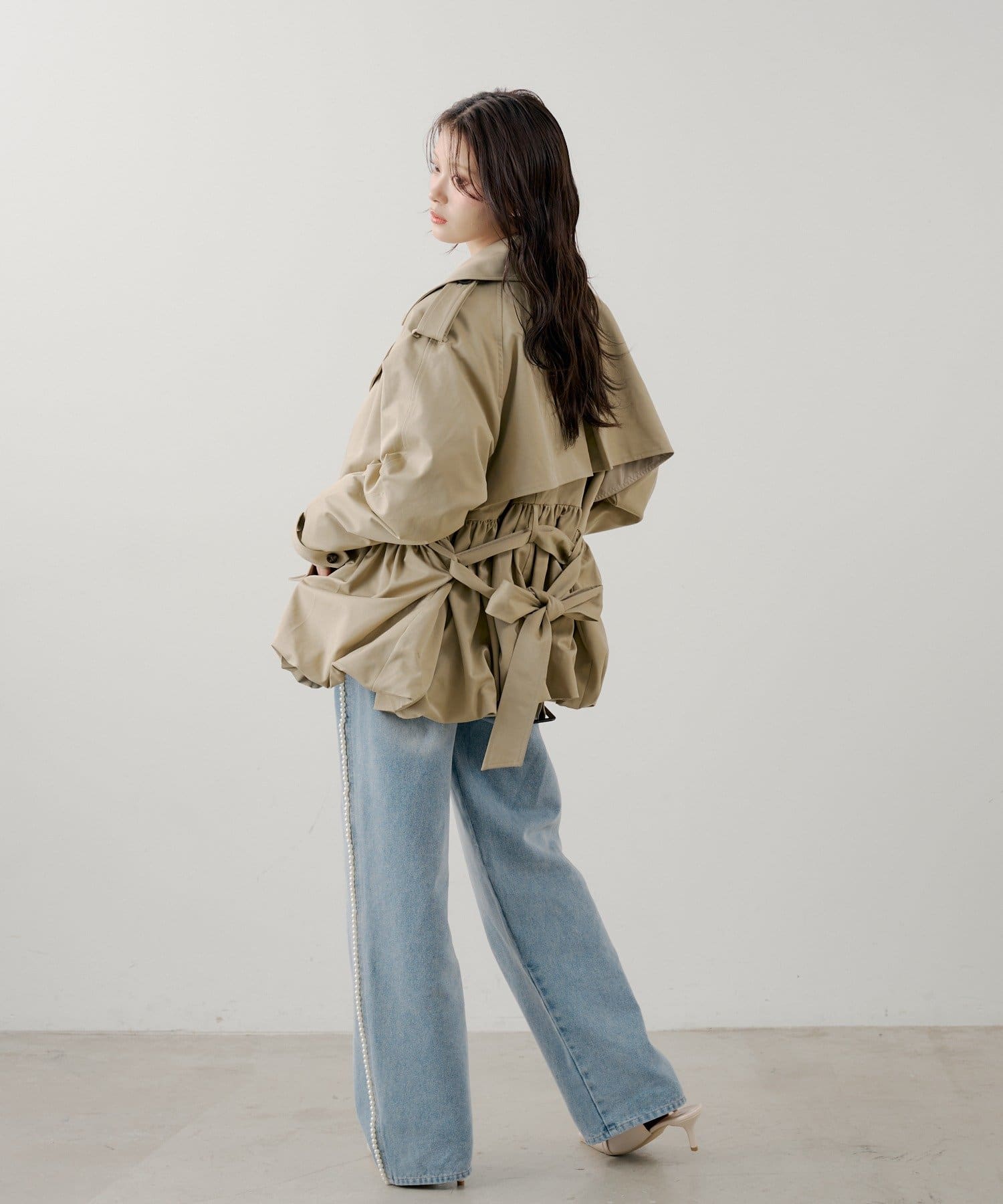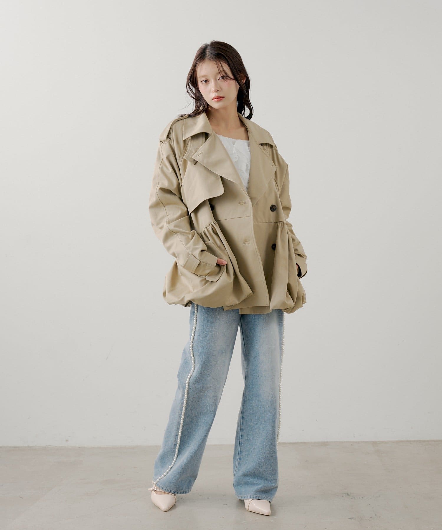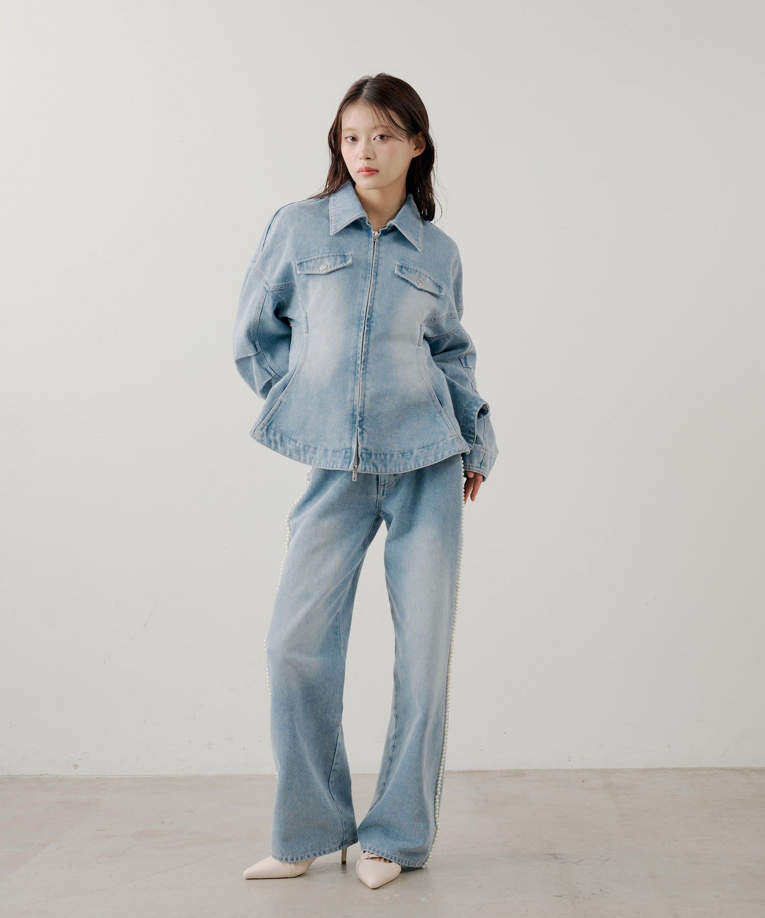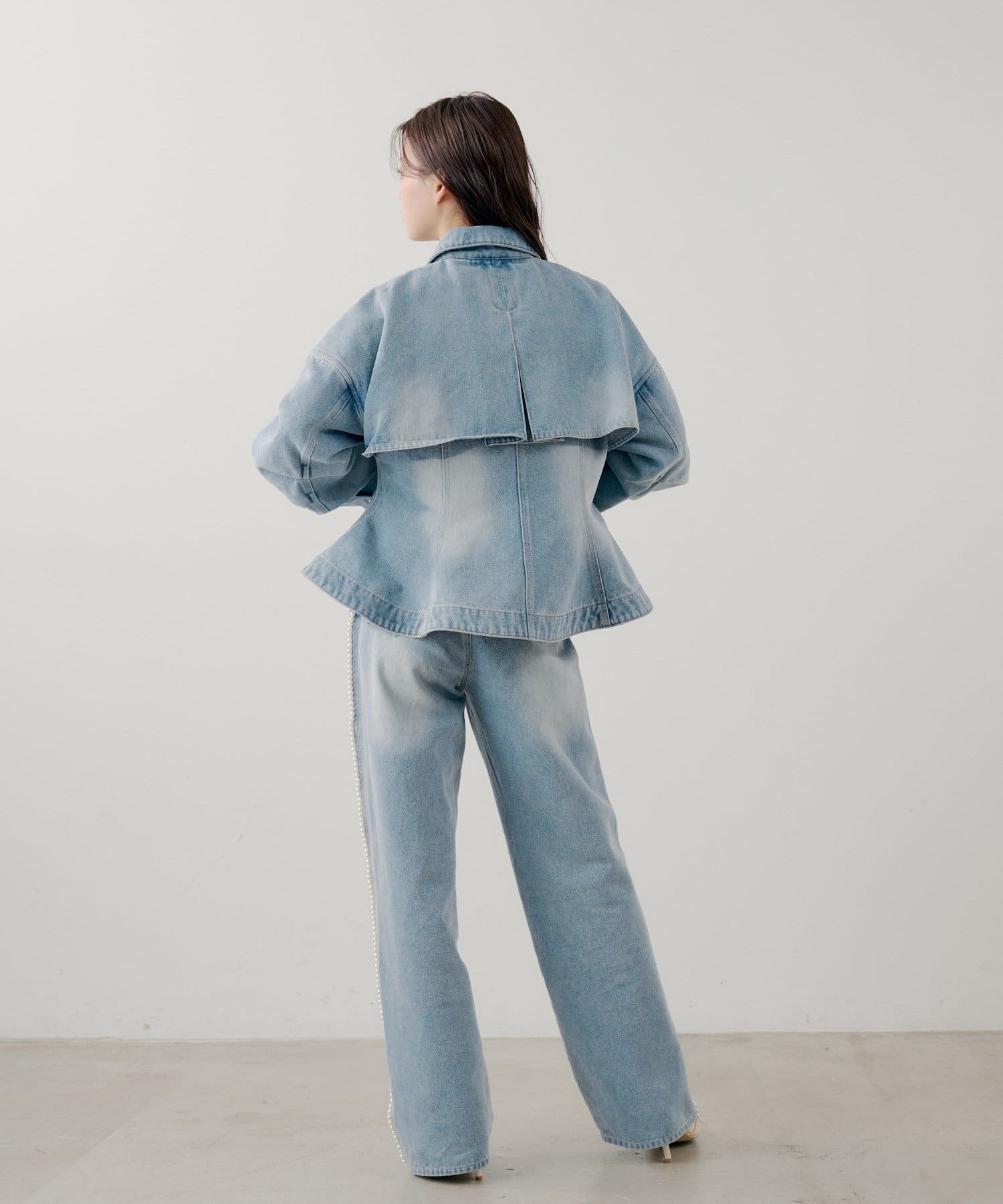・サイドにあしらわれた繊細なパールラインが、カジュアルなデニムスタイルに華やかさを添えます。