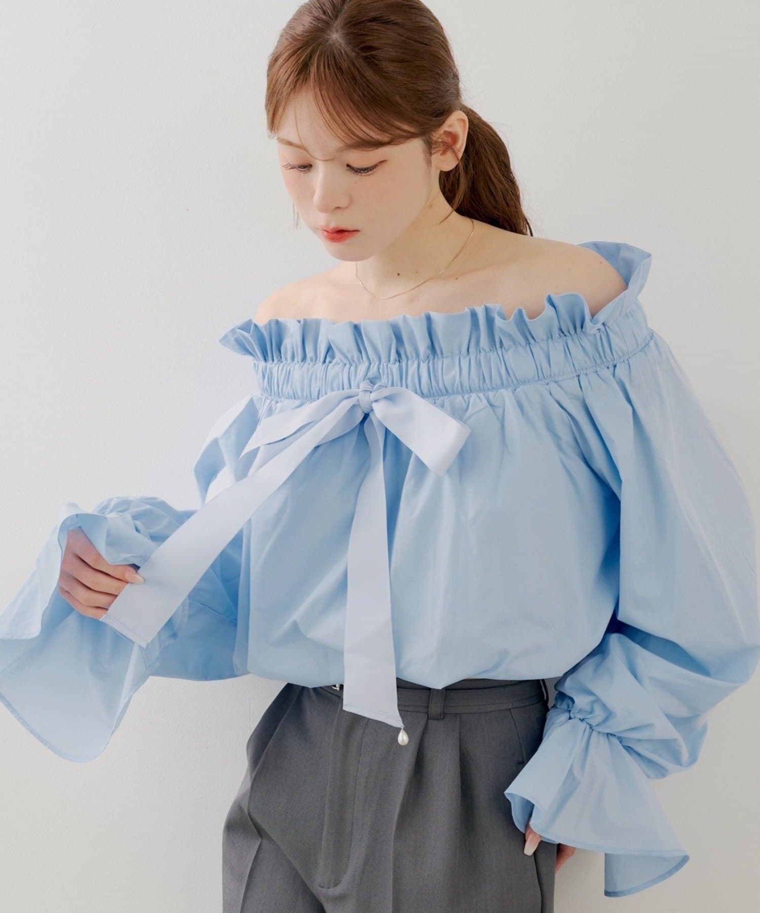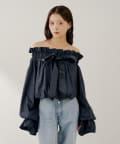 ふんわりとしたシルエットと、繊細なフリルが魅力の2wayスタンドフリルブラウス