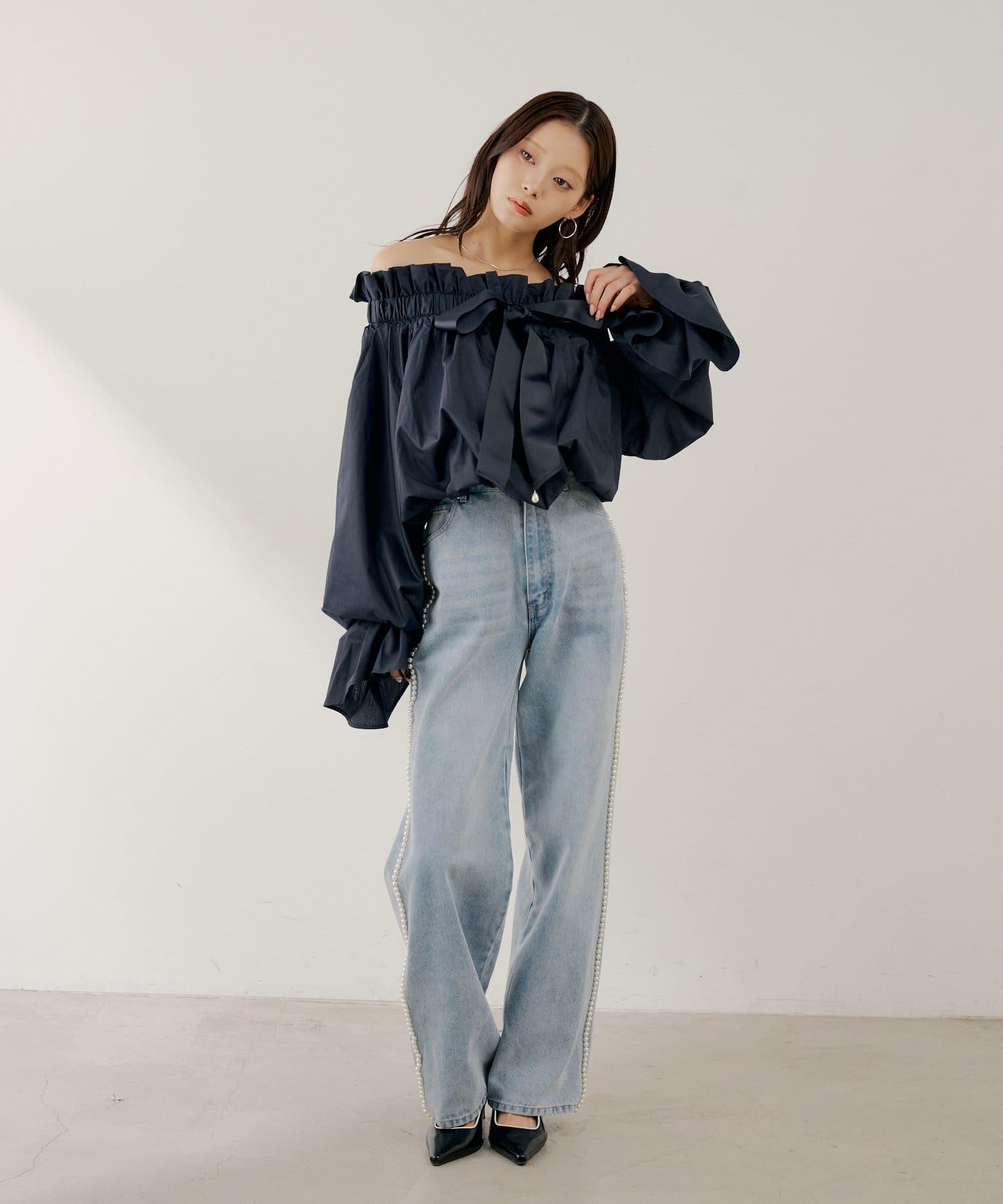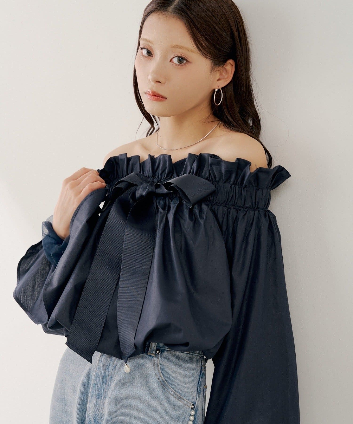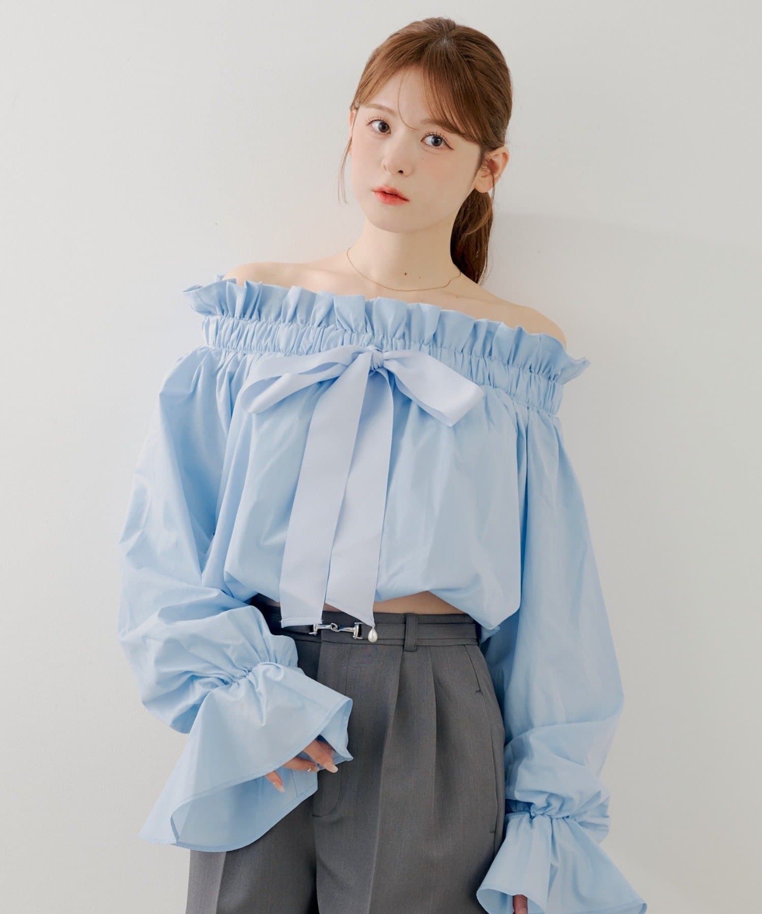 ・スタンドカラーとオフショルダーの2wayで、その日の気分やシーンに合わせて着こなしを楽しめます。