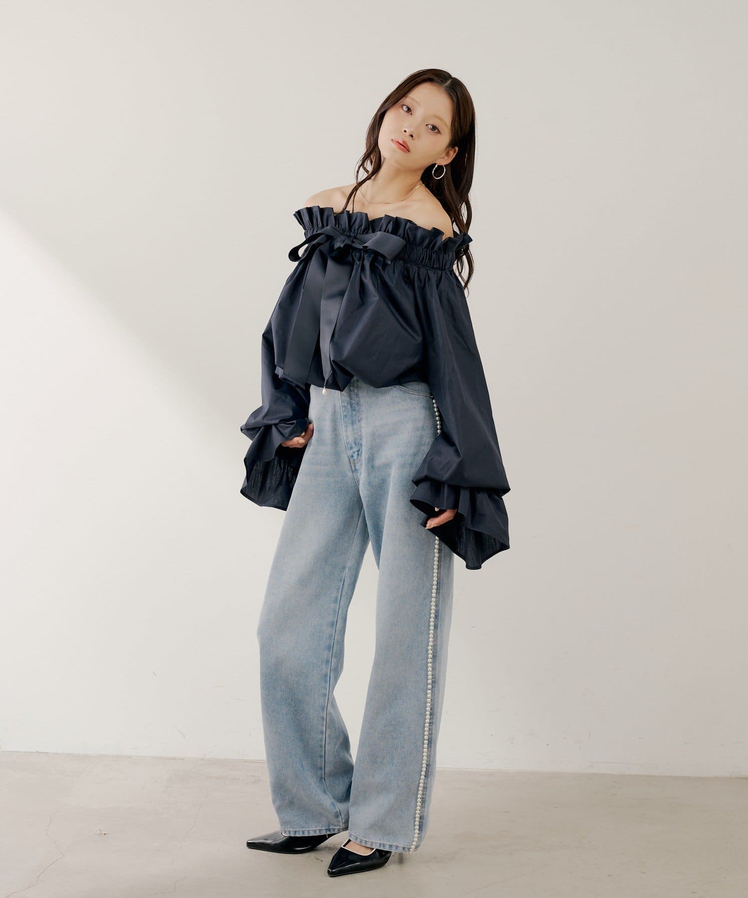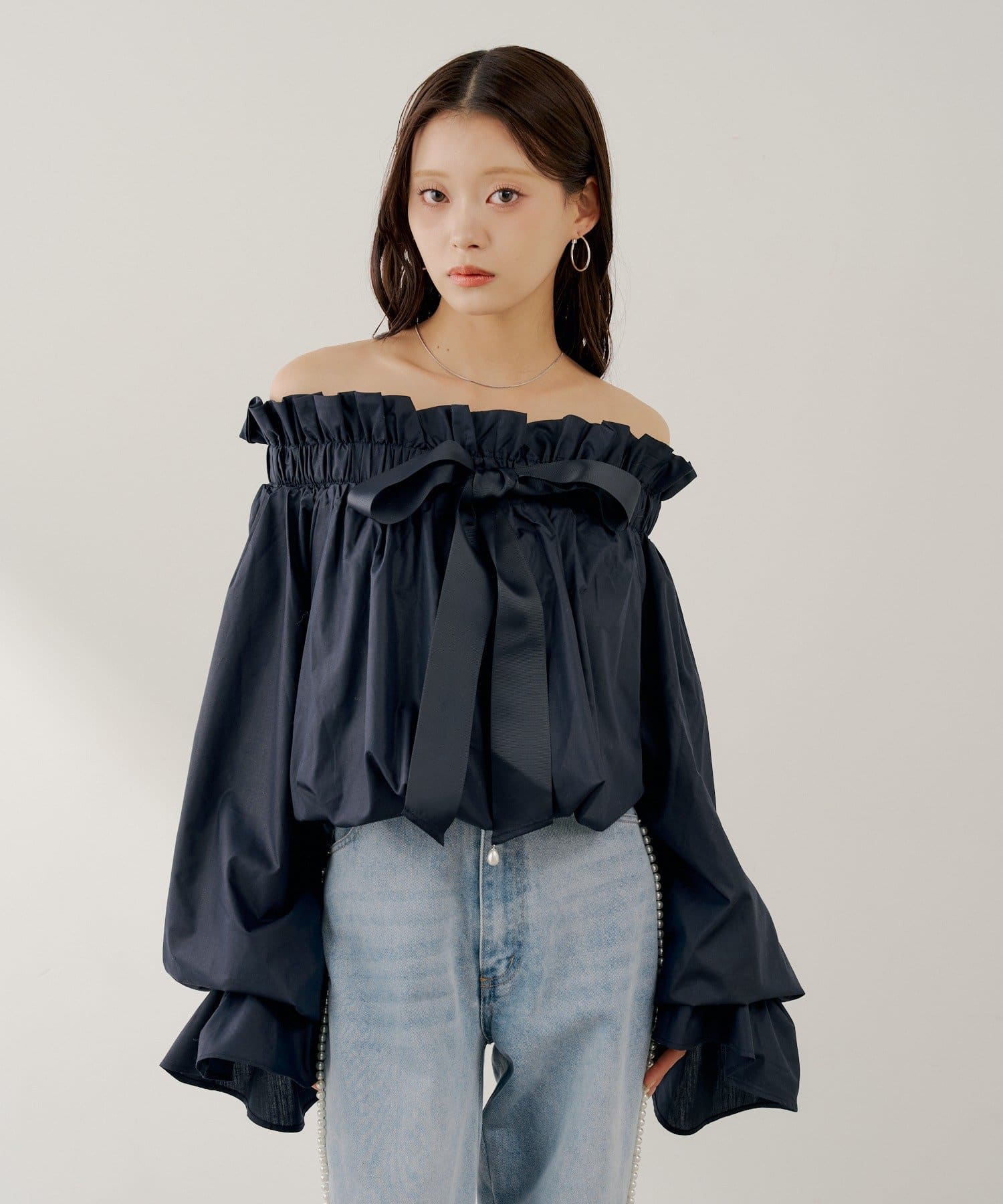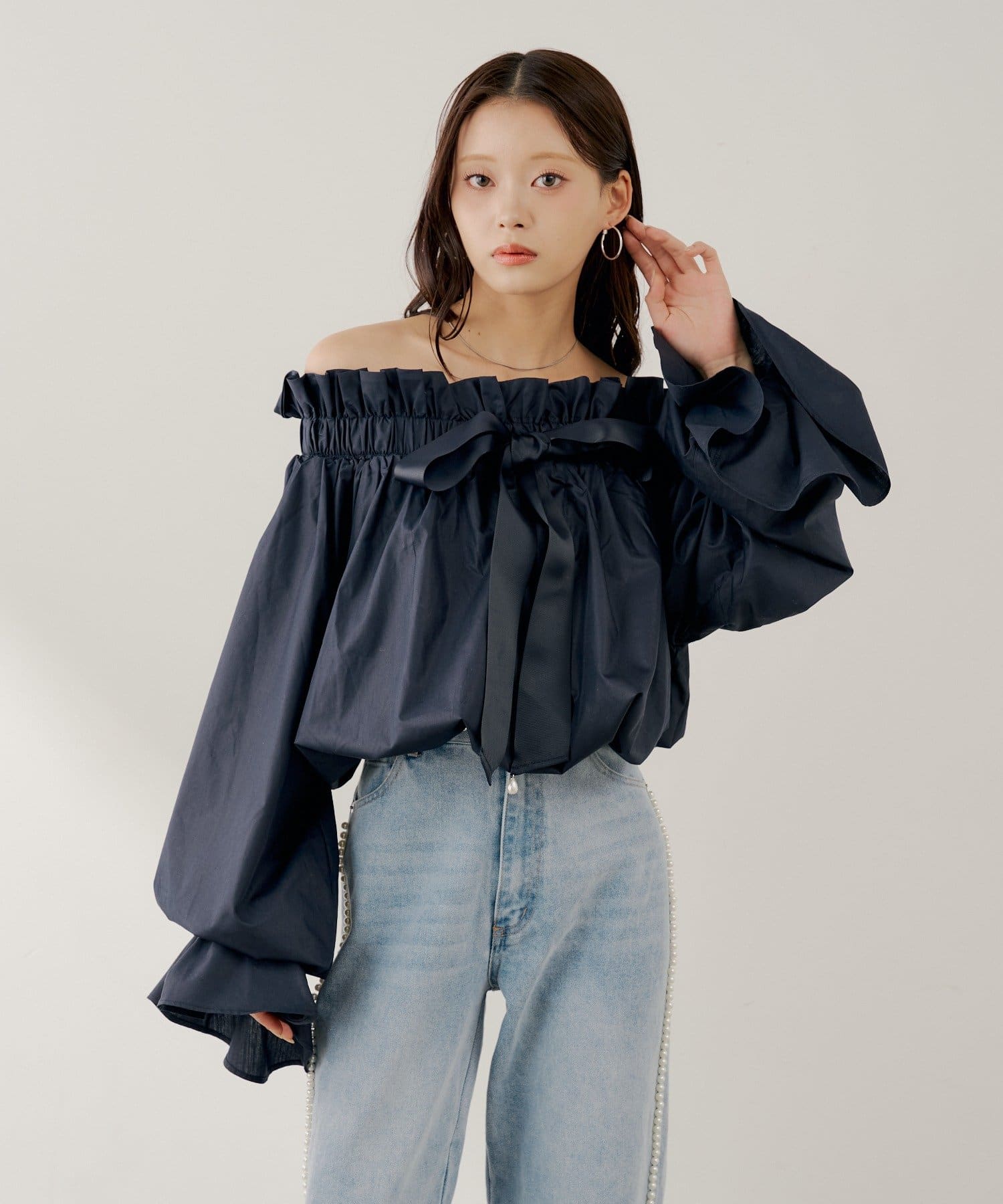 ・スタンドカラーとオフショルダーの2wayで、その日の気分やシーンに合わせて着こなしを楽しめます。