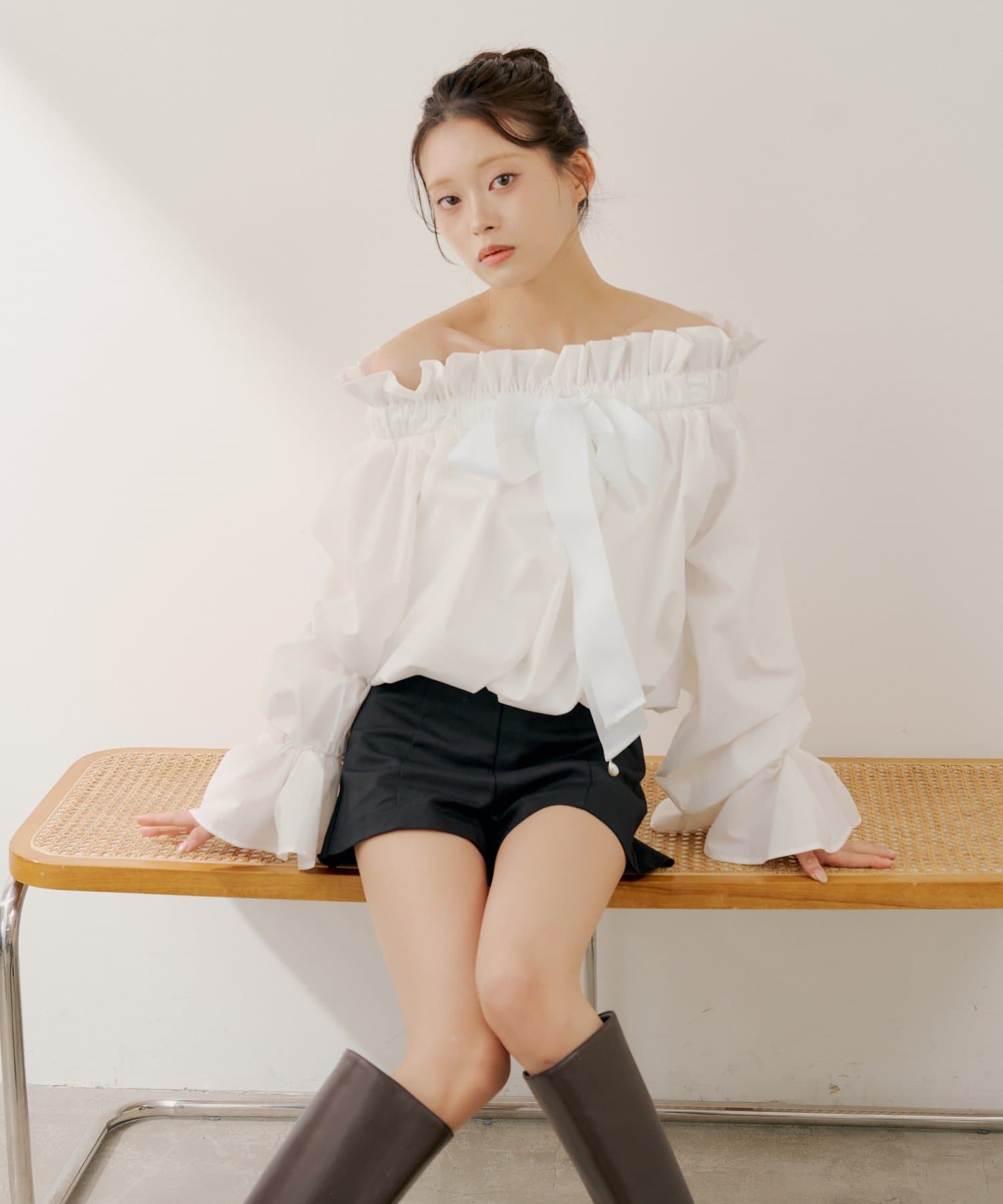 ・ミニボトムと合わせるとフェミニンなスタイルに仕上がります。