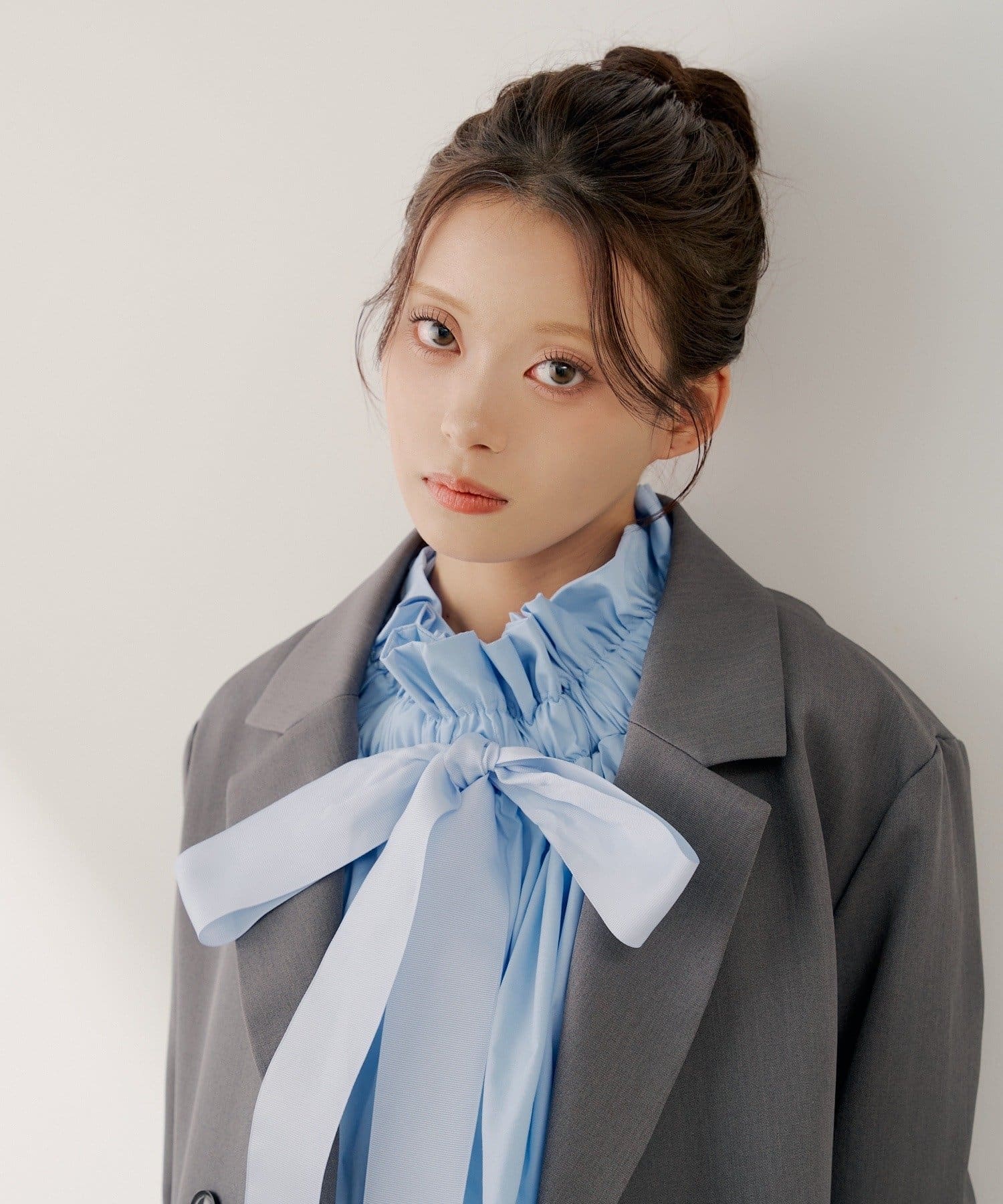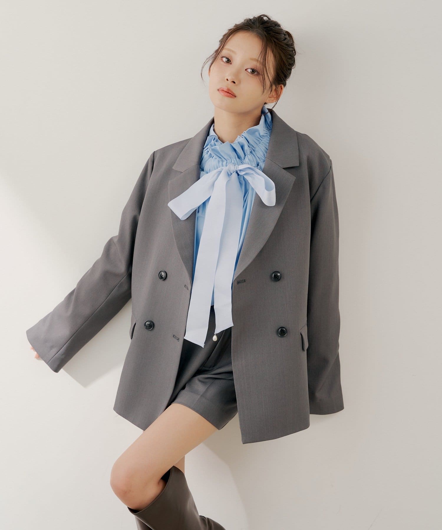 ・フロントのリボンタイが、フェミニンなアクセントに。