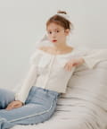 ・贅沢にあしらわれたダブルのレースフリルは、顔周りを明るく見せ、上品な印象を与えます。