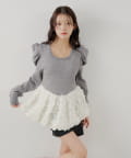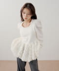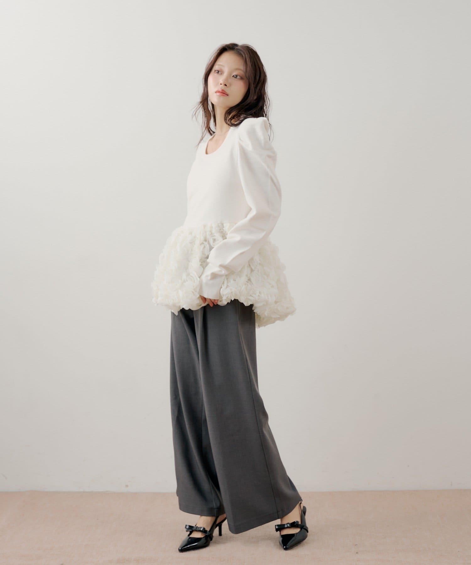 ・繊細なローズモチーフを贅沢にあしらったペプラムデザインが抜け感をプラスしてくれます。