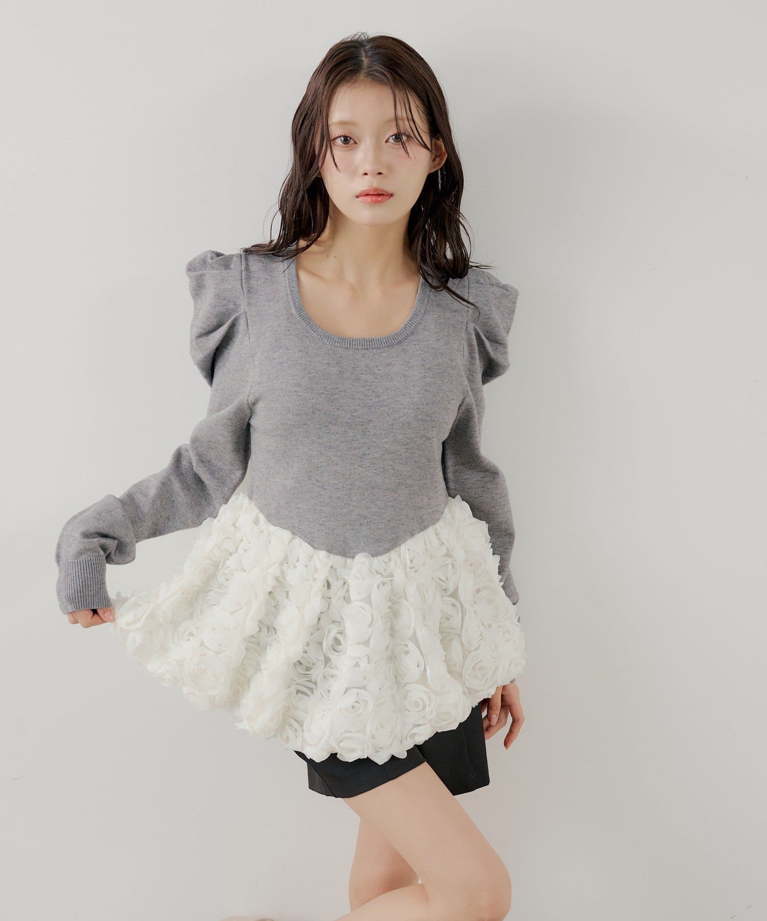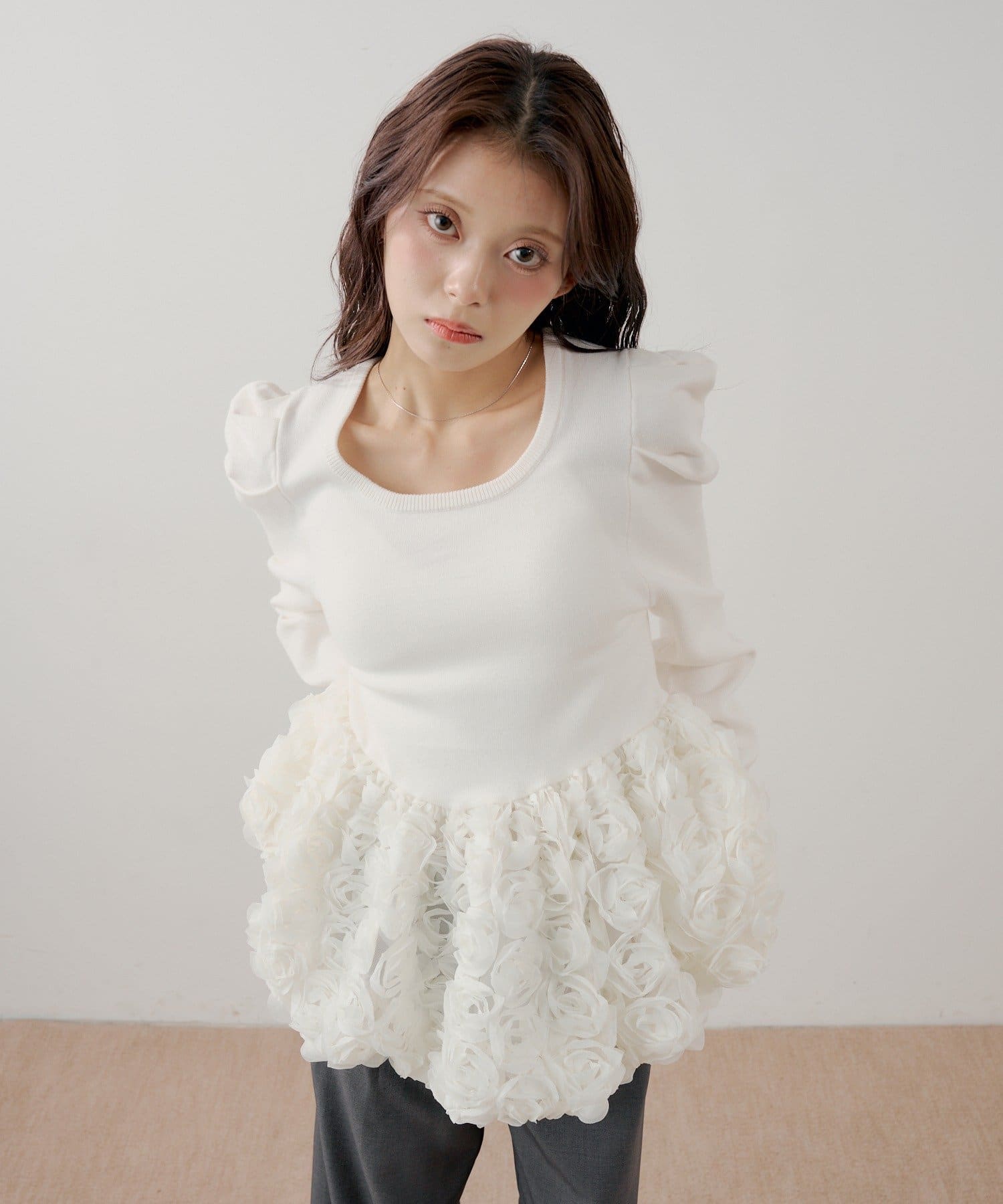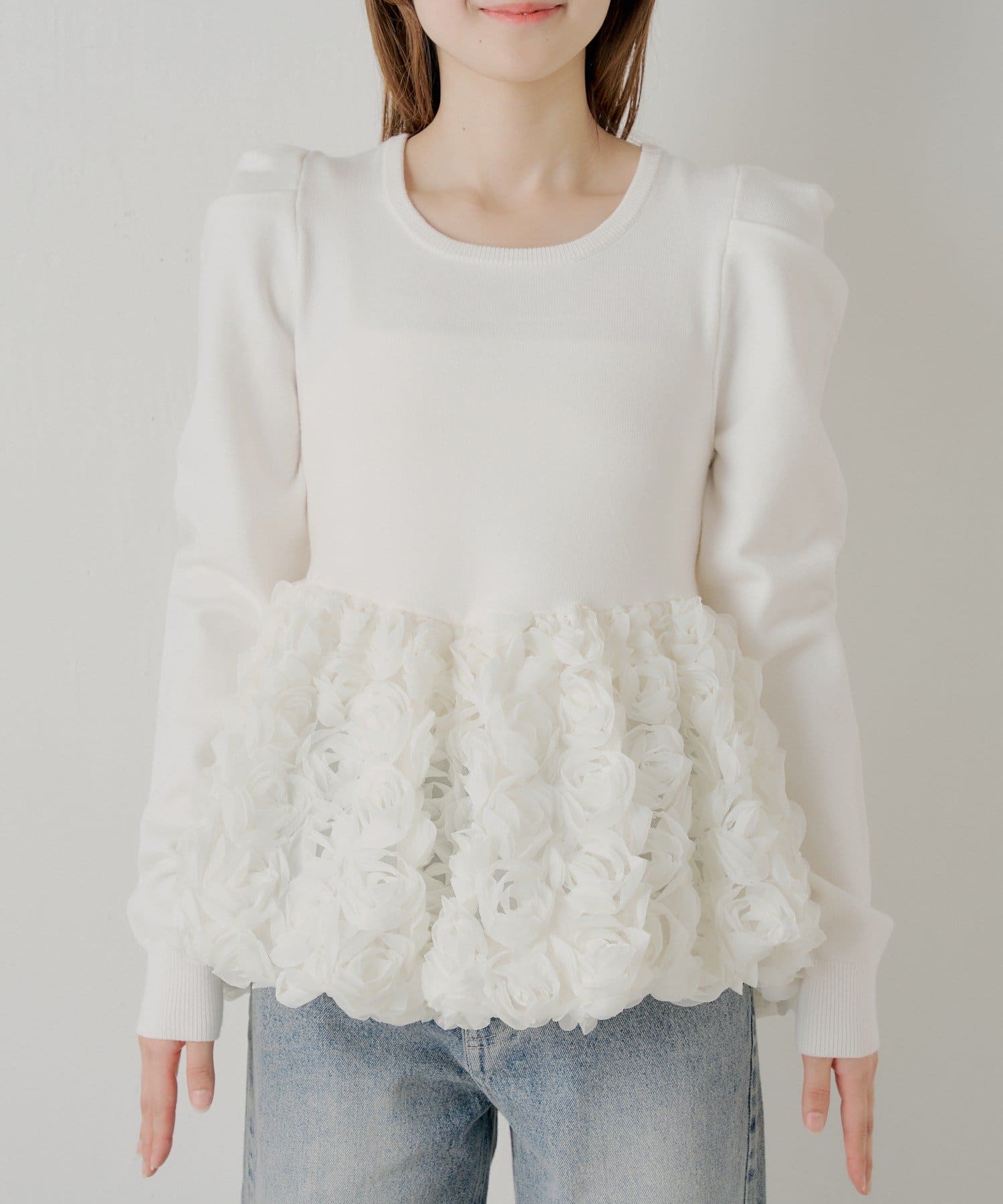 TOP > Chico > レディース > トップス > ニット/セーター > 【SALON by Chico】パワショルローズペプラムニット