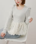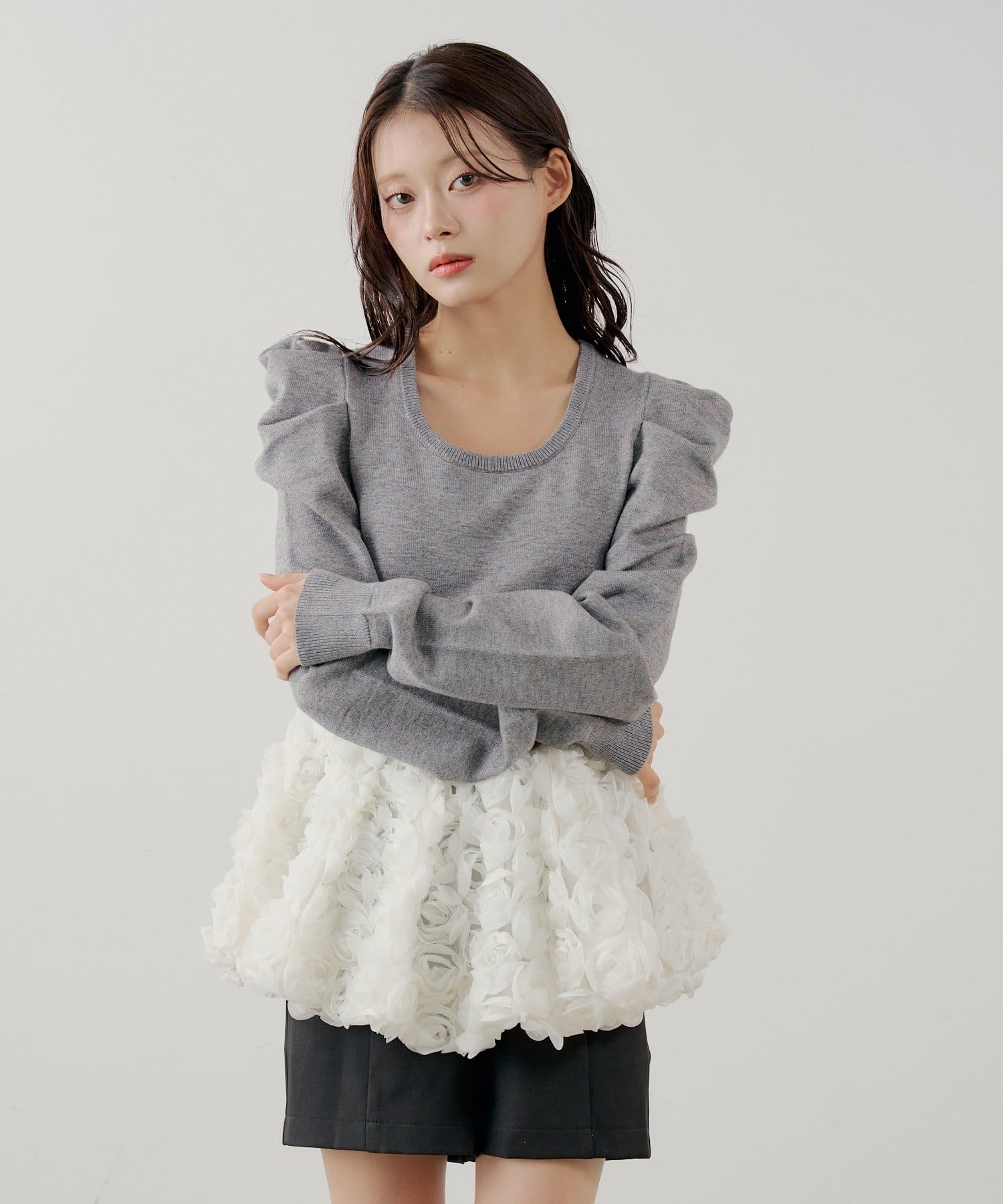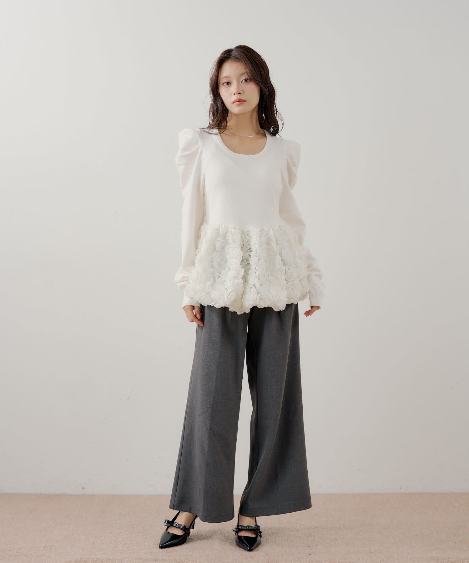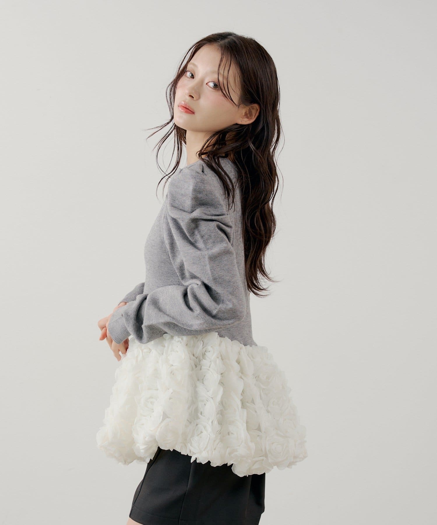 TOP > Chico > レディース > トップス > ニット/セーター > 【SALON by Chico】パワショルローズペプラムニット