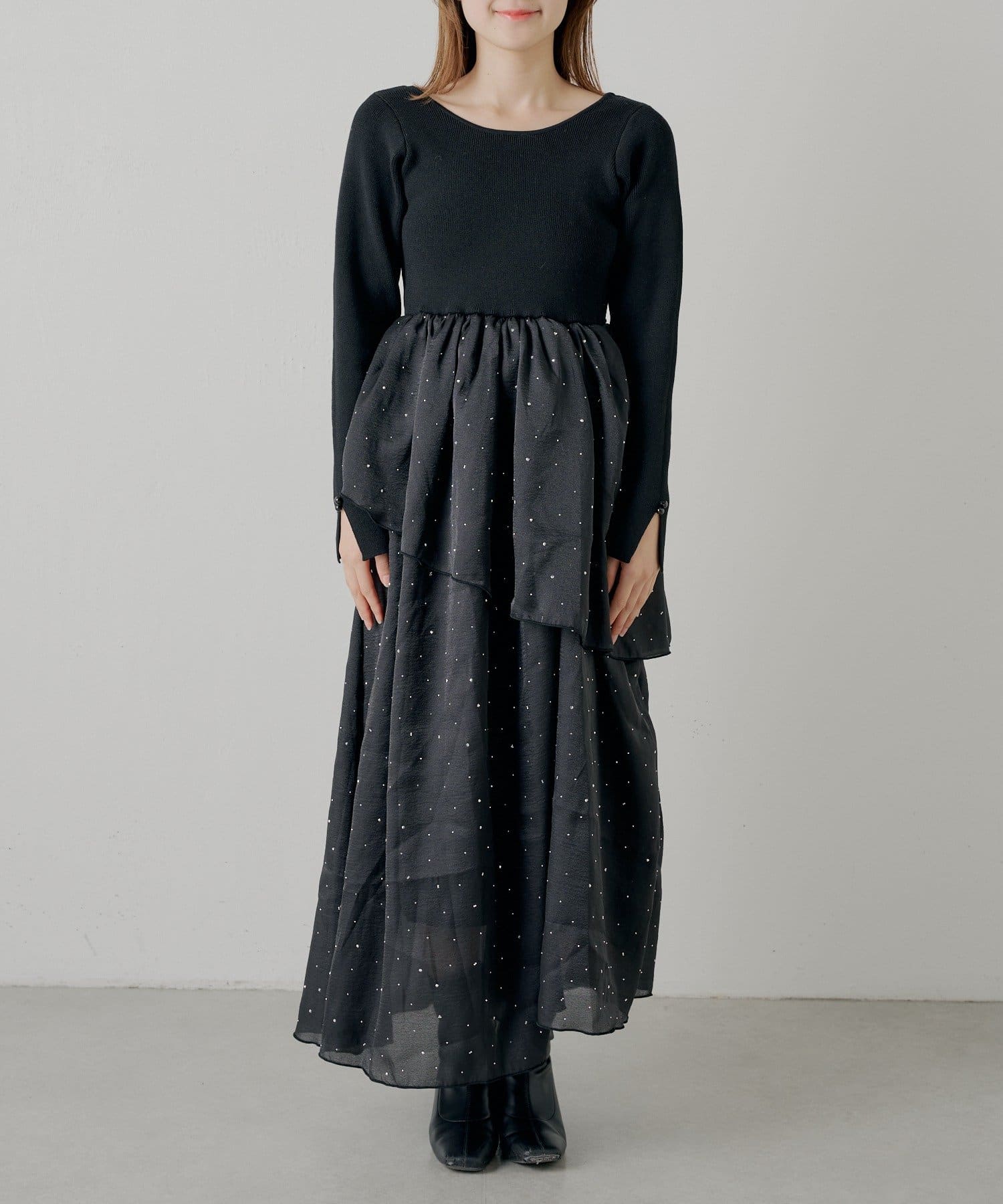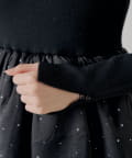 全体に散りばめられたパールが目を惹くボリュームワンピース登場!