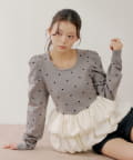 ・ふんわりと広がるペプラムと、トレンドのドット柄が目を惹くニットトップス。
