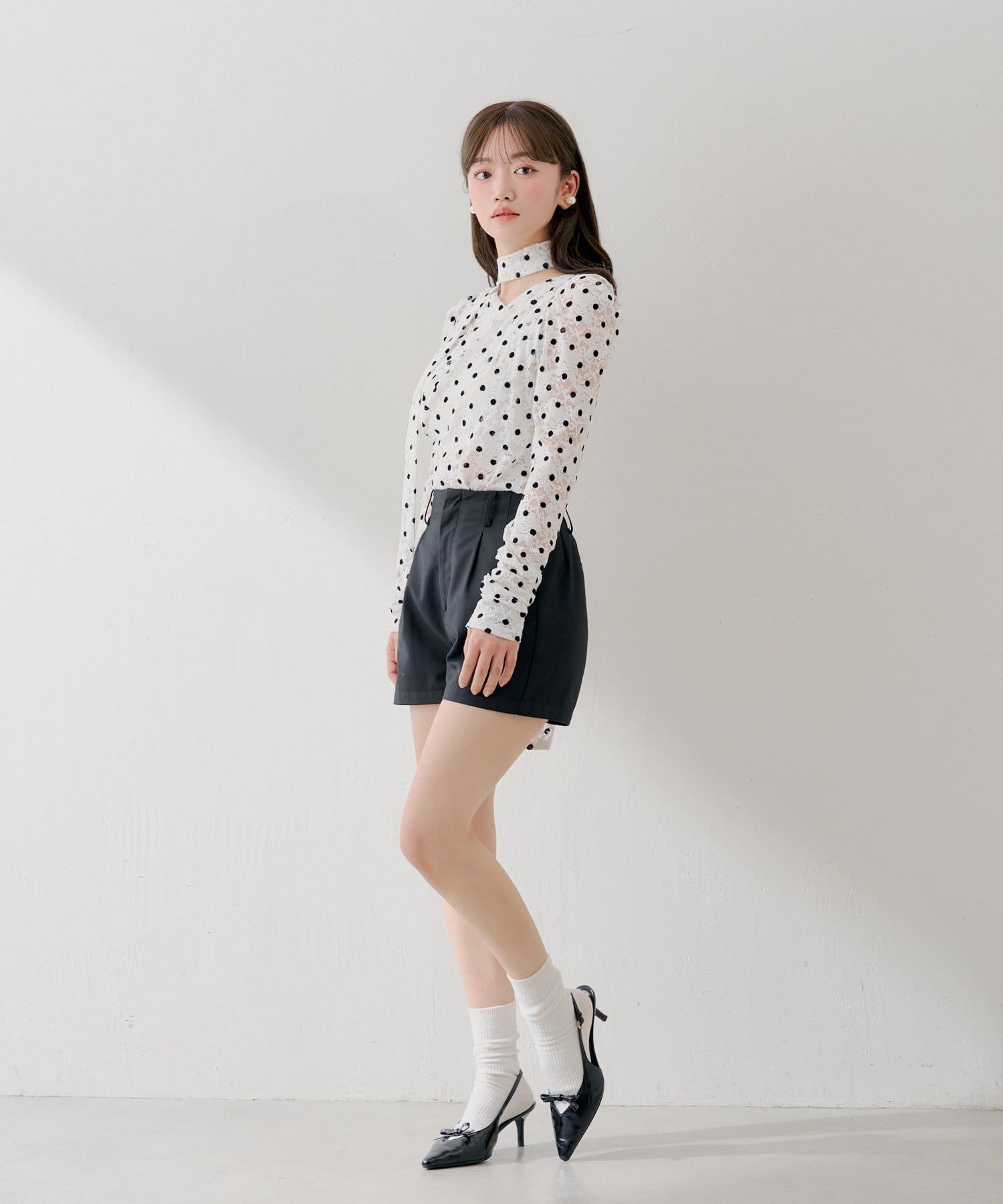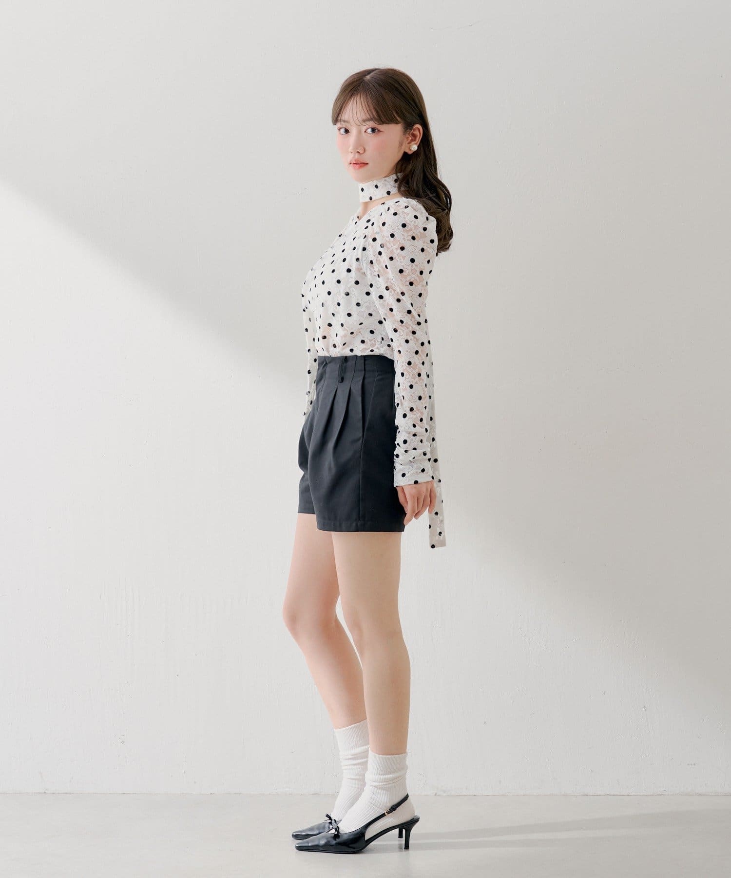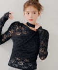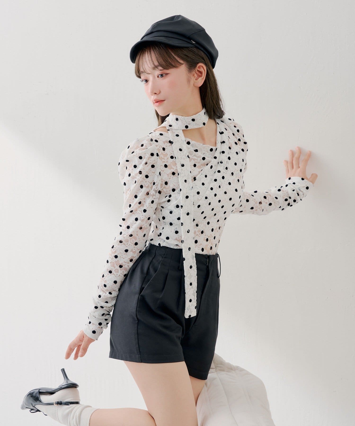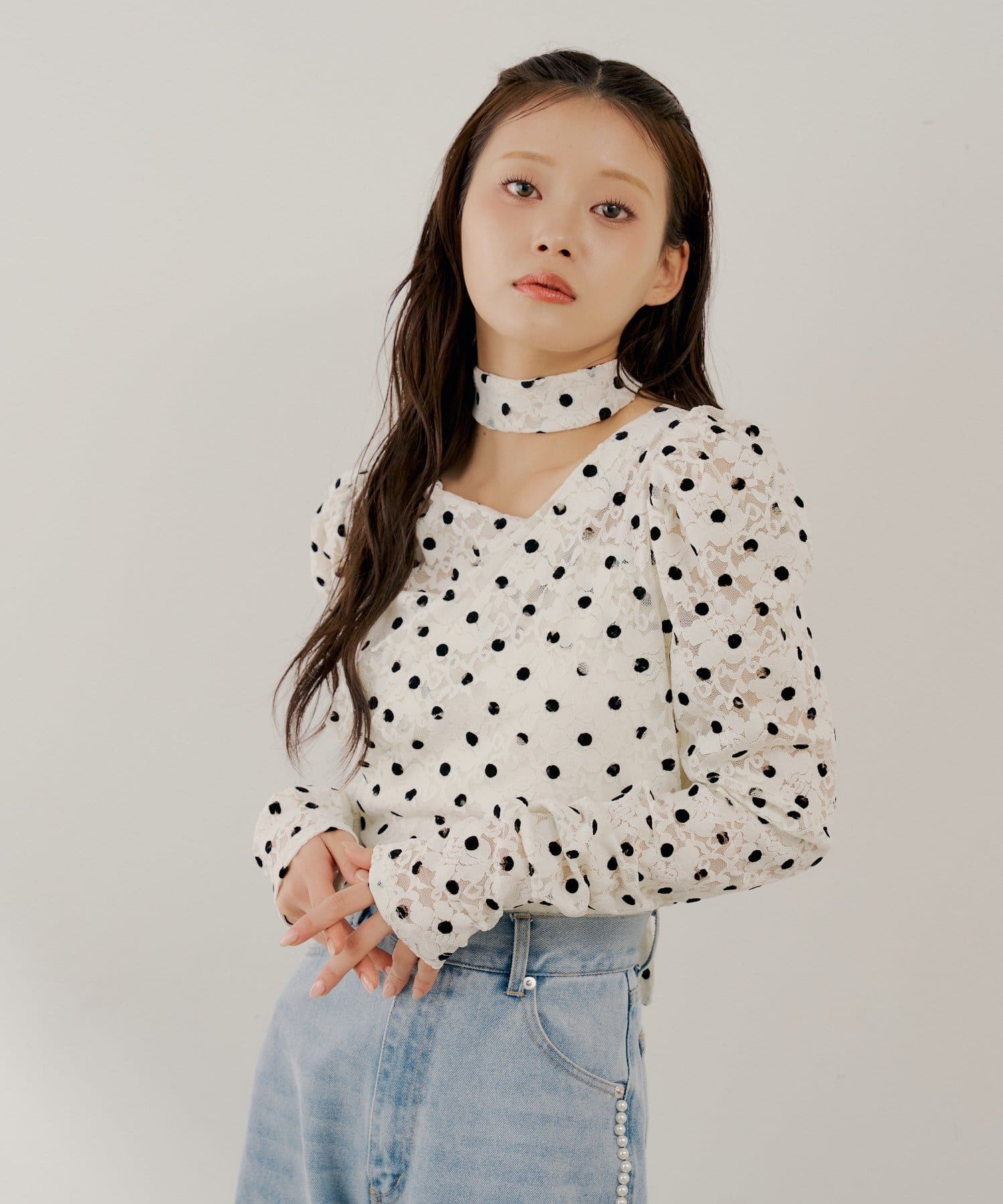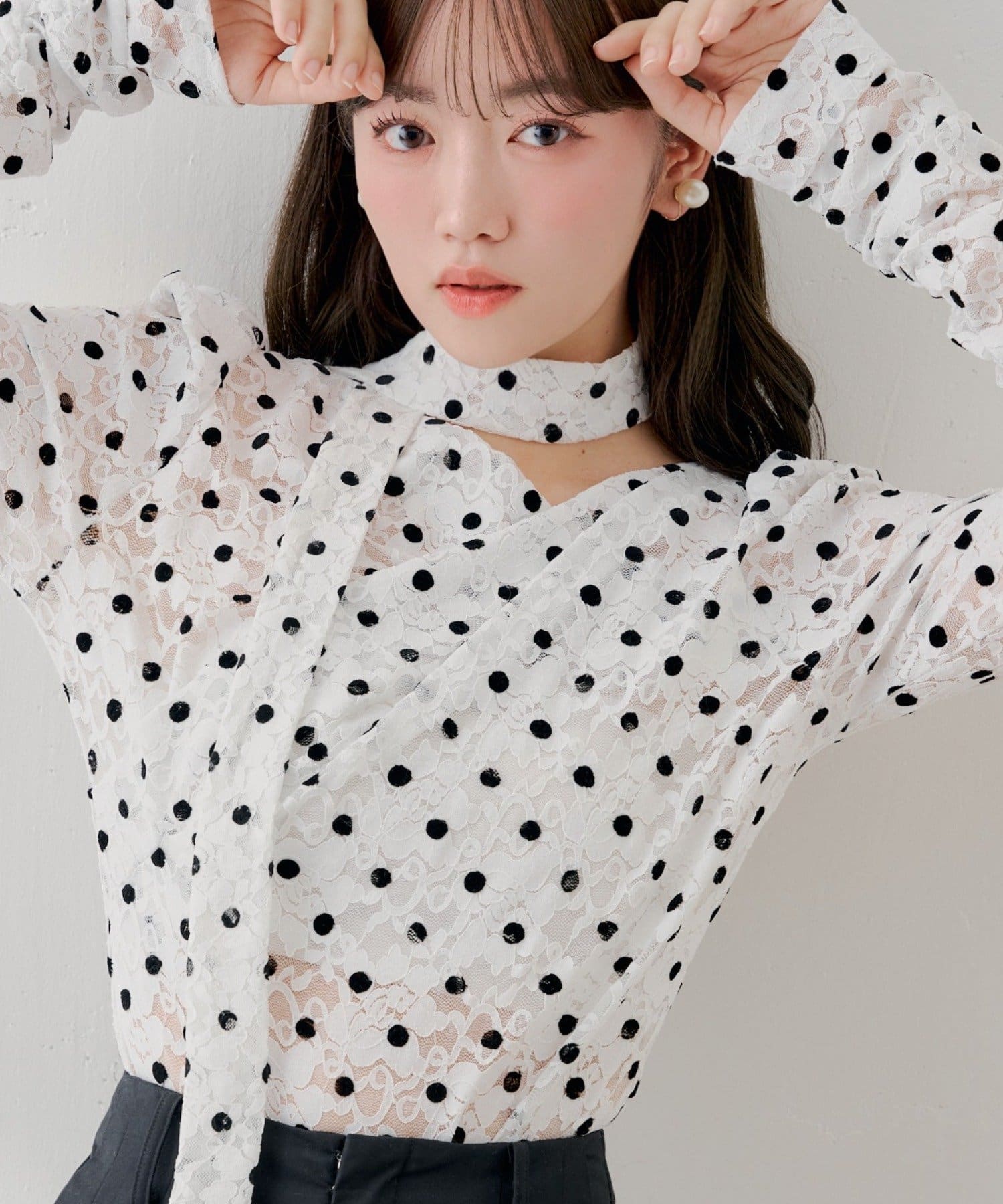 3/12(木)0:00販売開始【SALON by Chico】チョーカー付きフロッキードットレーストップス