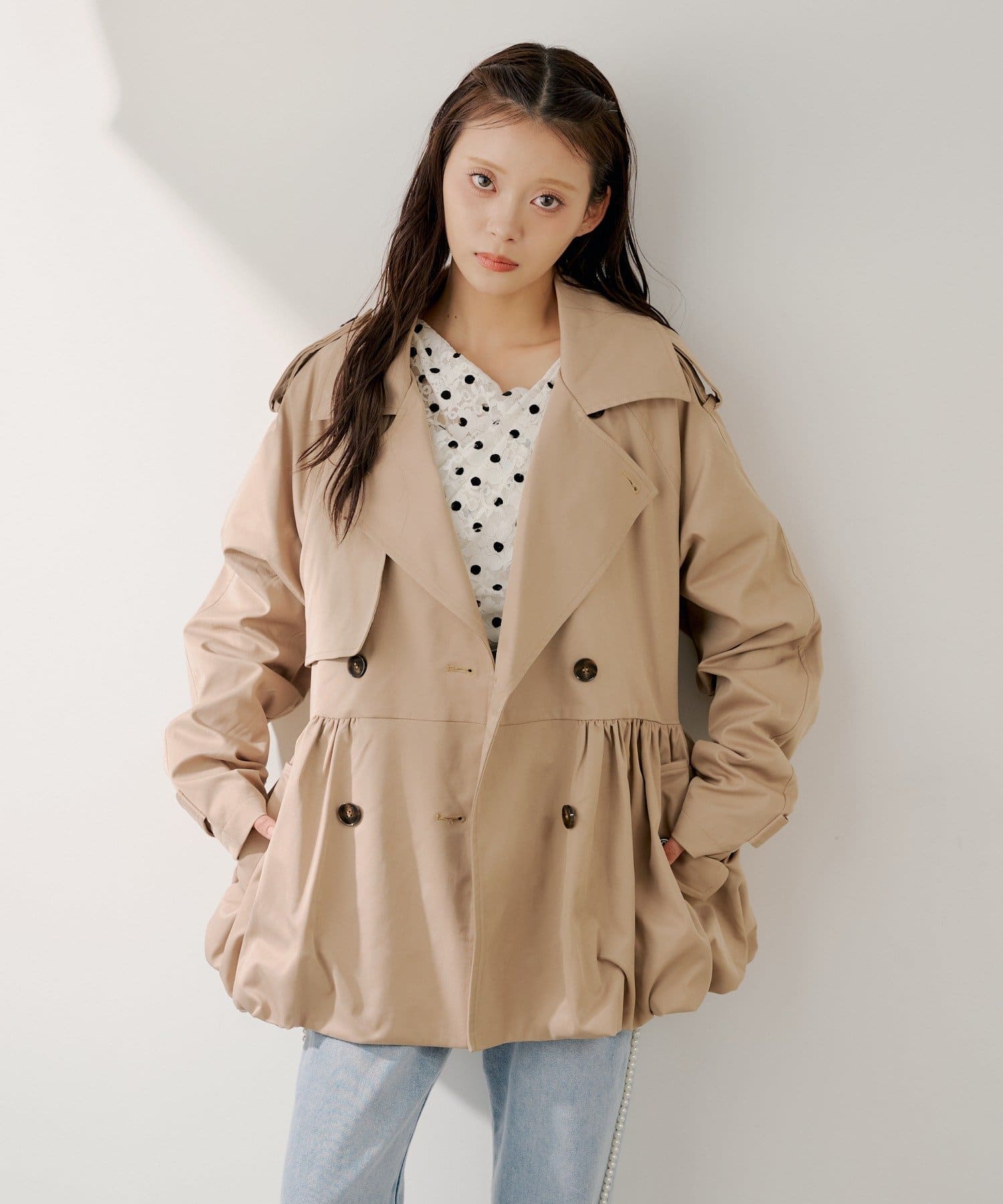 シンプルなボトムと合わせるだけで女性らしいスタイリングが完成します。