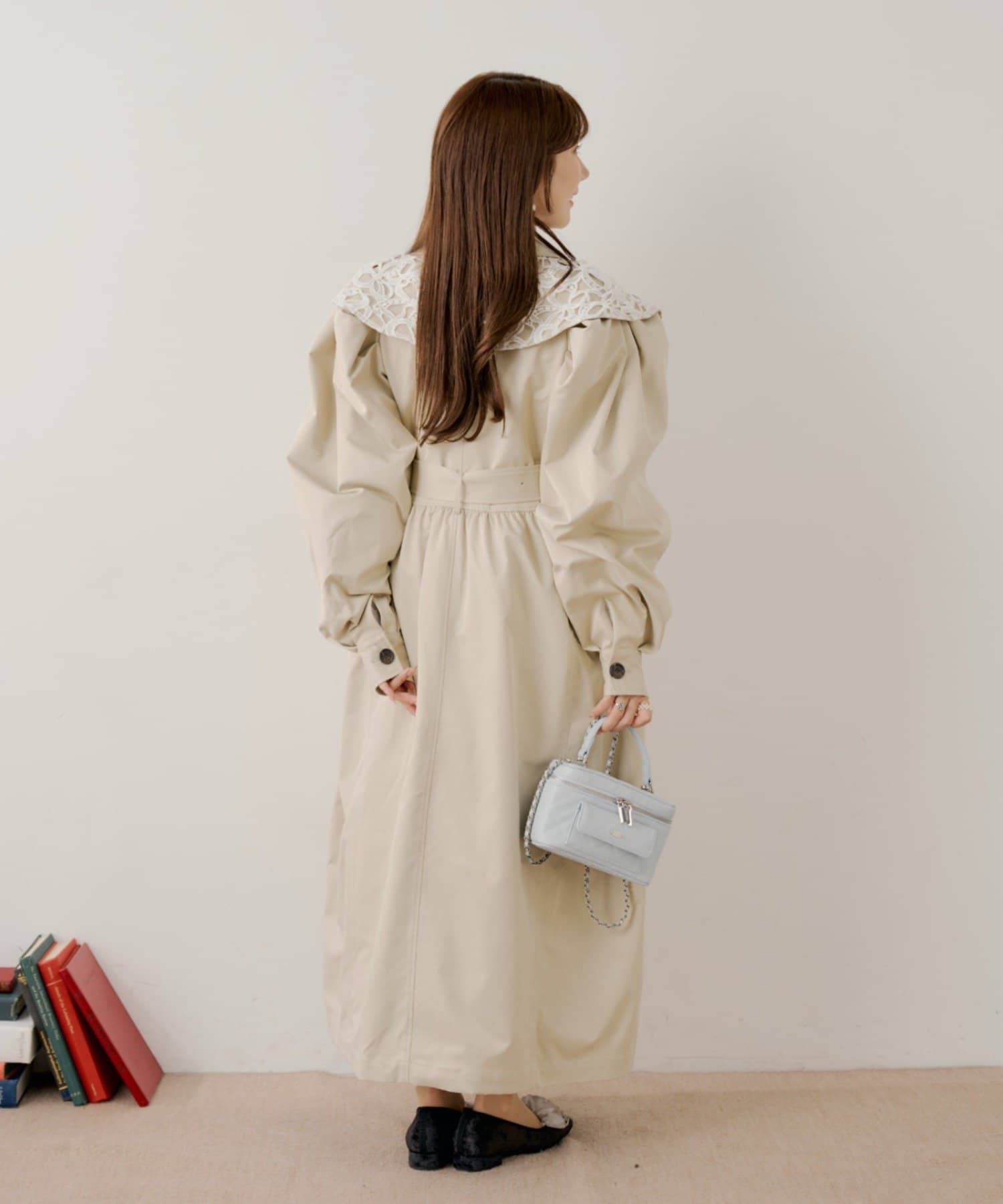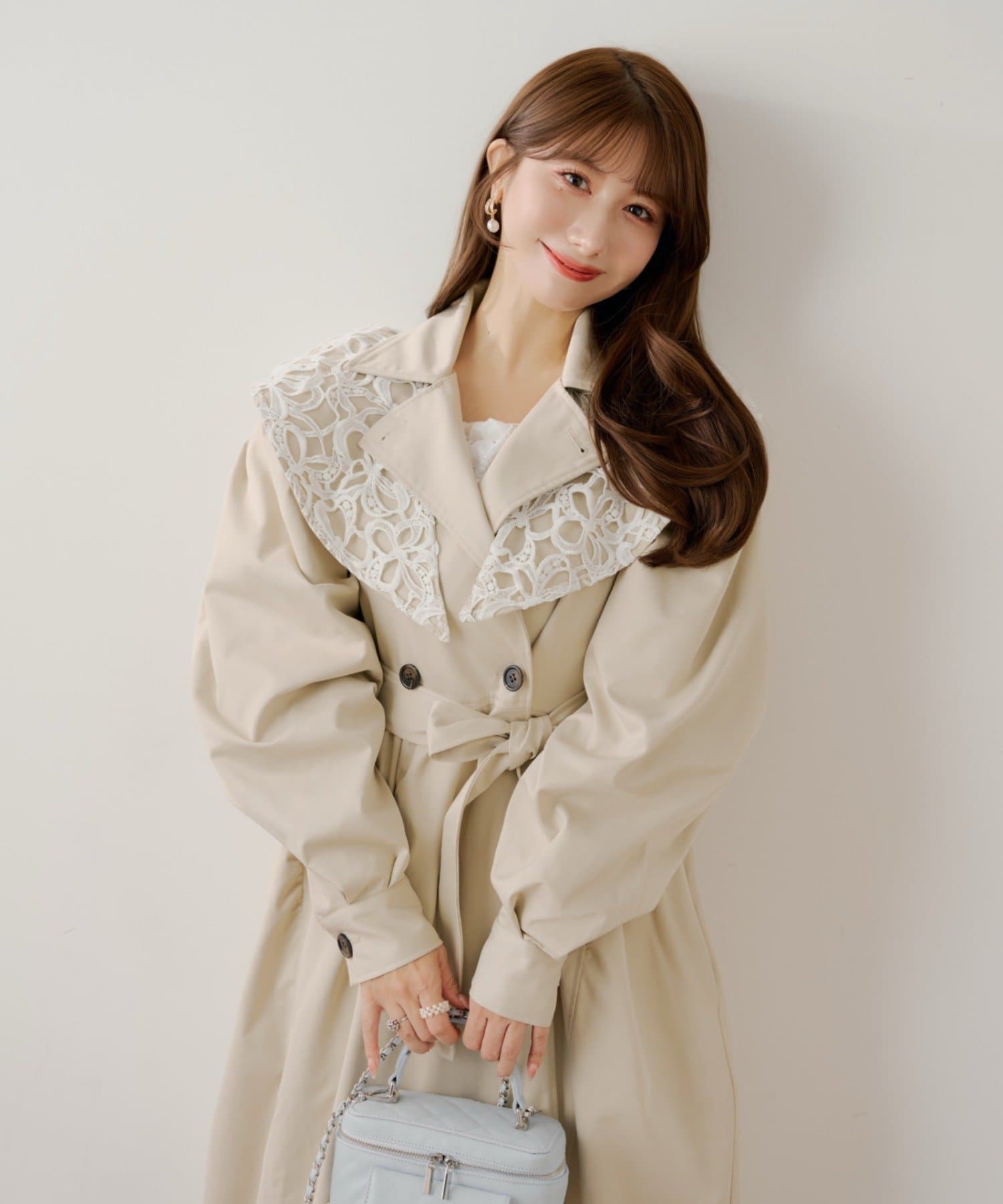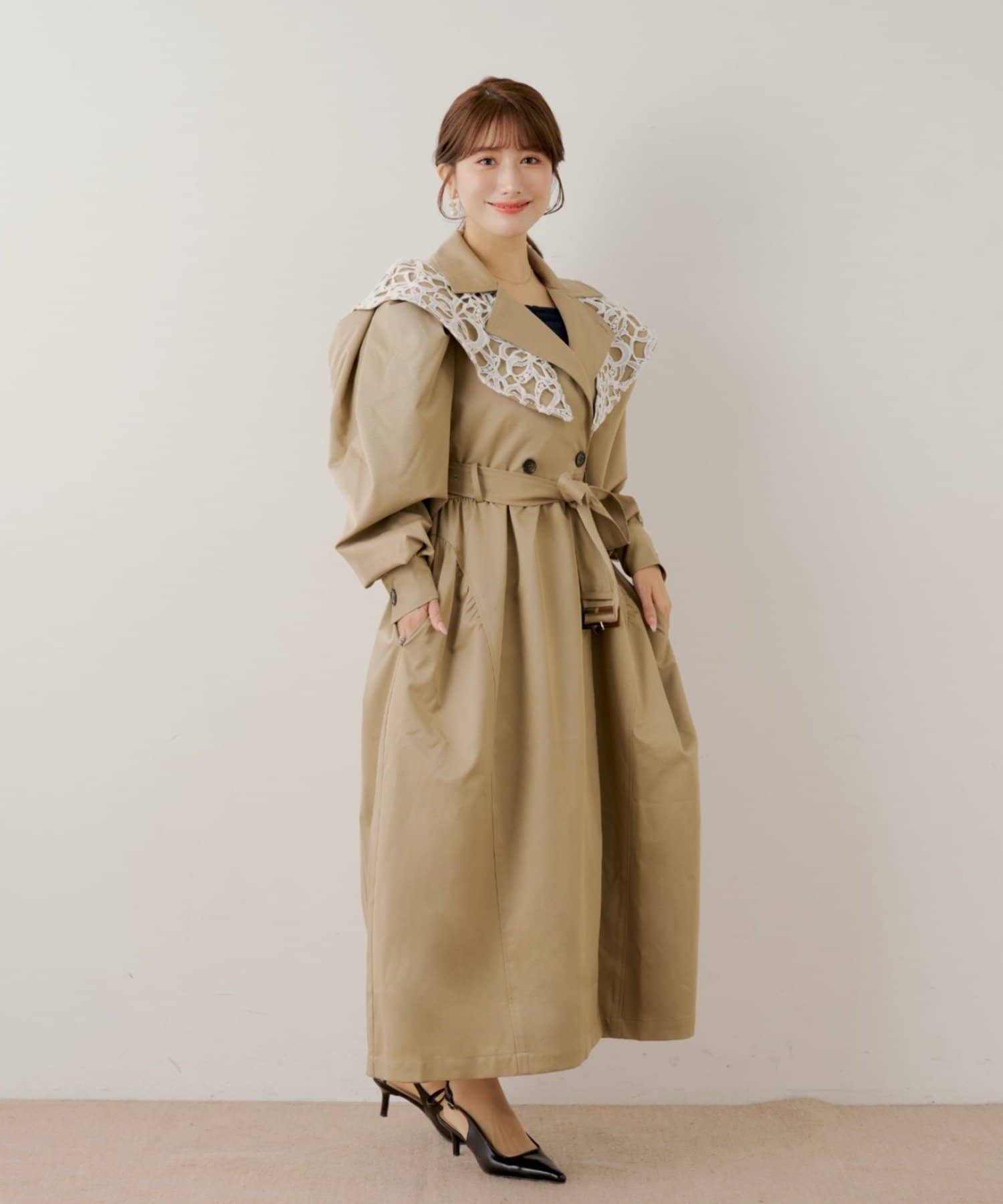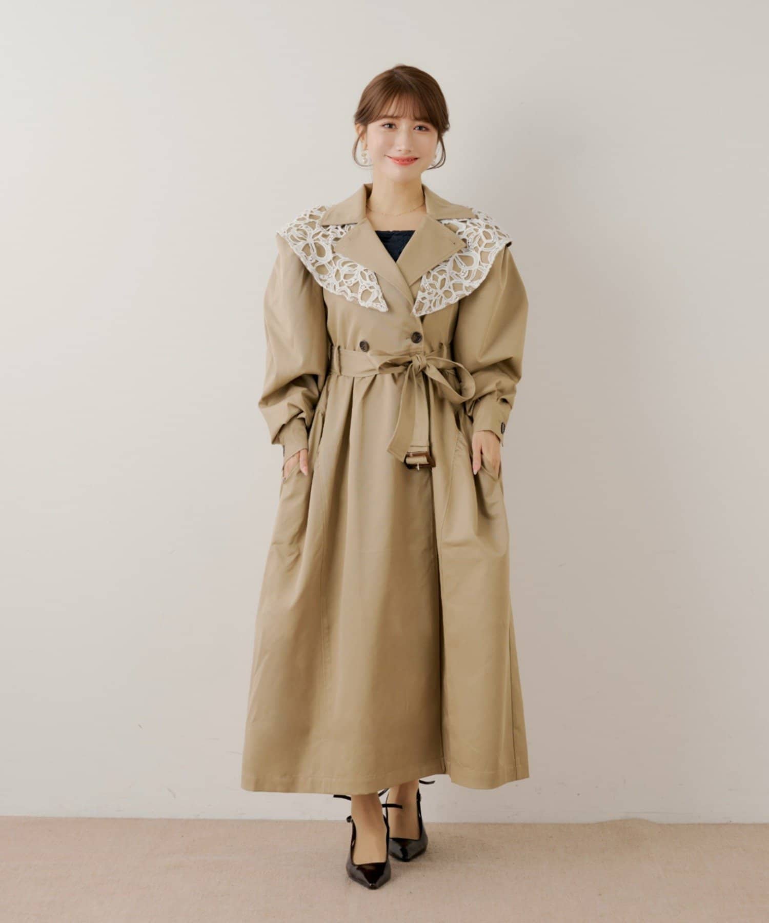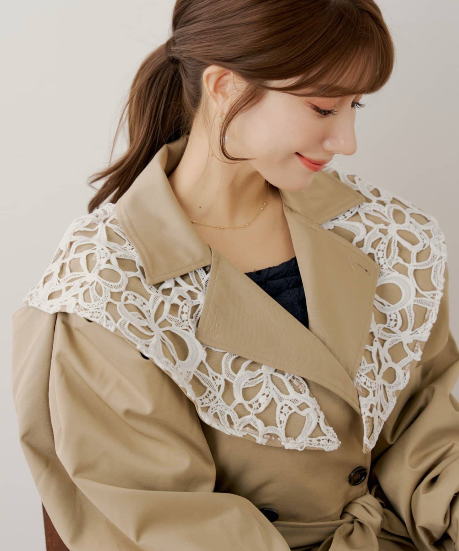 ・レース襟は取り外し可能で、シンプルなトレンチとしても着用できる嬉しい2way仕様。