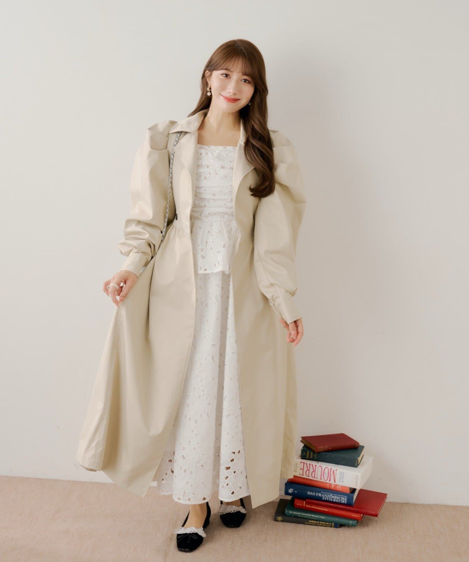 レース襟が目を惹く2way仕様のパワショルトレンチコート登場!