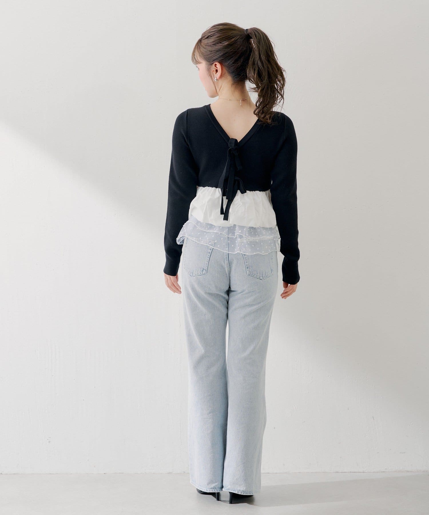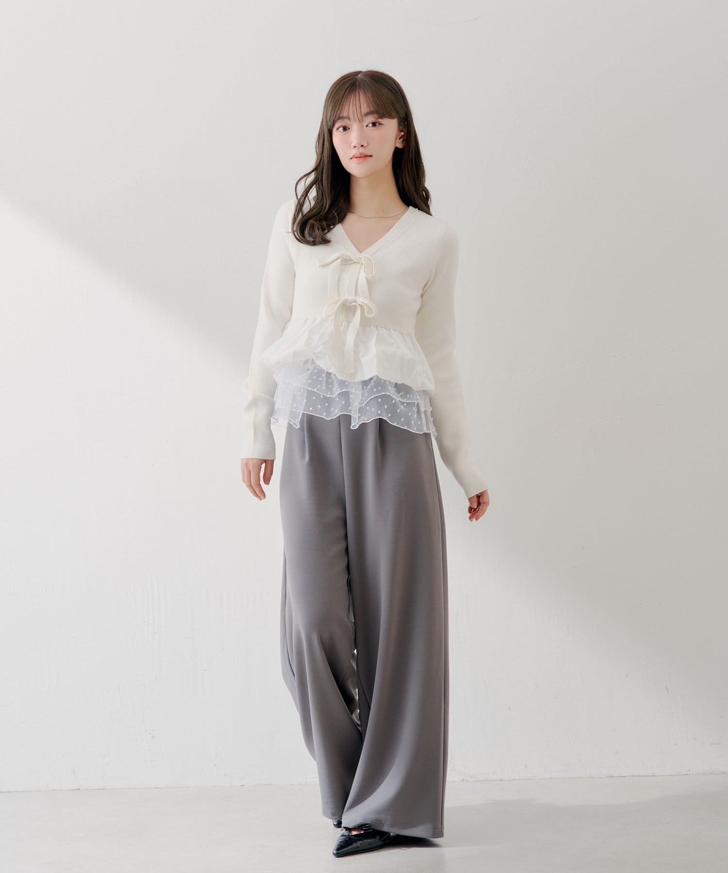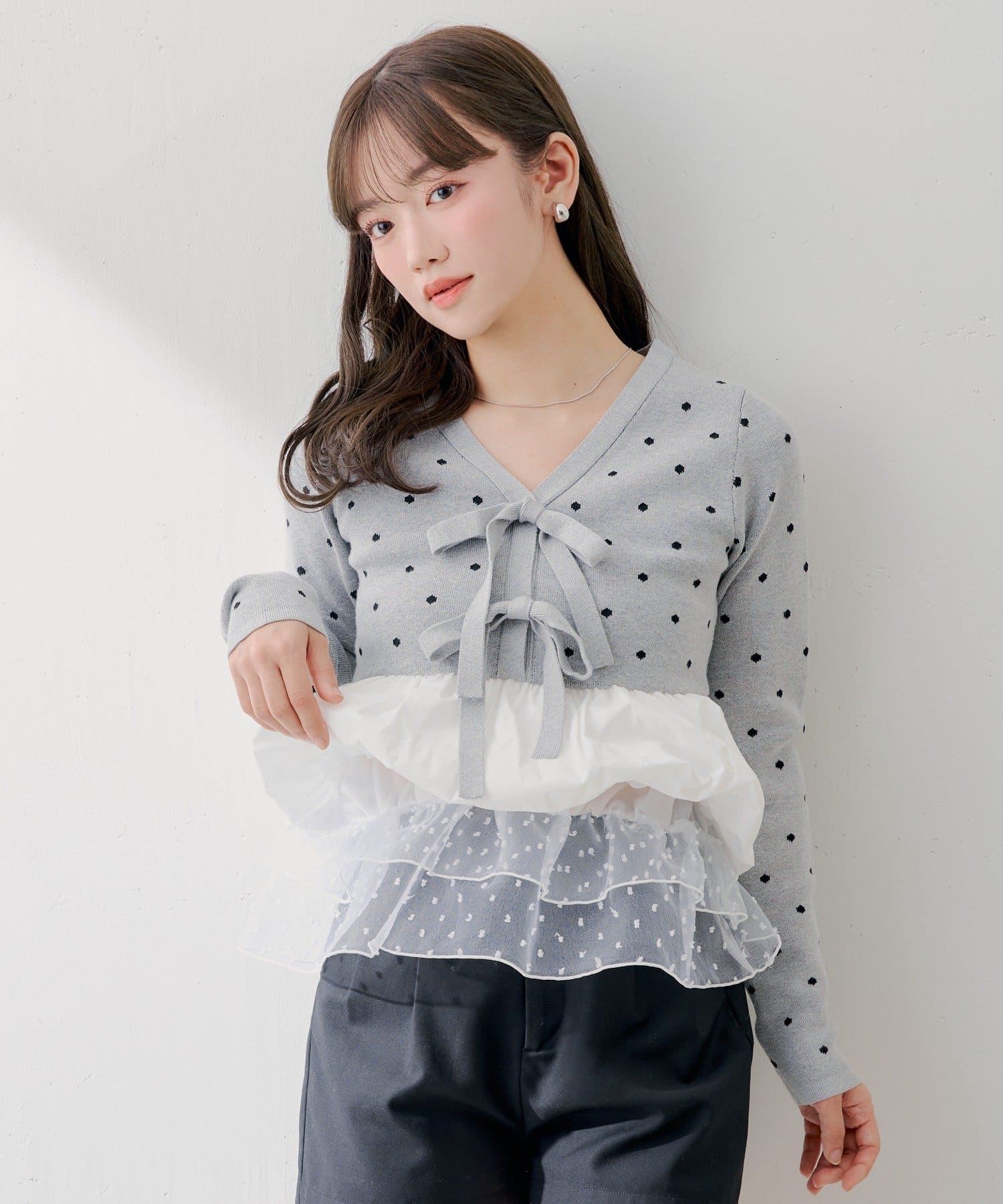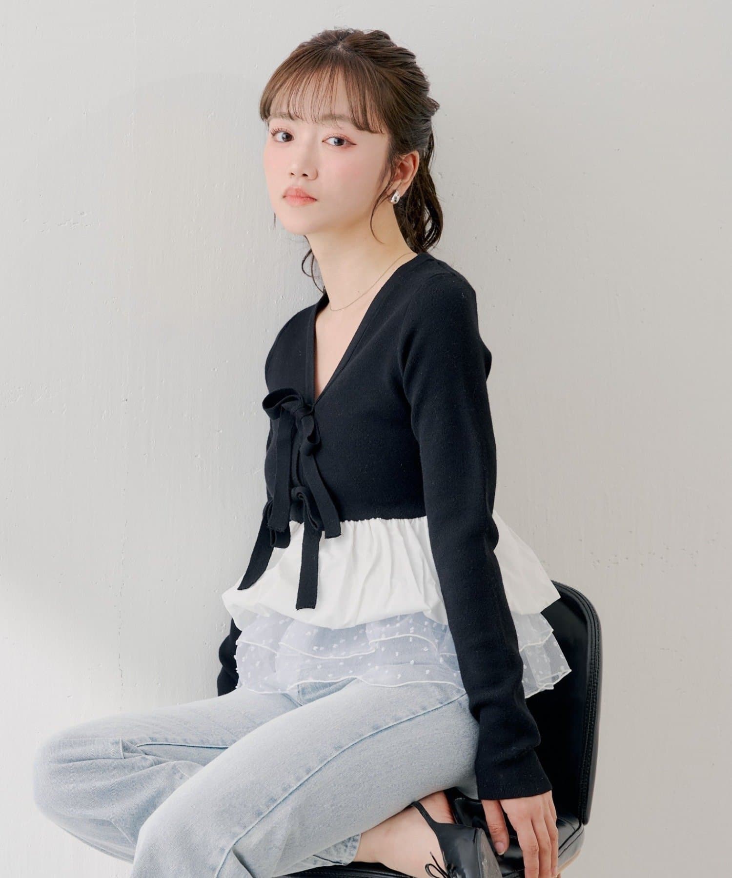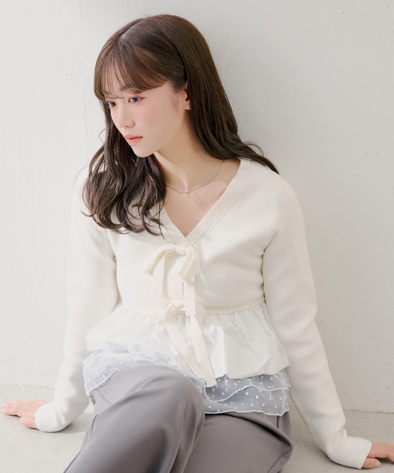 3/12(木)0:00販売開始【SALON by Chico】裾バルーンレイヤードペプラムリボンニット