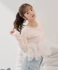 立体的なチュールフリルが目を惹く、ショート丈で華やかなデザイントップス。