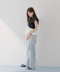 ・デニムと合わせるとカジュアルダウンしつつ、トップスの華やかさで大人っぽい抜け感が出せます。