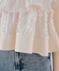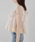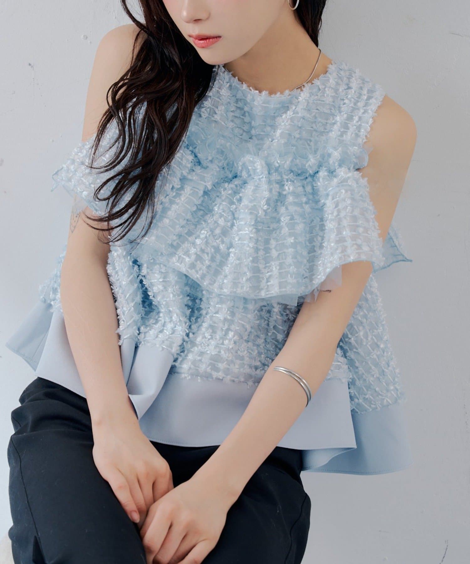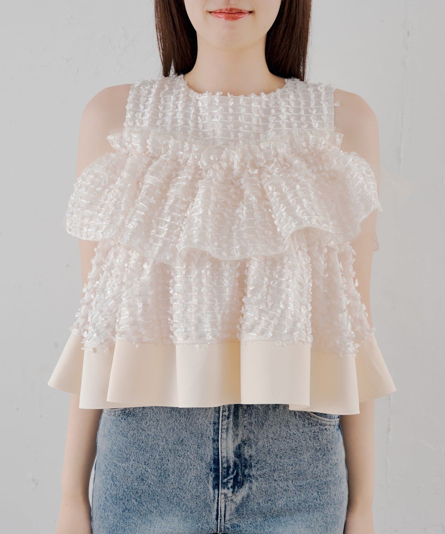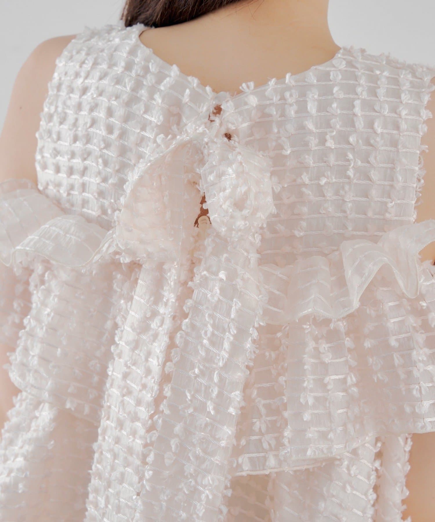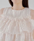 ・フリルを段状に重ねた凹凸シルエットが、華やかさとメリハリを同時に叶えてくれる一枚です