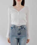 ・シンプルですが袖のフレアシルエットなどディテールが上品で、羽織りとしても、ボタンを閉めてトップス風にも使える万能アイテムです。