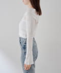 ・程よいゆるさのシルエットが抜け感をつくり、レースタンクとのレイヤードで華奢見えを叶えるデザイン。