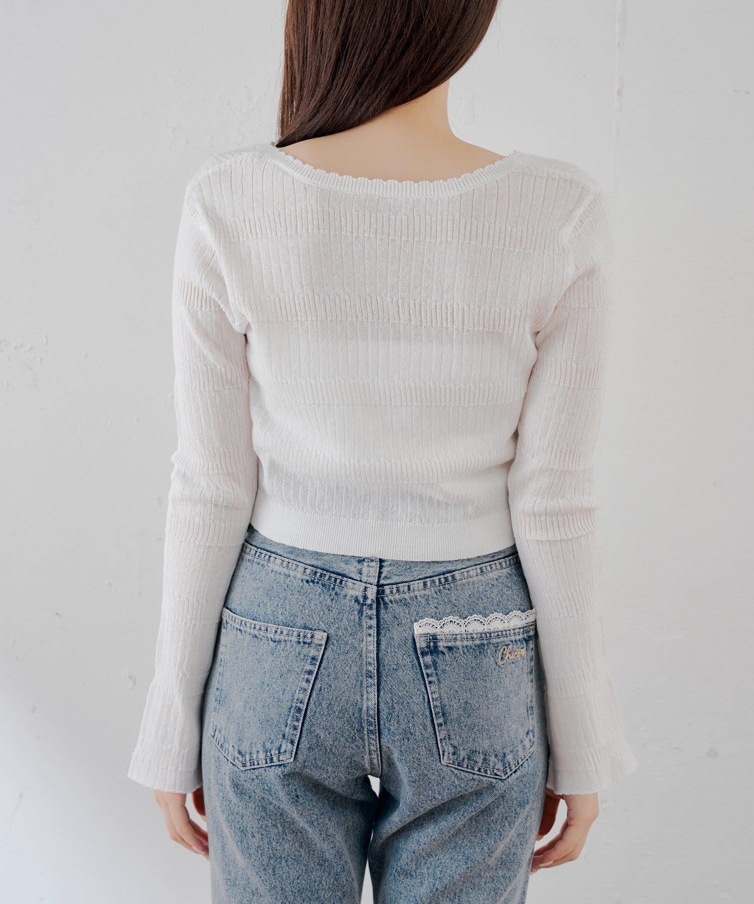 【SALON by Chico】シアー金釦柄編みカーディガン
