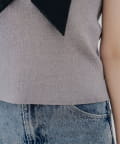 ・ベースは伸縮性あるタイトなサマーニットにすることで、甘くなりすぎず引き締まったモードな印象に。