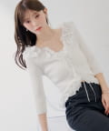 【SALON by Chico】7分袖 / フリルドッキングクロシェフレアニット