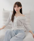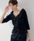 ・フリル × ドットチュールの装飾が華やかで、羽織りとしてもトップスとしても主役になる一枚。