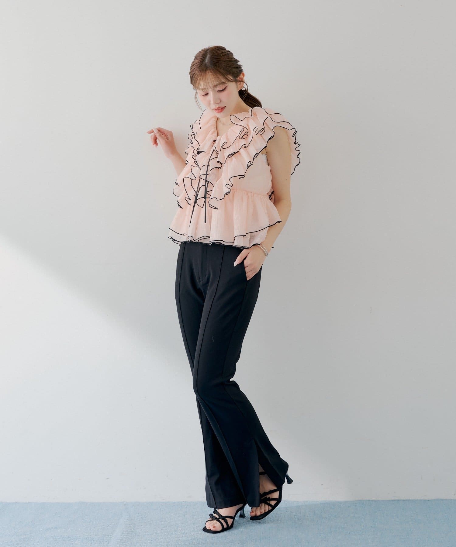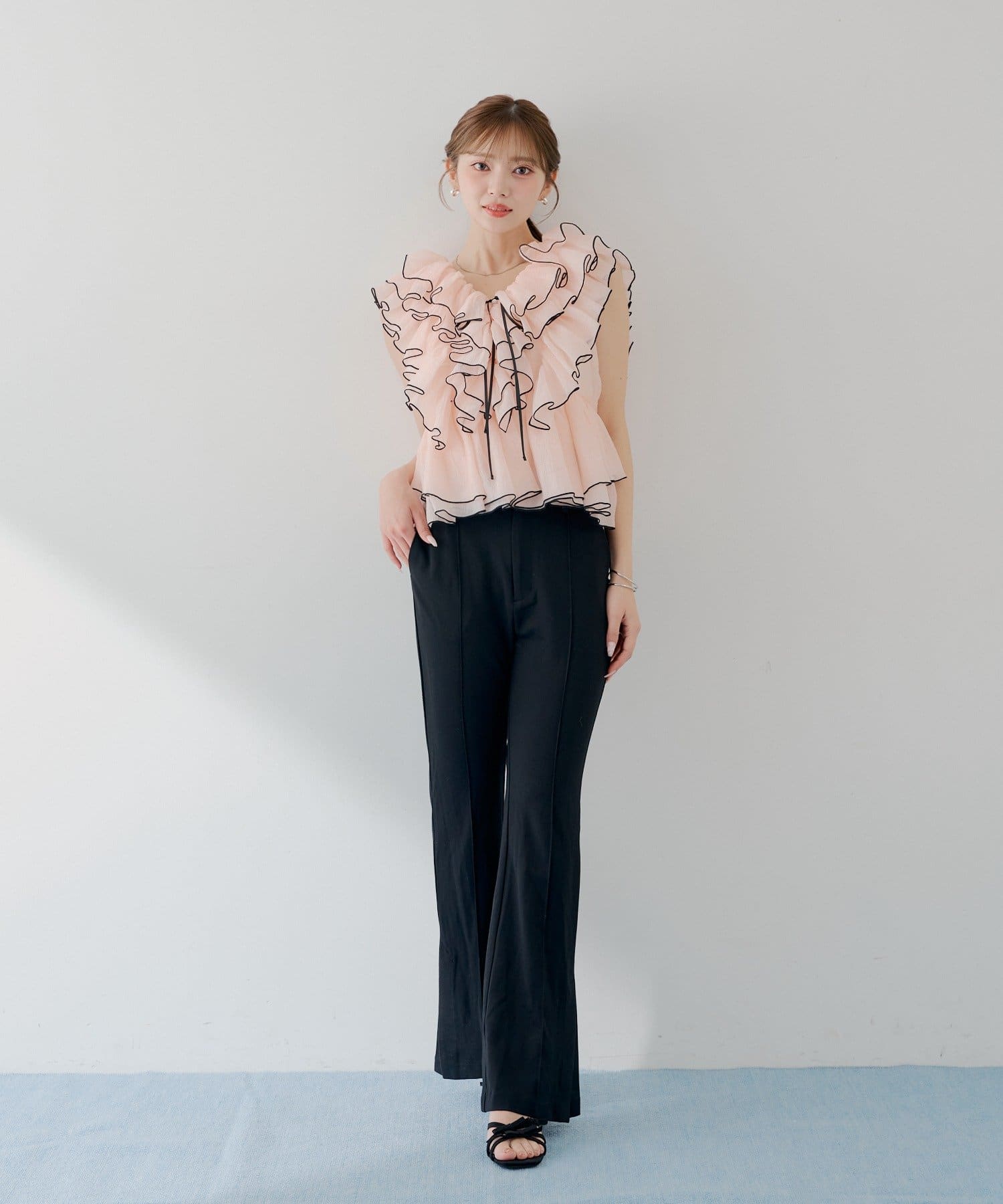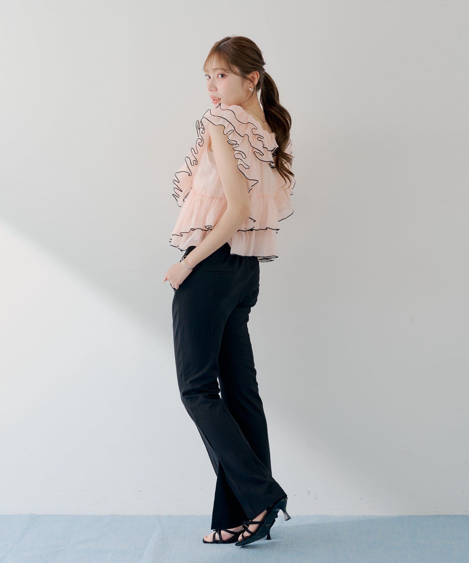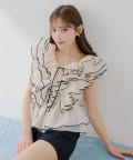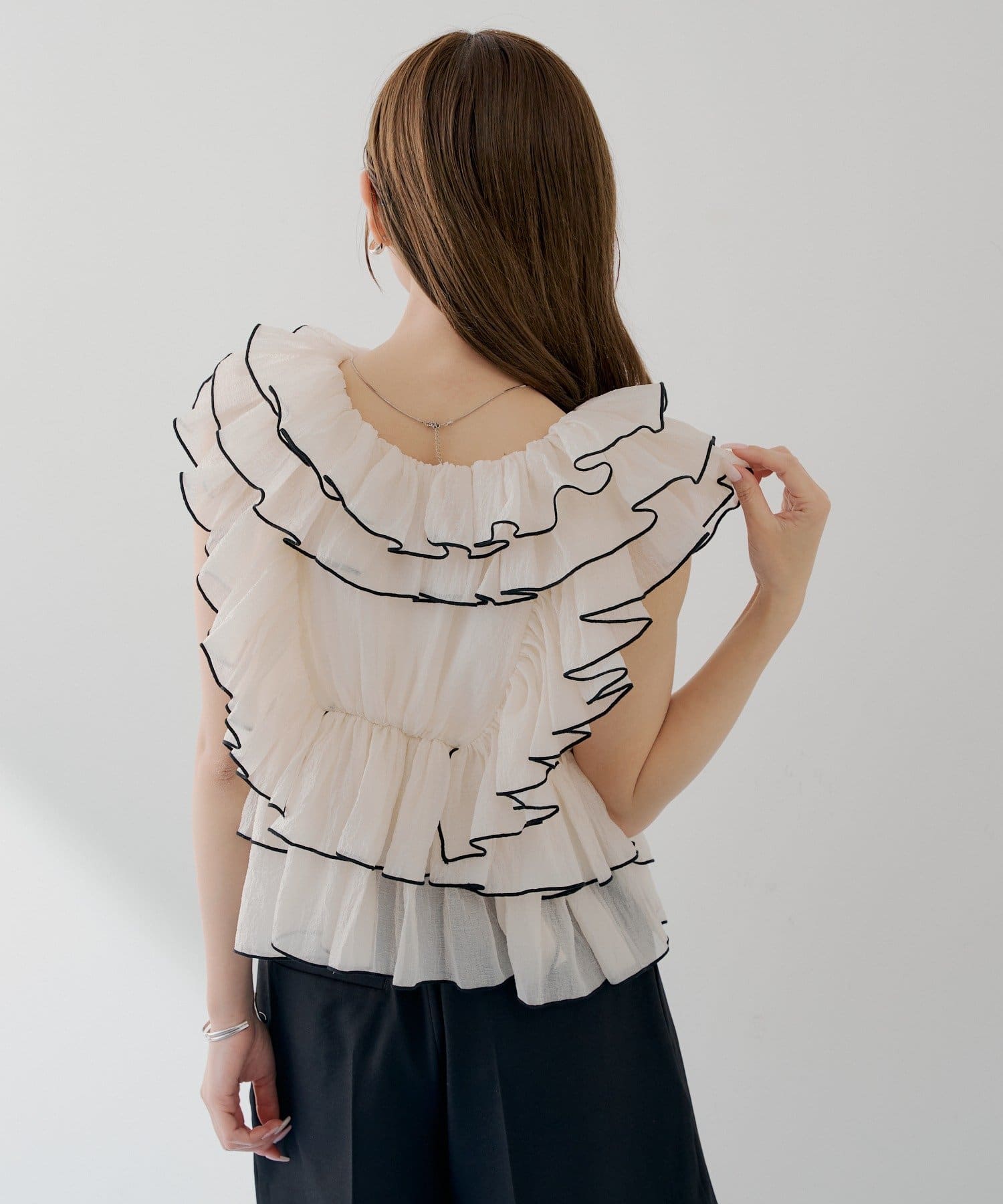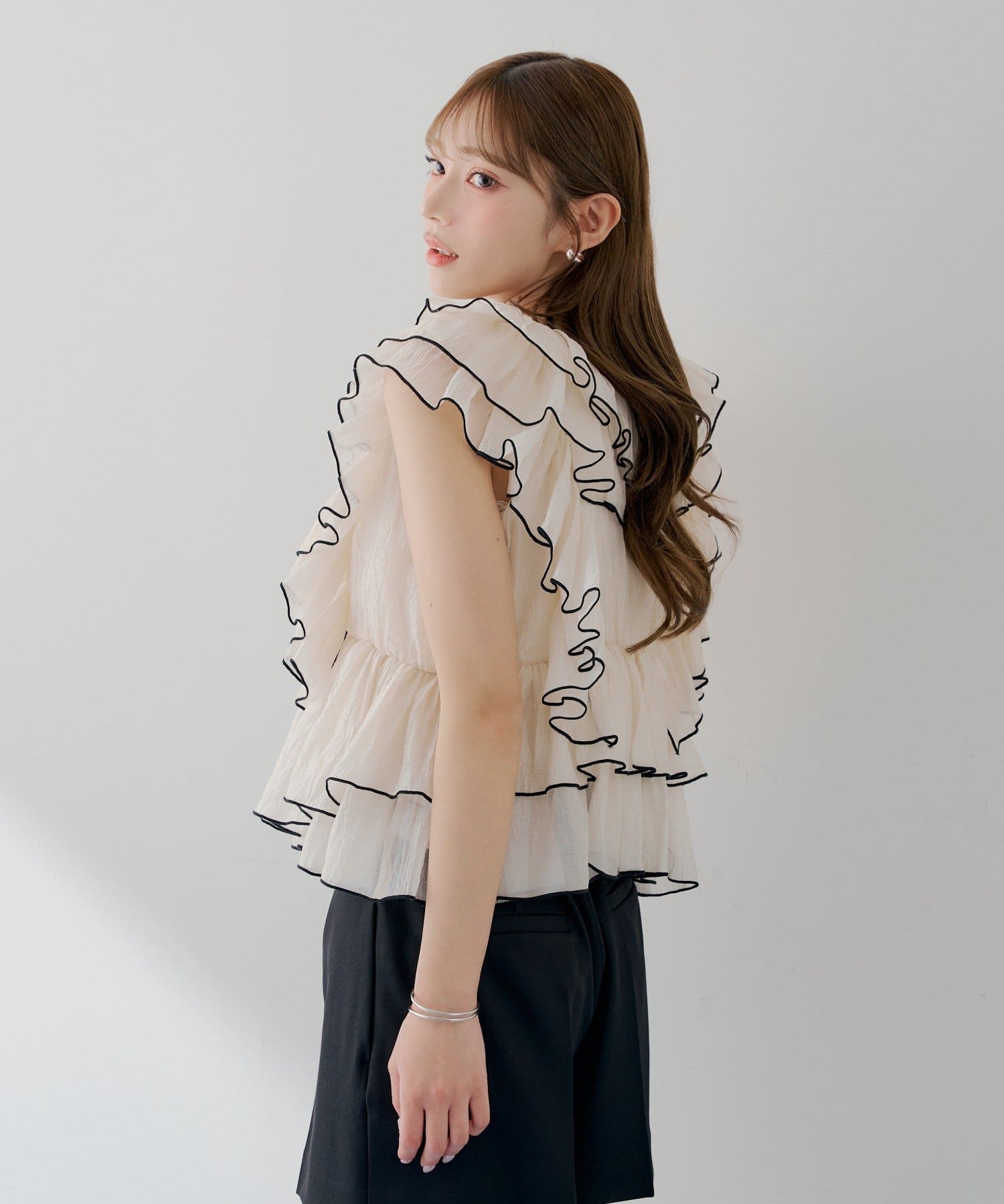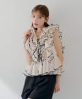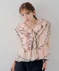 ・配色メローのフリルが印象的な、華やぎ主役ブラウス
